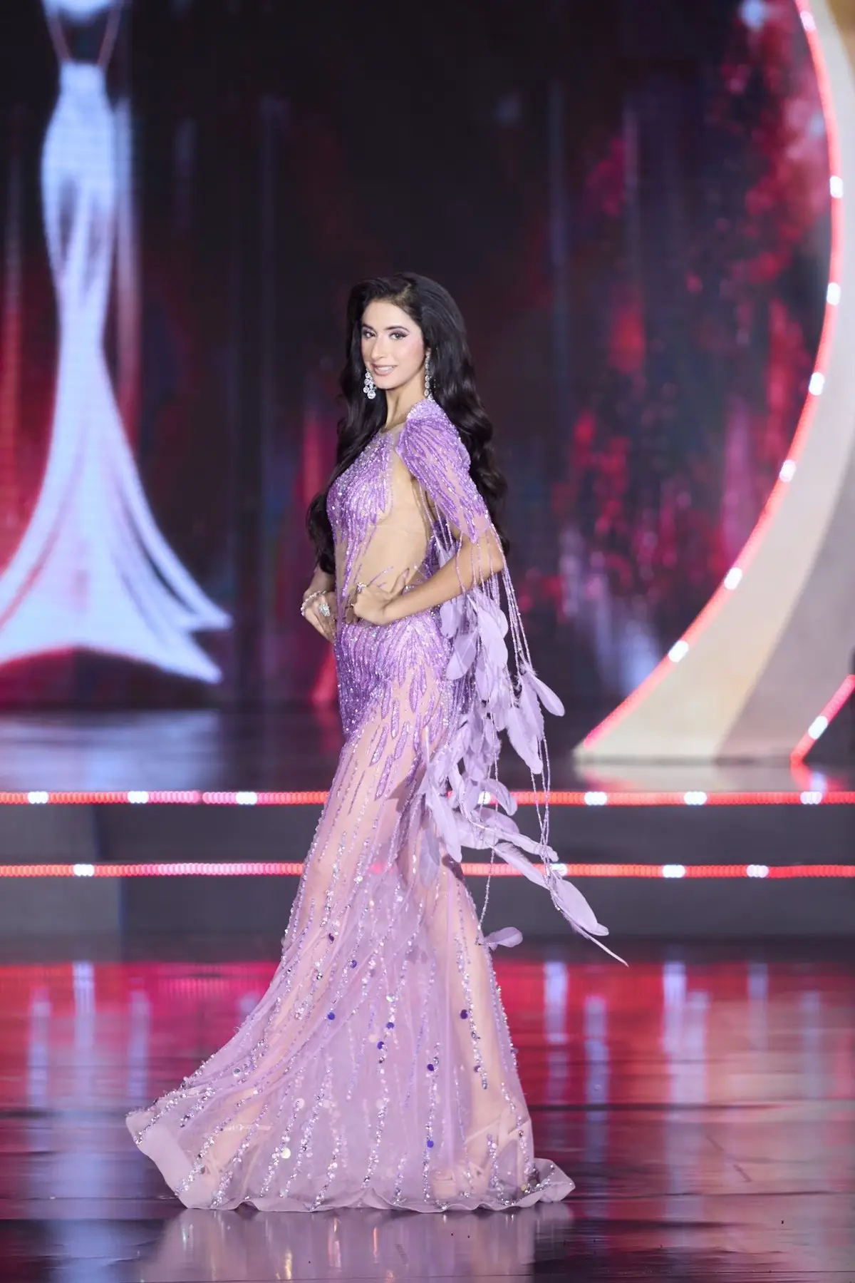 This stunning image captures a mesmerizing moment of a beauty queen on the magnificent stage of the Miss Charm 2025 grand finale. She graces the stage in a regal lavender evening gown, exquisitely designed with sparkling embellishments and flowing, styled sleeves that perfectly accentuate her flawless figure and confident demeanor. With a radiant smile and captivating gaze, she stands out as a strong contender, drawing all eyes and sparking curiosity about who will claim the prestigious crown. Could this striking beauty, possibly Runner-up Mai Ngo with her professional poise, be the one to be announced as the winner? The Miss Charm 2025 grand finale promises to be an emotional spectacle, discovering the most deserving queen.#MissCharm2025 #BeautyPageant #GrandFinale #EveningGownFashion #BeautyQueen