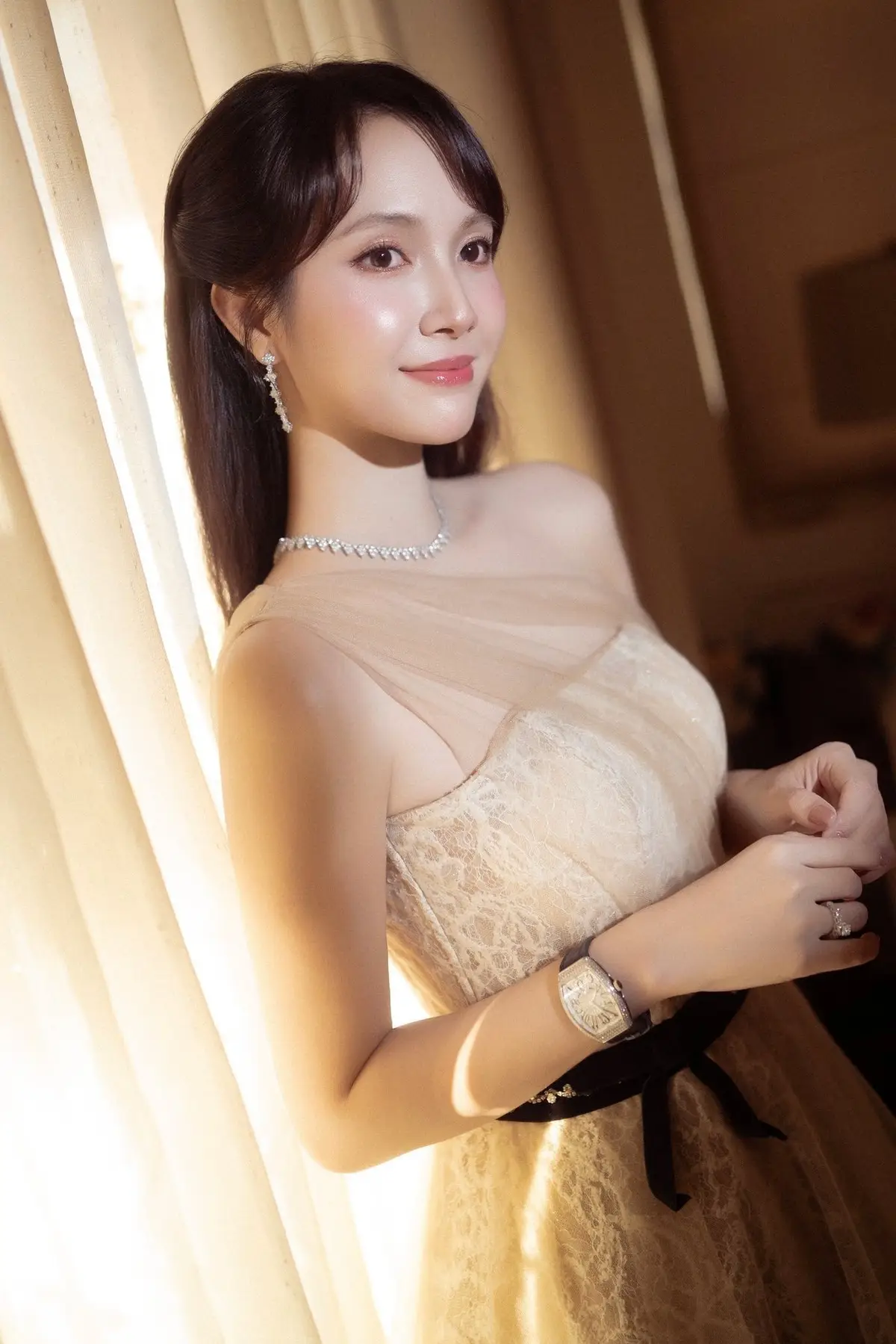 The image showcases the stunning young woman Dieu My daughter of Miss Dieu Hoa radiating fresh beauty and chic fashion style truly like a hot girl Her vibrant red hair styled in a high bun along with long tassel earrings creates a captivating highlight The formfitting mint green dress accentuates her slender figure and the sparkling embellishments at the waist further enhance her allure Despite not being active in showbiz Dieu My consistently makes a strong impression on the public with her outstanding appearance and confident demeanor She is about to embark on a new chapter in life with her marriage to an Indian husband a cross-border love story promising many interesting and happy moments This image perfectly represents the modern beauty and independent life choices of the younger generation.#DieuMy #MissDieuHoaDaughter #VietnameseHotGirl #VietnameseFashion #CrossBorderLove