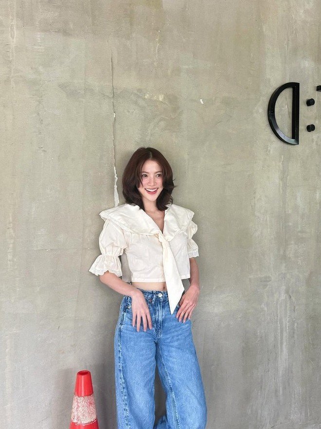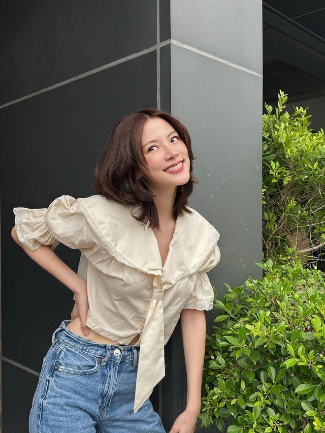 Thai screen goddess Baifern Pimchanok consistently makes a powerful impression with every appearance. In this photograph she showcases her natural beauty and captivating chic fashion sense. Embracing a simple yet refined style Baifern wears a long-sleeved patterned top paired with wide-leg jeans creating a dynamic youthful look. The Thai muse proves that elegance can be found in the most casual everyday outfits. Baifern Pimchanok is not only a talented actress but also a fashion icon admired and emulated by many fans. She consistently shines with confident charisma and an unmistakable personal style. This image stands as a testament to the enduring appeal of the Thai screen goddess in the public eye.Minh Trang: Captivating Screen Muse Embraces Simple Everyday Style