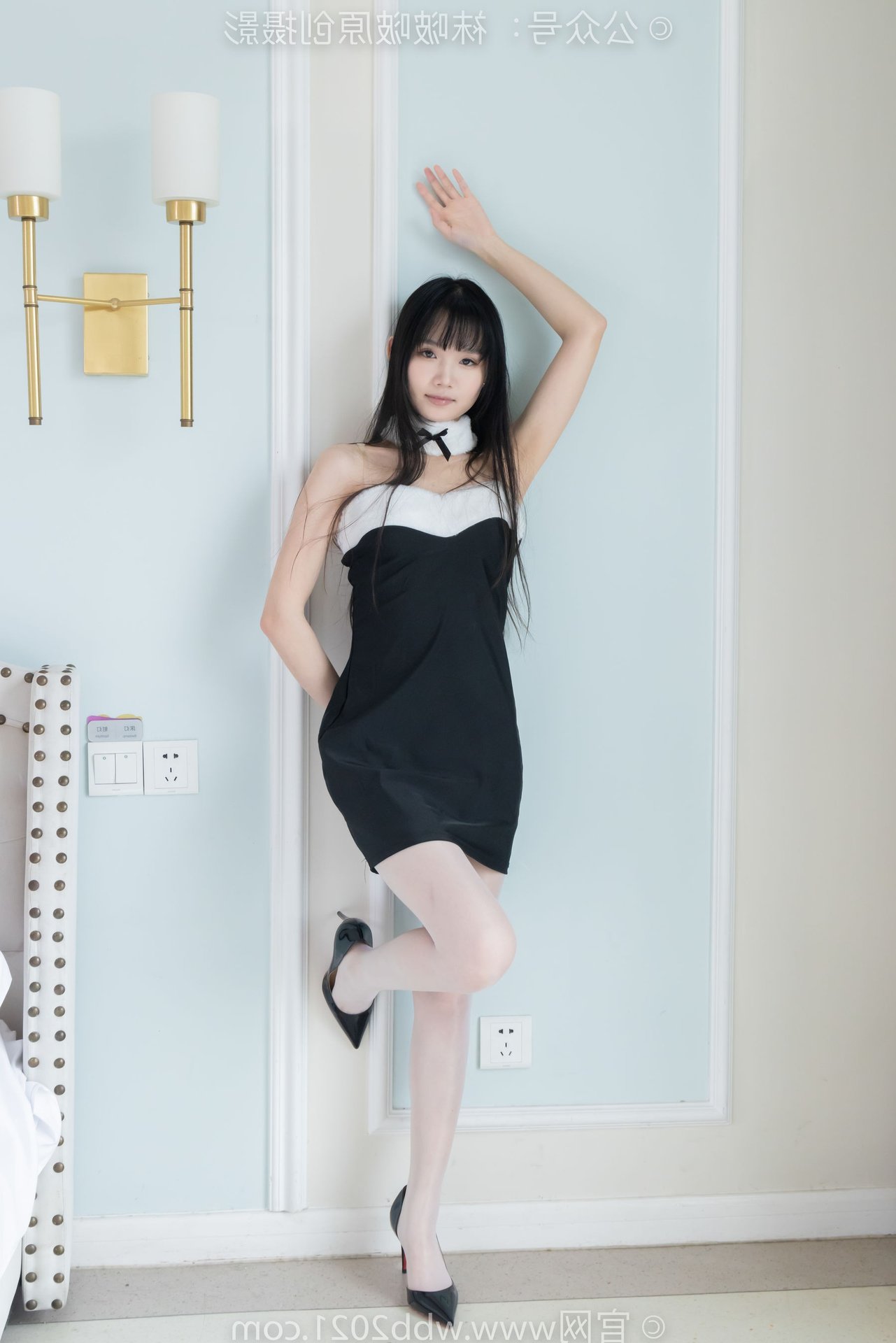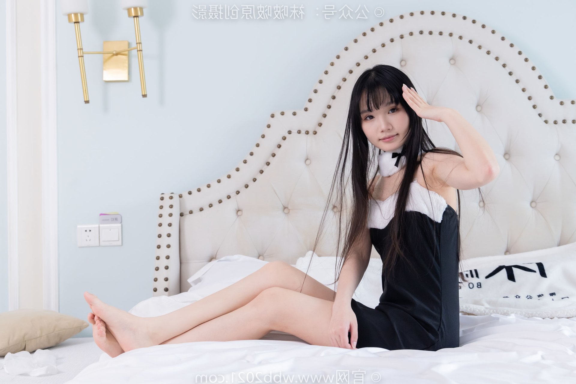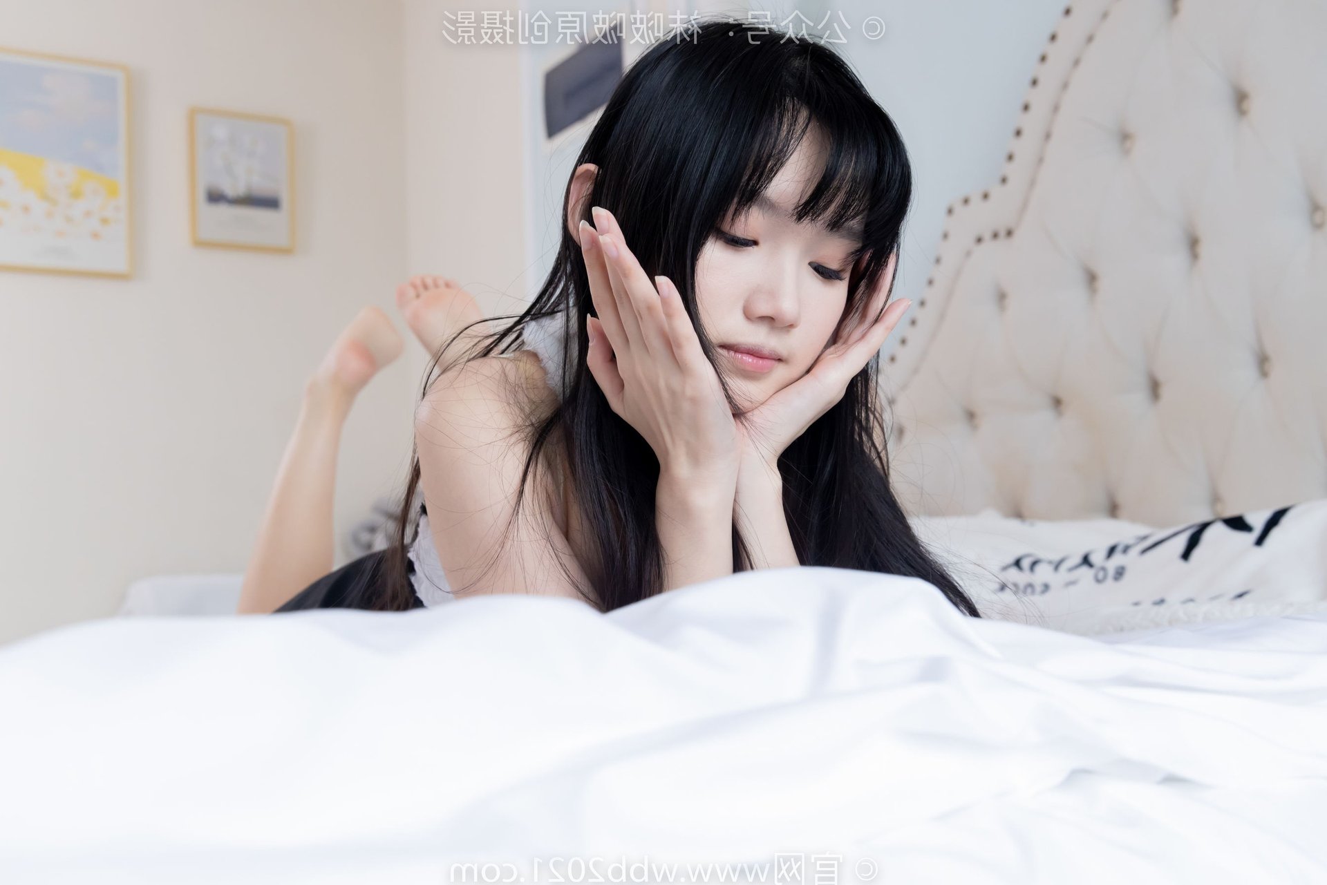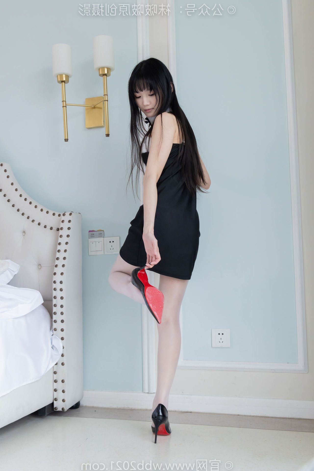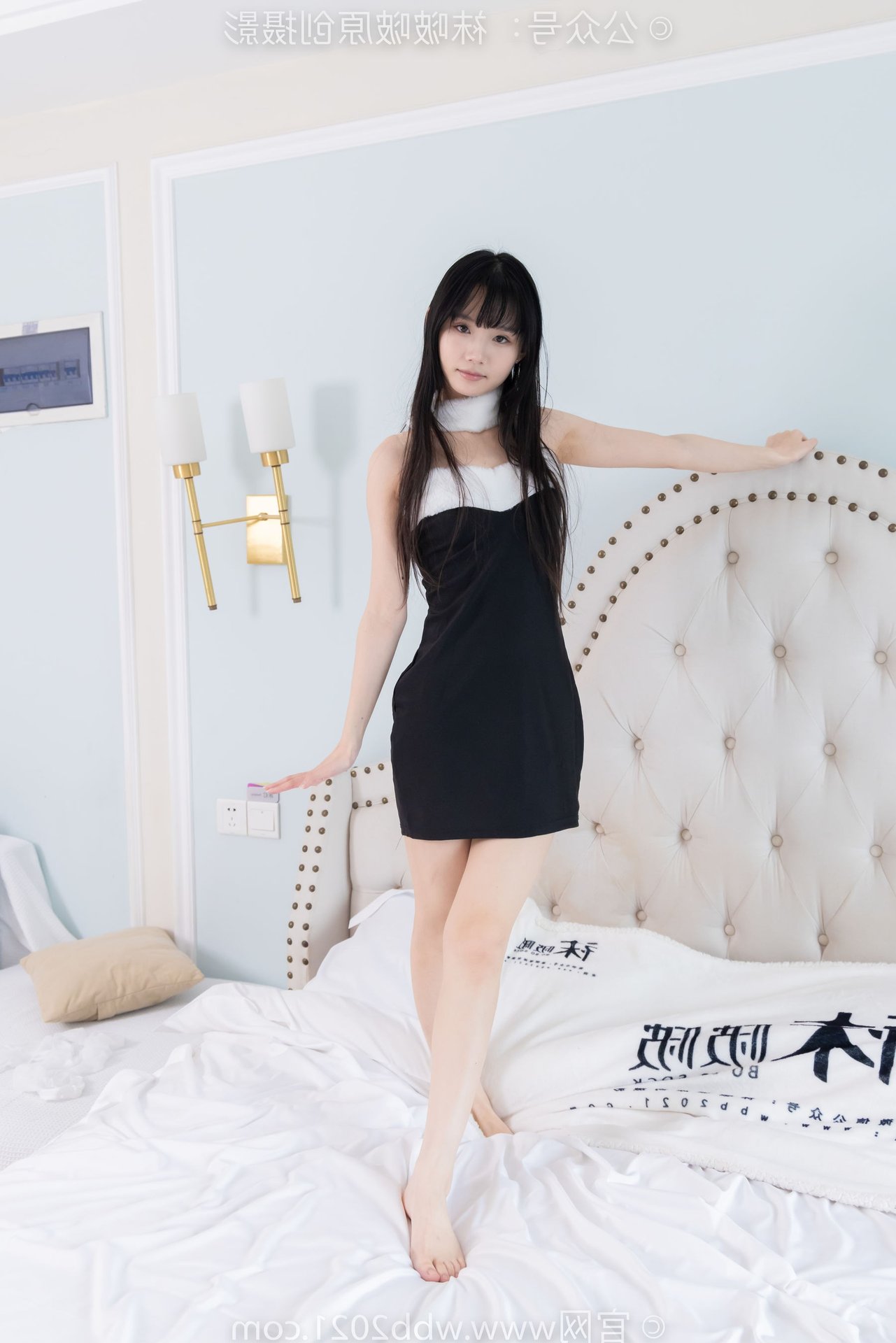 This captivating image features a graceful Chinese model BoBoSocks Model No544 甜甜圈 exuding elegance in a chic black and white ensemble Posed artfully on a plush bed her long slender legs are beautifully accentuated by lustrous sheer white stockings and sophisticated black high heels The intimate bedroom setting enhances the allure creating a sense of refined beauty and quiet charm Her unique fashion style blends classic sophistication with a modern touch making her a truly striking figure This photograph masterfully captures a moment of poised confidence and the captivating appeal of Asian aesthetics