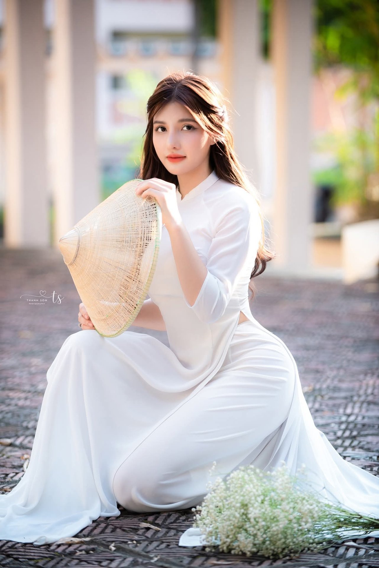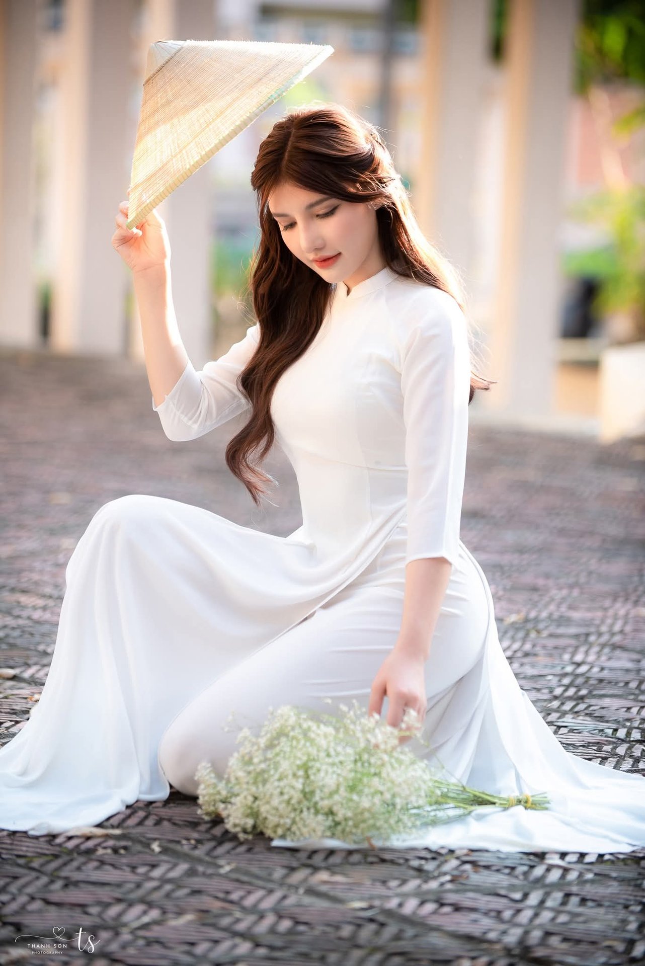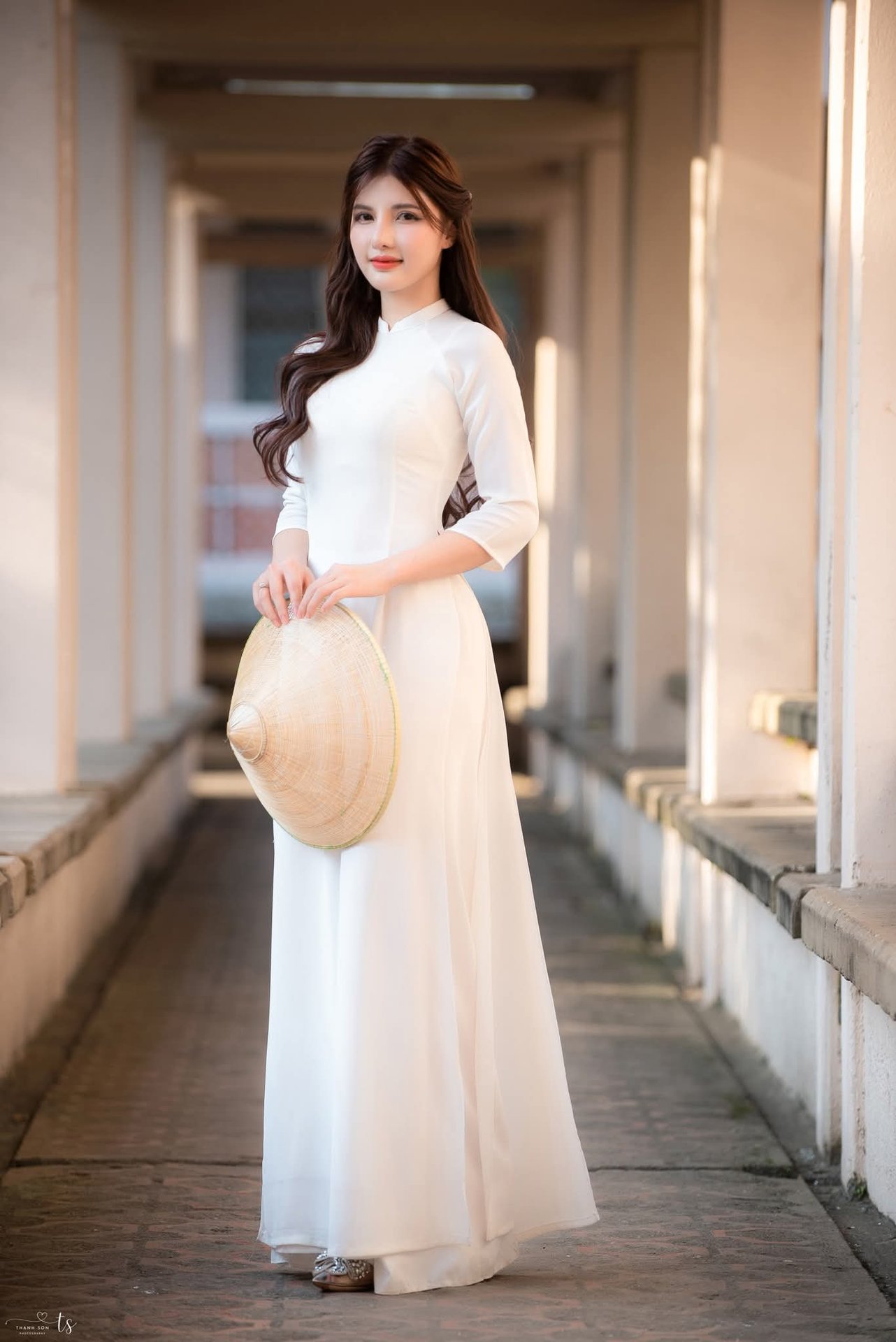 XVG No.45: Captivating Grace: Vietnamese Girl in White Ao Dai, Embracing Youthful Elegance