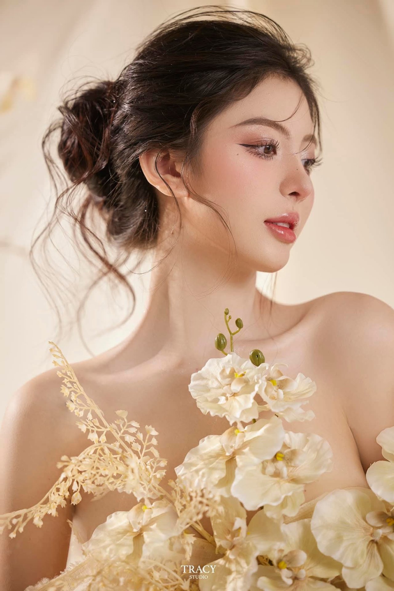 Discover the ethereal charm of this girl from the MTYH Vol.230 collection. She captivates with her delicate beauty adorned in a modern bellyband-style top. The pristine white fabric is exquisitely embellished with gentle pink floral accents creating a look that is both elegant and alluring. Her dark hair decorated with matching cherry blossoms and intricate lace gloves further enhance her refined appearance. Posing gracefully by a wooden table her serene and demure expression evokes a sense of timeless beauty and captivating innocence. This high-quality beautiful girl photo series showcases a blend of traditional Asian aesthetics with contemporary fashion designed to enchant and leave a lasting impression.