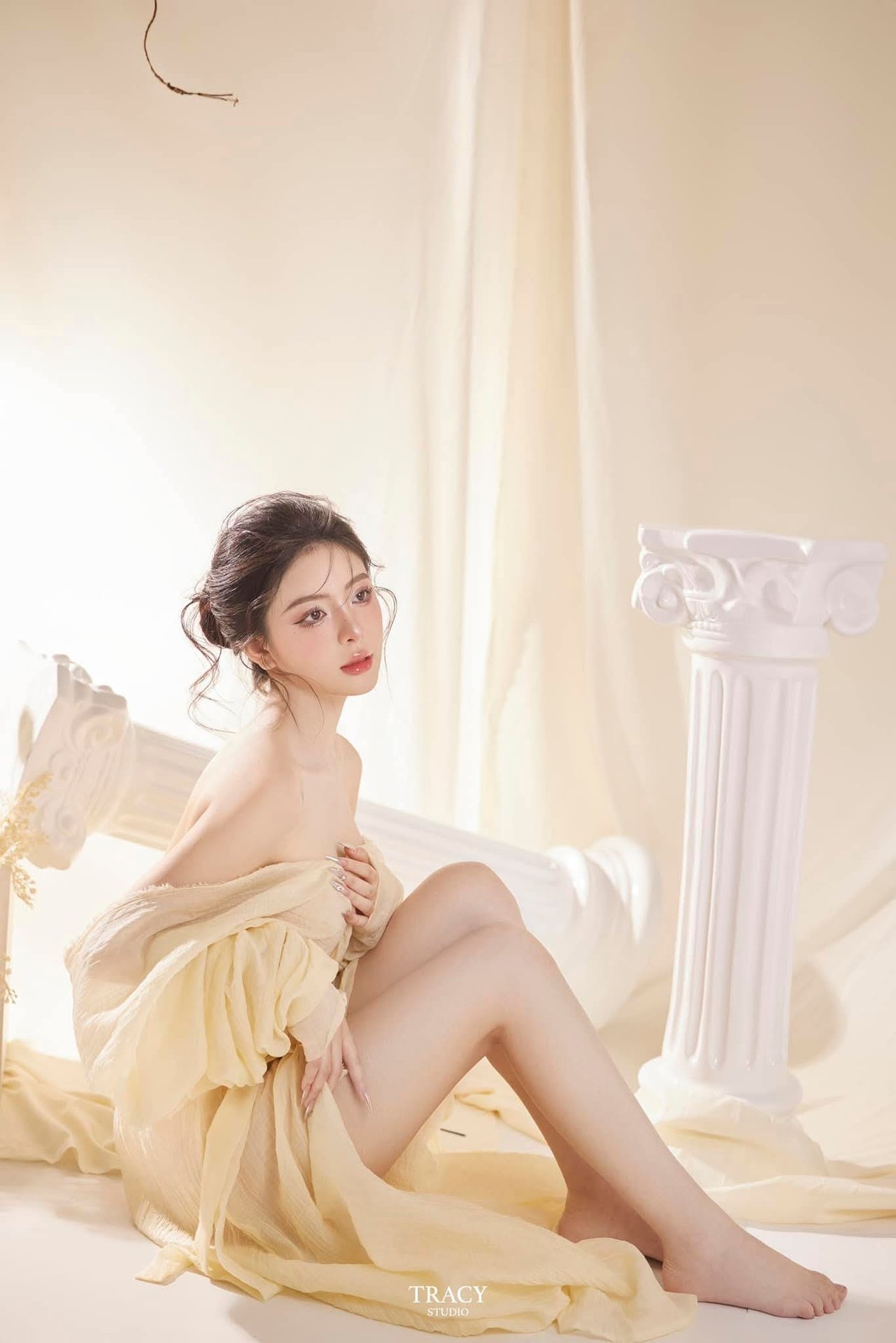 This captivating image 1000018513.jpg portrays a young woman exuding ethereal beauty reminiscent of muses from classical Greek mythology. Draped gracefully in soft flowing cream-colored fabric she strikes an elegant pose beside classical columns blending ancient charm with contemporary artistry. The gentle lighting accentuates her flawless complexion and delicate facial features with expressive eyes that draw the viewer in. More than just a portrait this is a profound piece of art photography where alluring beauty and timeless elegance converge transporting observers into a mystical realm of mythological tales. The photograph perfectly marries classical aesthetics with a modern artistic sensibility creating an immortal moment of grace and sophisticated allure.