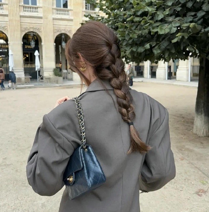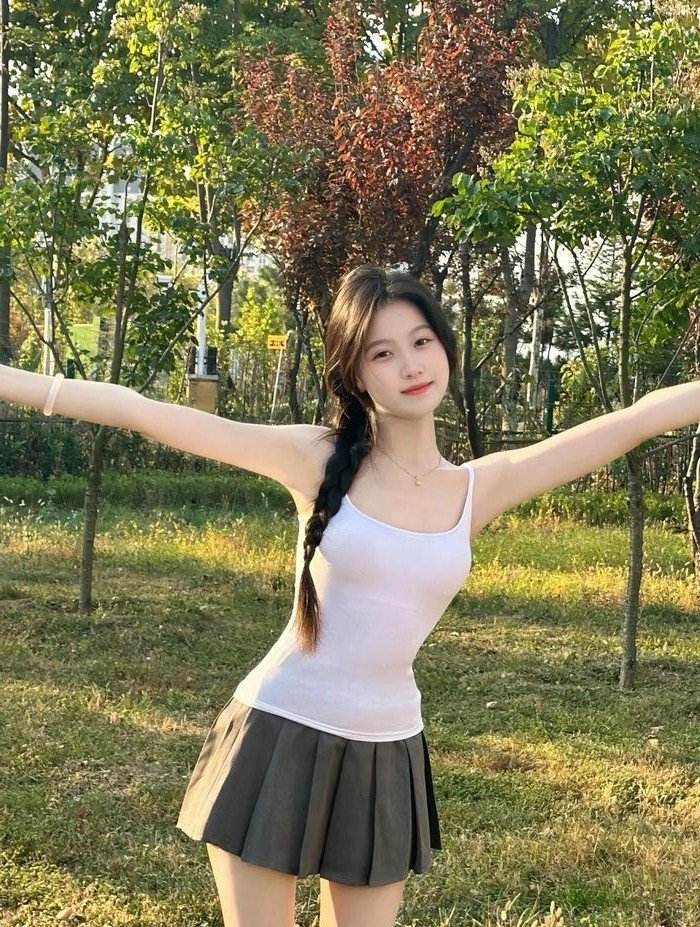 This striking photo features a beautiful girl exuding a gentle and graceful charm. Her sleek black braided ponytail is neatly styled, falling softly over her shoulder, creating an alluring focal point for her delicate face. This braided ponytail hairstyle not only brings a youthful and dynamic vibe but also enhances the girl's natural and innocent beauty. The simplicity of her hair style further accentuates her pure and lovely appearance, captivating viewers. It's an ideal choice for those who appreciate a blend of traditional and modern aesthetics, a beautiful braided ponytail that remains timeless and utterly charming.