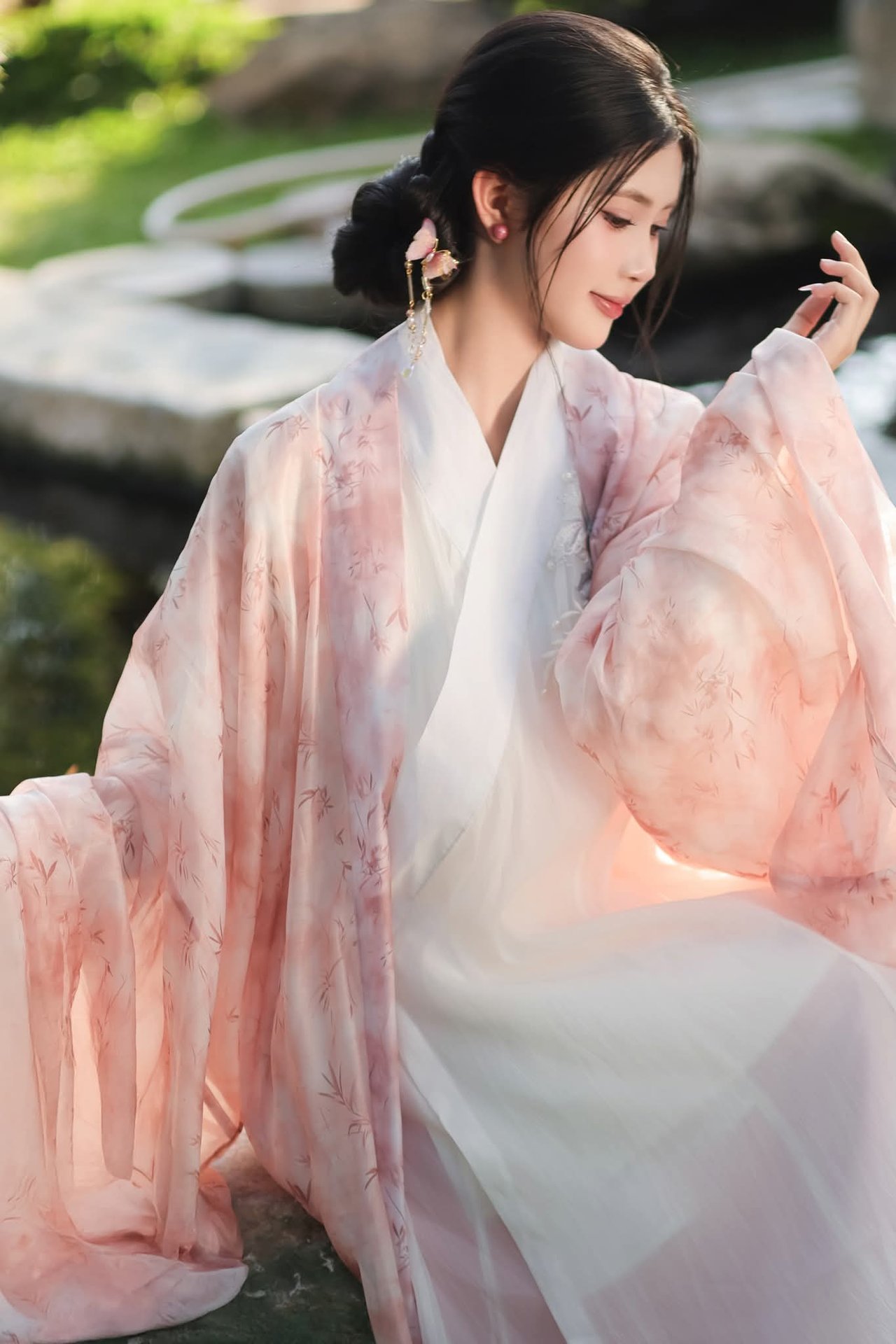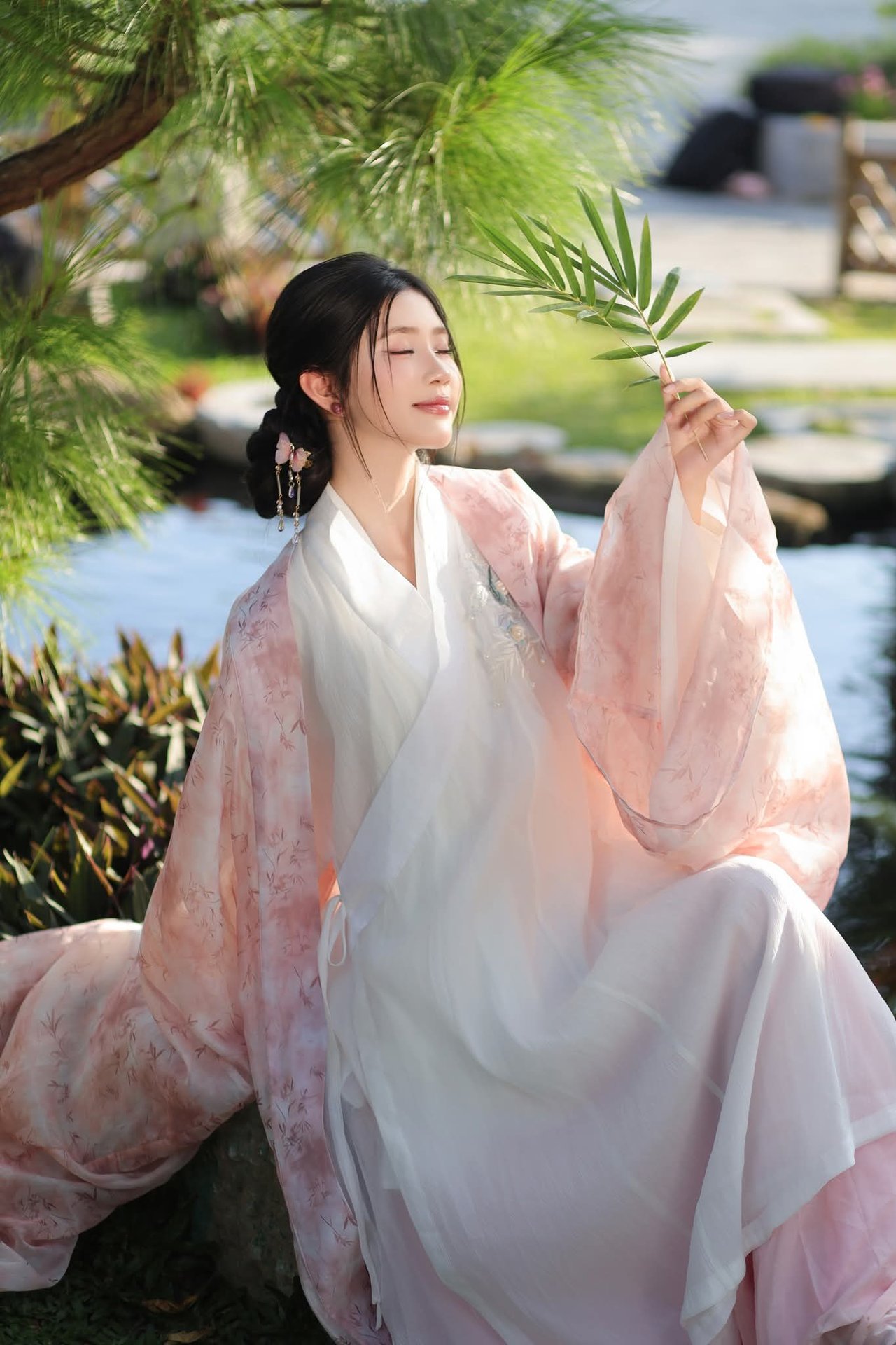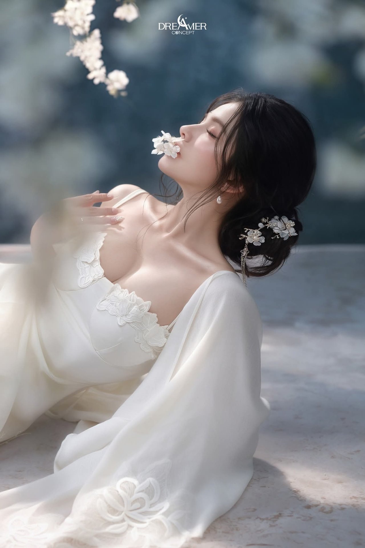 Image 1000019532.jpg beautifully captures an enchanting East Asian traditional beauty. The central figure is a young woman with a gentle smile and serene eyes. She is adorned in traditional attire featuring soft pastel pink and white hues exuding elegance and refinement reminiscent of ancient cultural charm. Every detail of her flowing garment is meticulously designed accentuating her graceful beauty and ethereal presence. Her neatly styled updo and delicate accessories further enhance her captivating allure. The softly blurred background serves as a subtle backdrop allowing her serene beauty to shine transporting viewers into a fairytale-like scene. This image symbolizes the harmonious blend of human beauty and the essence of traditional culture.Discover Ethereal Grace: An Asian Beauty in Pure White Amidst Delicate White Blossoms