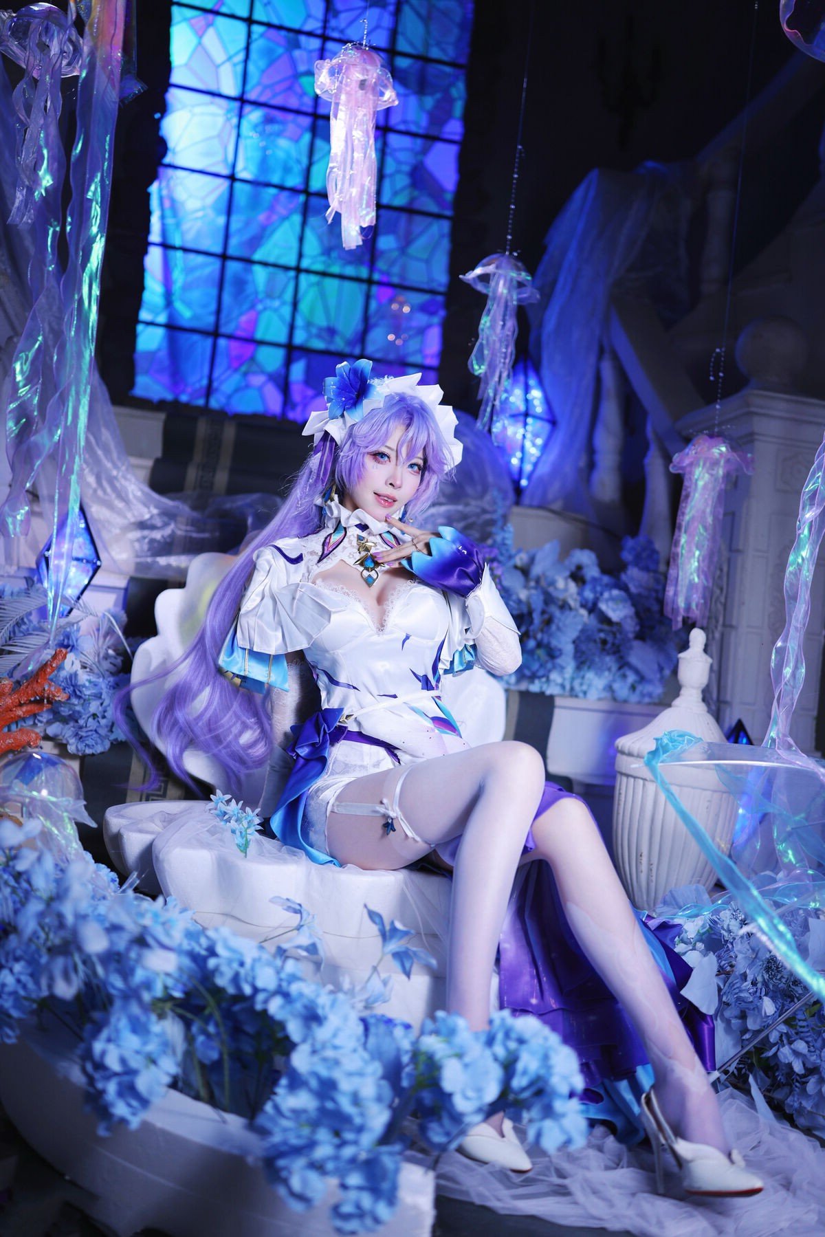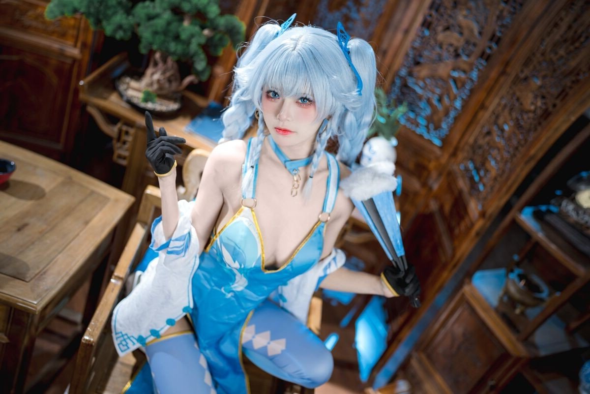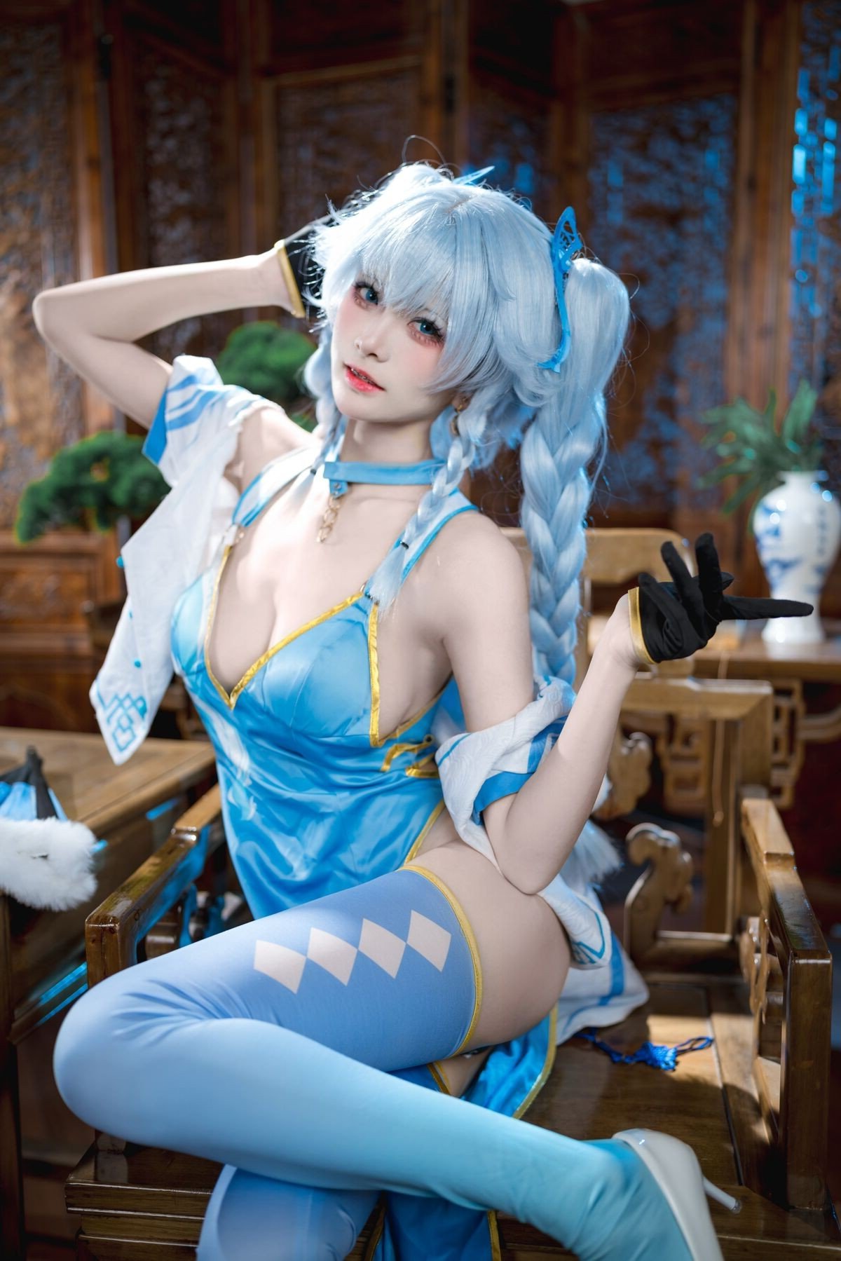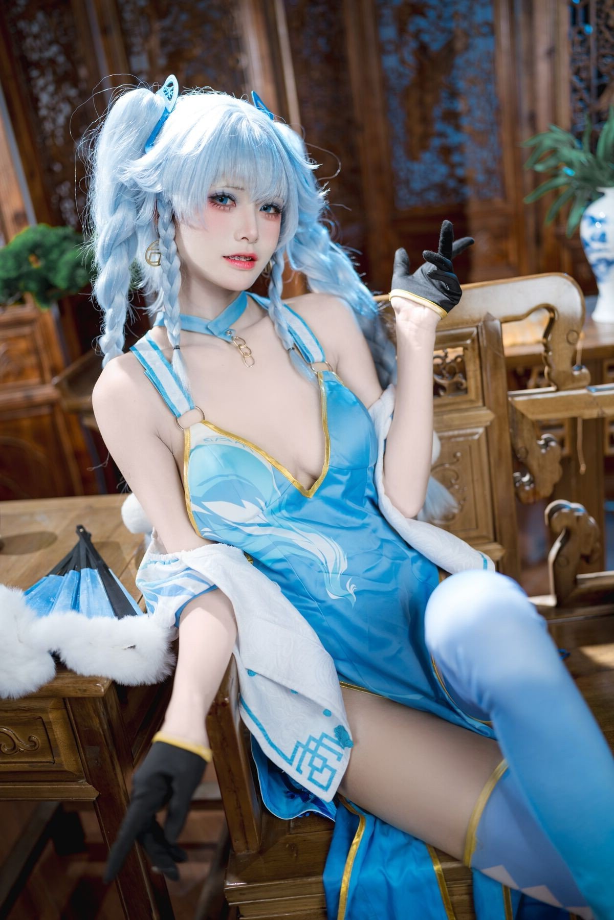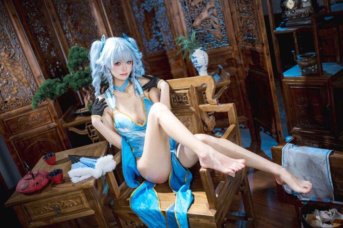 Coser Jiu Qi Miao as Cui Que Mei: Alluring Blue Fantasy Cosplay Unveiled