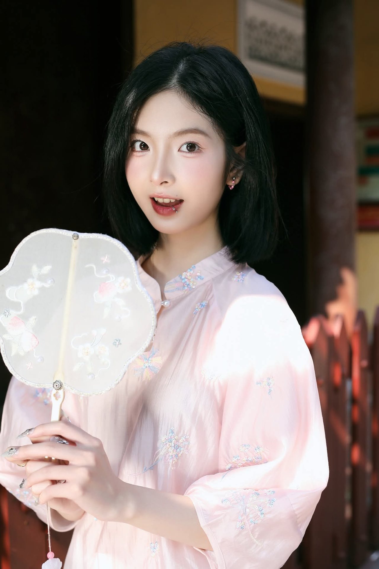 This cosplay collection features Coser Qiqi Nanako in her unique Cow Maid outfit. She makes a strong impression with her sweet and adorable appearance. Her long hair, large round eyes, and playful expression create a captivating Qiqi Nanako. The stylized maid costume, highlighted by charming small cow horns, combined with delicate lace and bow details, subtly enhances her allure. Each photo conveys Qiqi Nanako's confident and professional demeanor, leaving viewers enchanted. This is undoubtedly a superb Cow Maid cosplay transformation, showcasing meticulous effort from the costume to the posing, providing an impressive visual experience for the fan community.Discover the Allure: Elegant Girl in Pink Dress Exudes Grace and Charm 1000019670