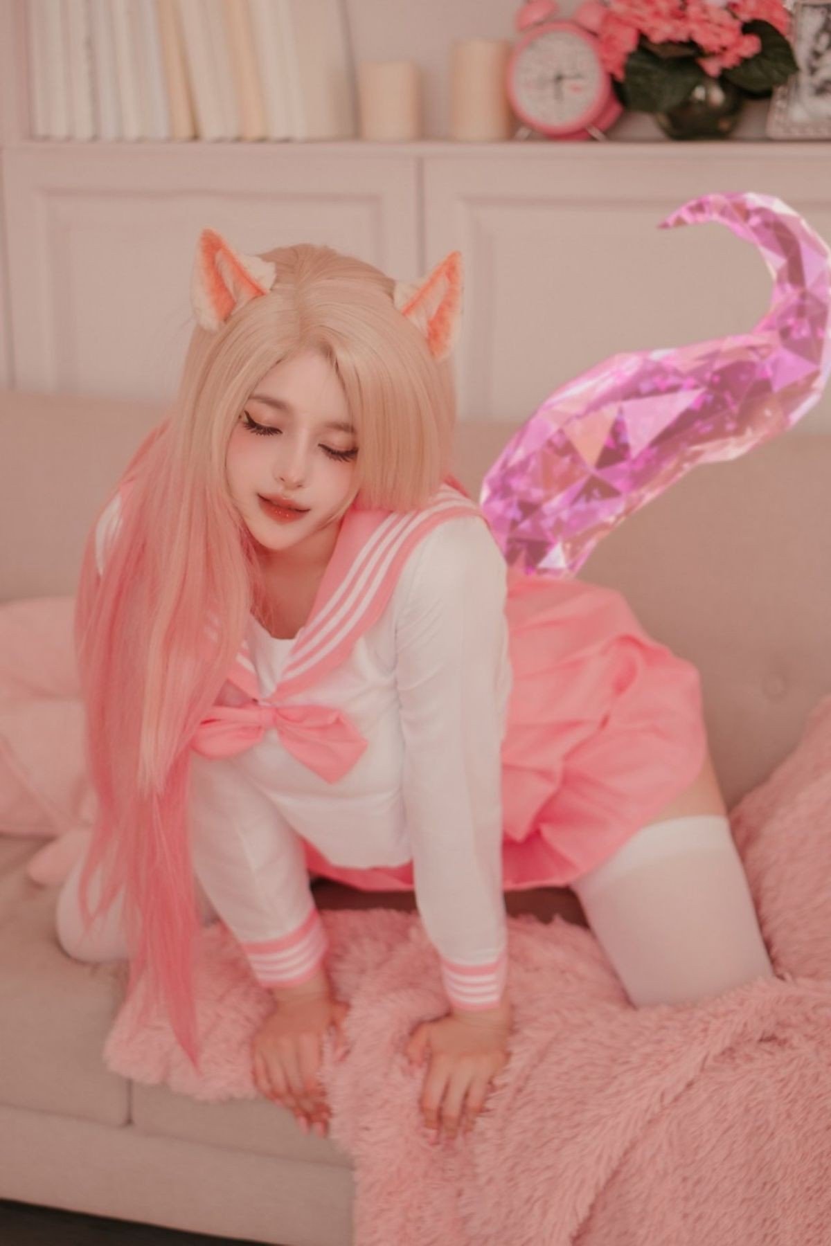 Coser Adorable Pink Sailor Uniform Cosplay Charming Neko-Girl Style