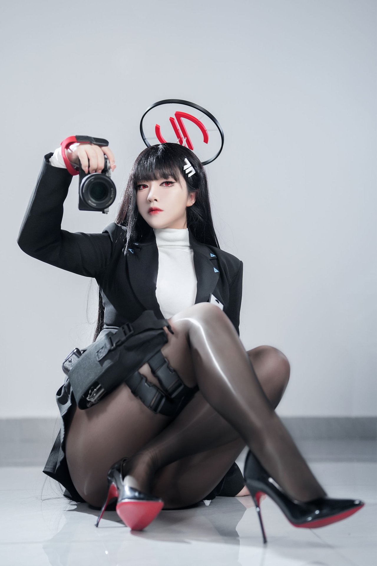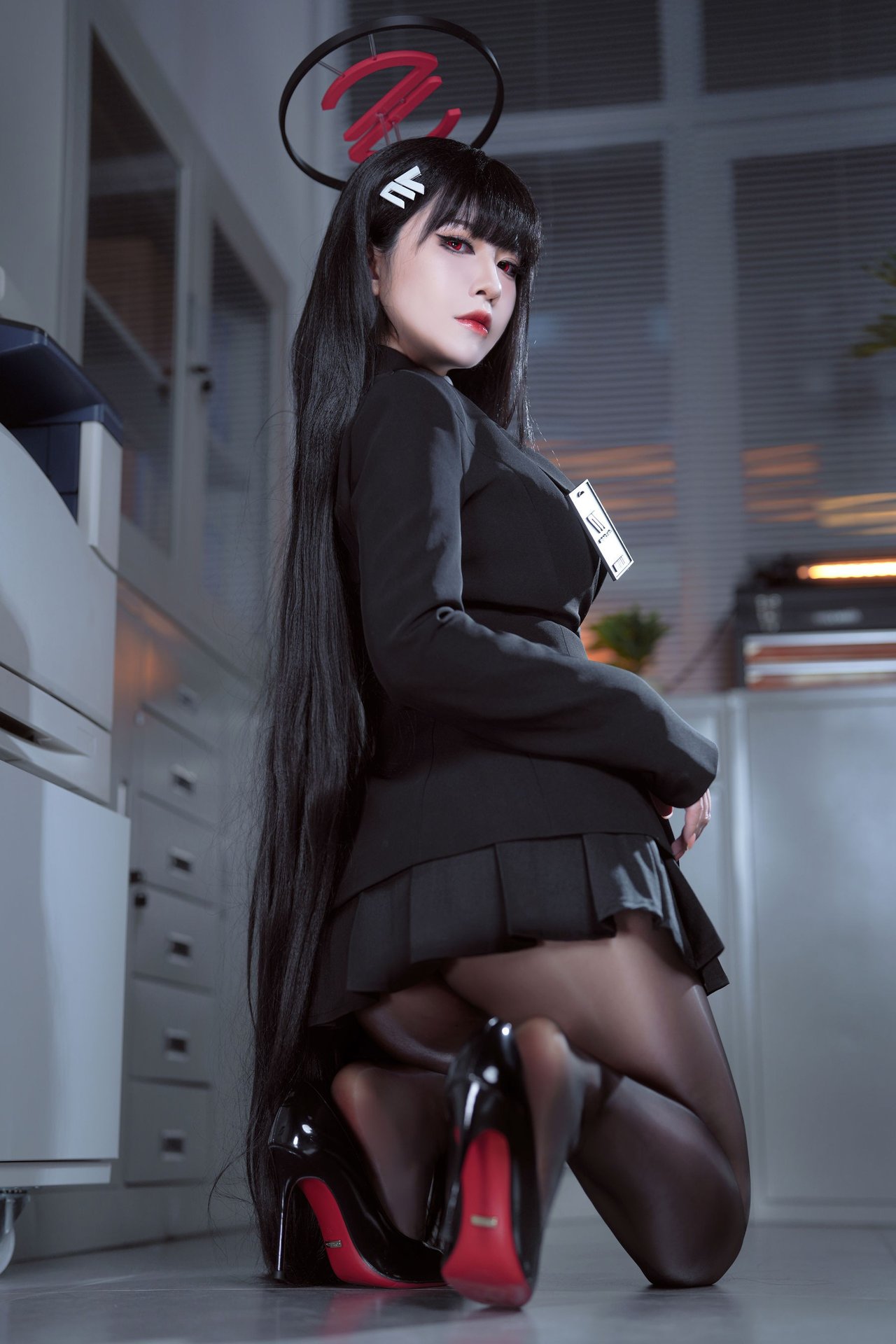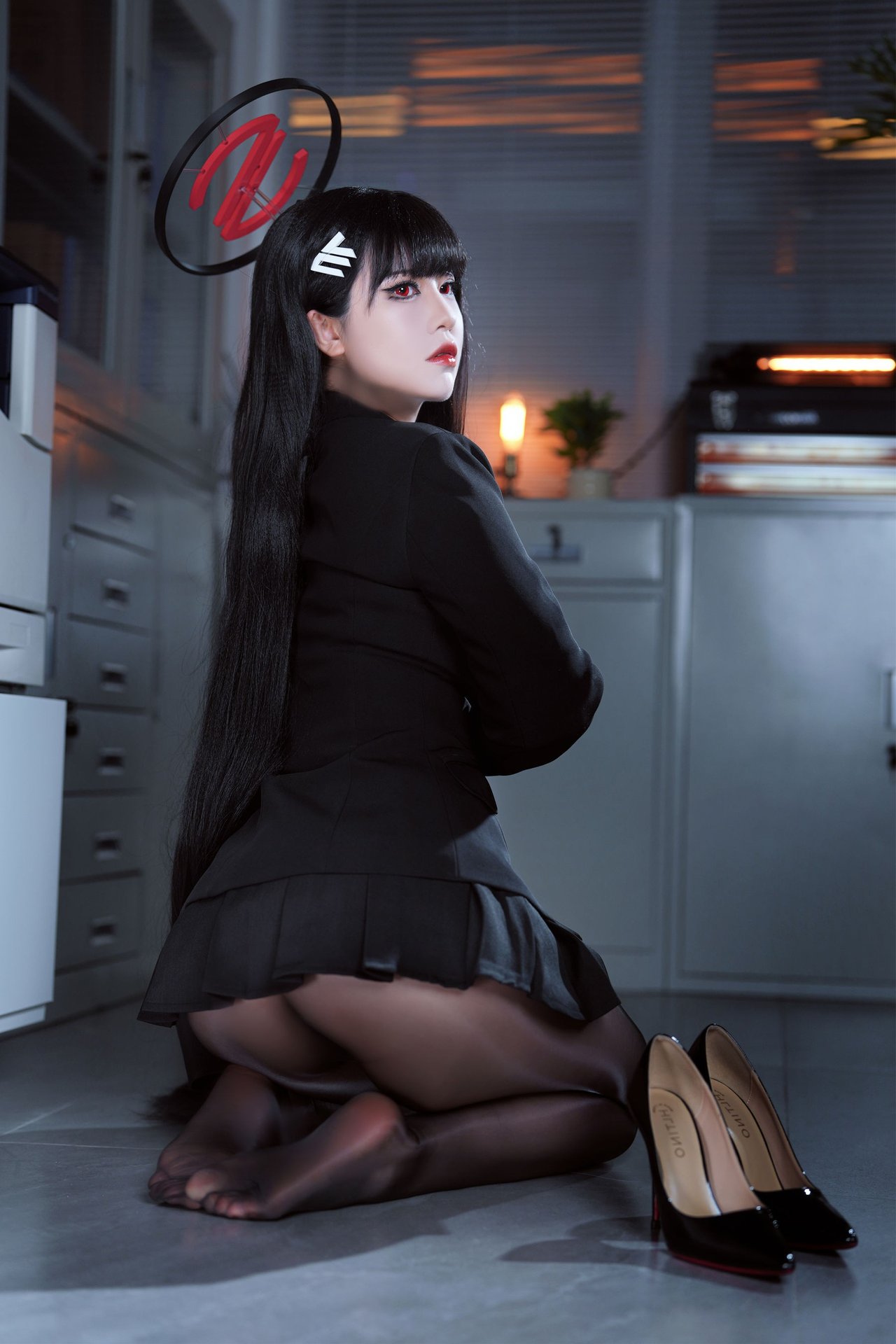 Blue Archive Tsukigami Rion Cosplay by Banbanzi: Alluring Office Uniform & Black Stockings - Tukuku