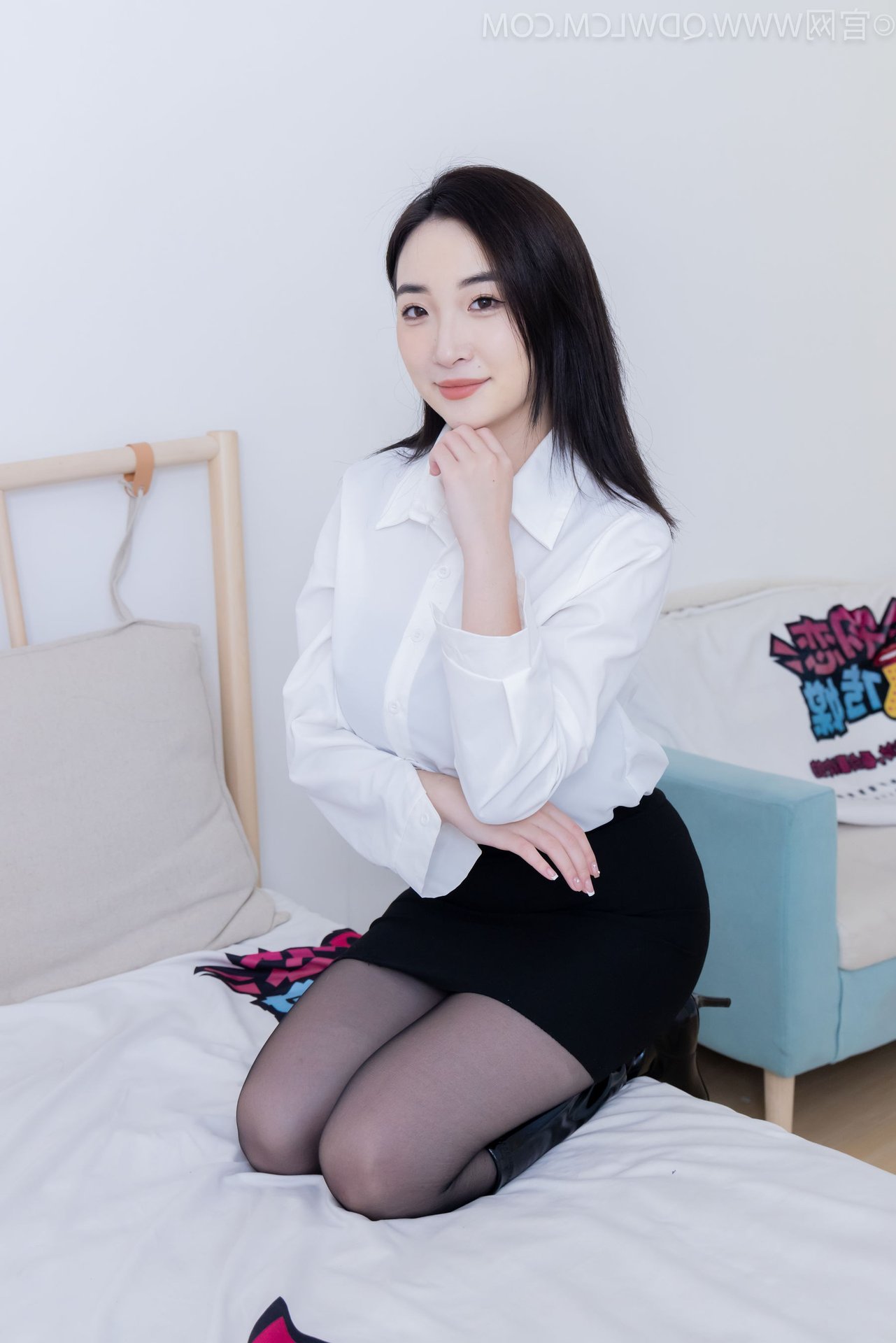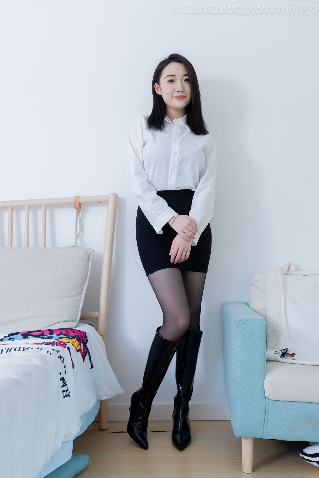 This stunning image features Chinese Model Tian Tian No.2333 exuding elegance and modern sophistication She is impeccably dressed in a crisp white button-up shirt paired with a chic short black skirt creating a professional yet alluring ensemble A captivating highlight is her sheer black stockings gracefully accentuating her slender legs complemented by sleek black long boots adding a touch of high fashion Posing delicately by a sunlit window framed by soft curtains Tian Tian radiates both purity and confident charm Her composed demeanor and stylish attire make this photograph a perfect representation of contemporary office fashion and the refined aesthetic of Chinese models This visual content is ideal for enthusiasts of elegant and inspiring fashion imagery