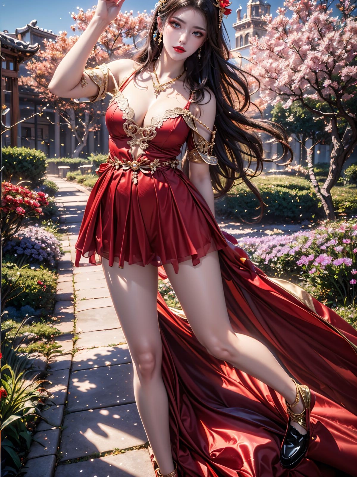 Alluring Goddess in Red Bodysuit - Captivating Beauty from Every Angle