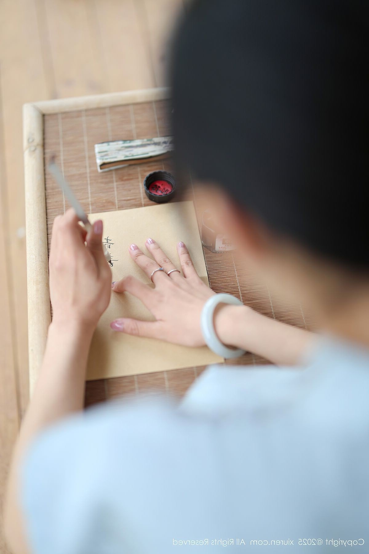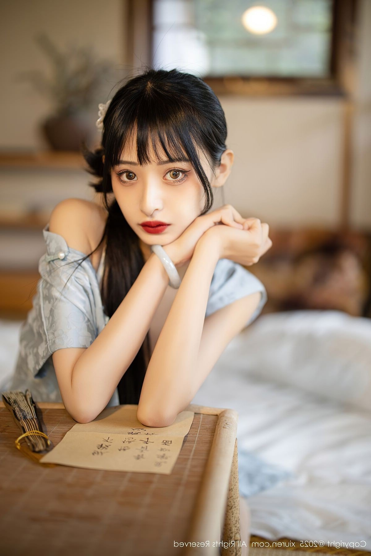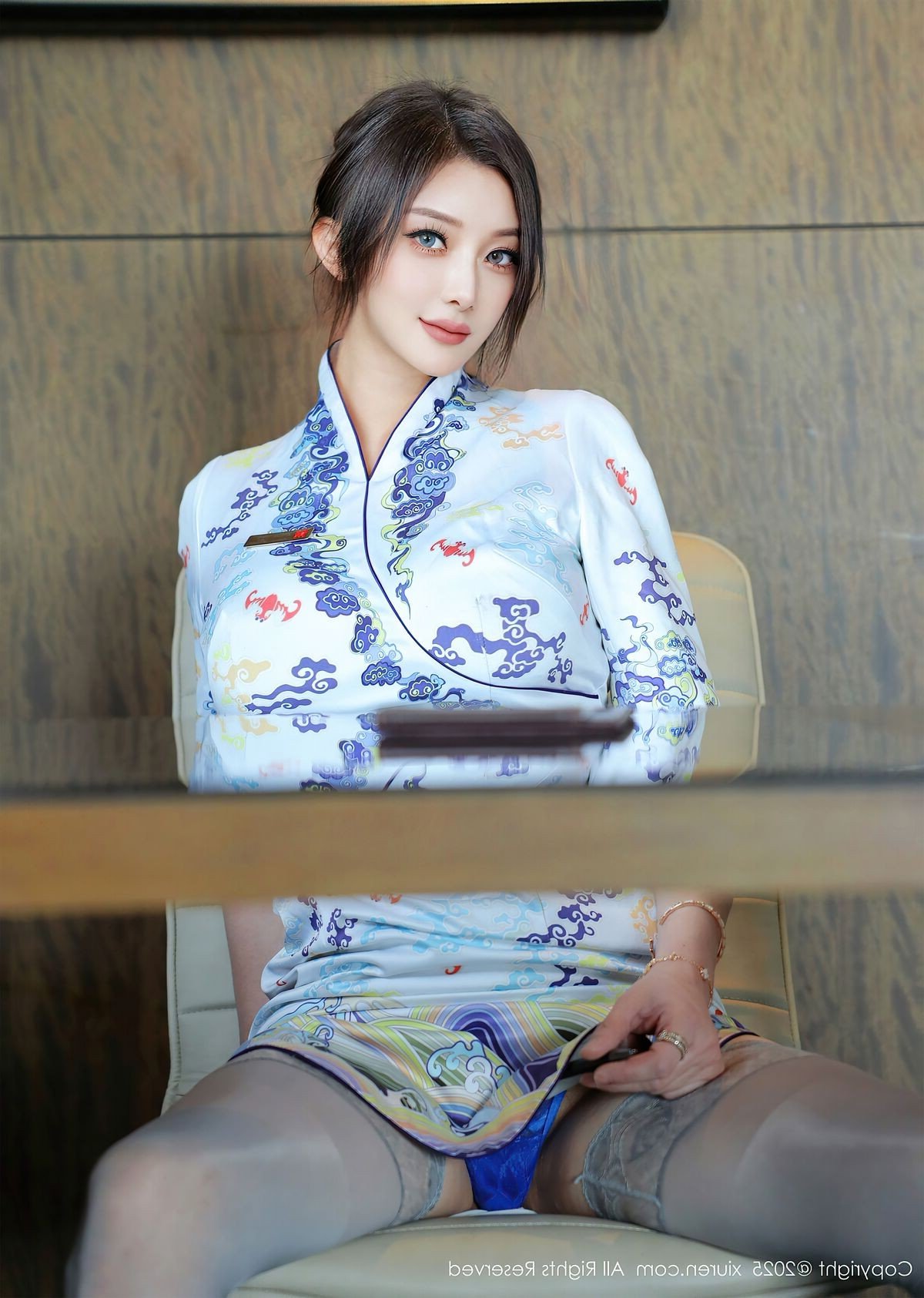 This captivating image showcases the elegant and alluring beauty of model Su Yi Nuo dressed in exquisite traditional Asian attire. She sits gracefully at a desk exuding a gentle yet professional demeanor. The intricately patterned dress perfectly accentuates her slender figure highlighting her sophisticated and dignified presence. Her direct gaze at the viewer creates a sense of intimacy and authenticity. This moment beautifully captures a harmonious blend of classic and contemporary charm reflected in Su Yi Nuo's confident and graceful aura. The XiuRen No.10273 collection promises high-quality visuals celebrating the essence of Asian beauty.