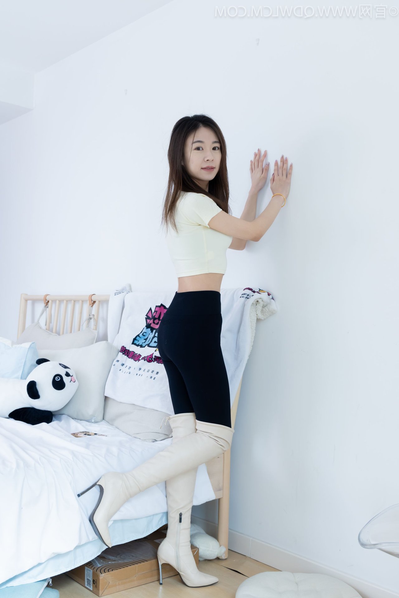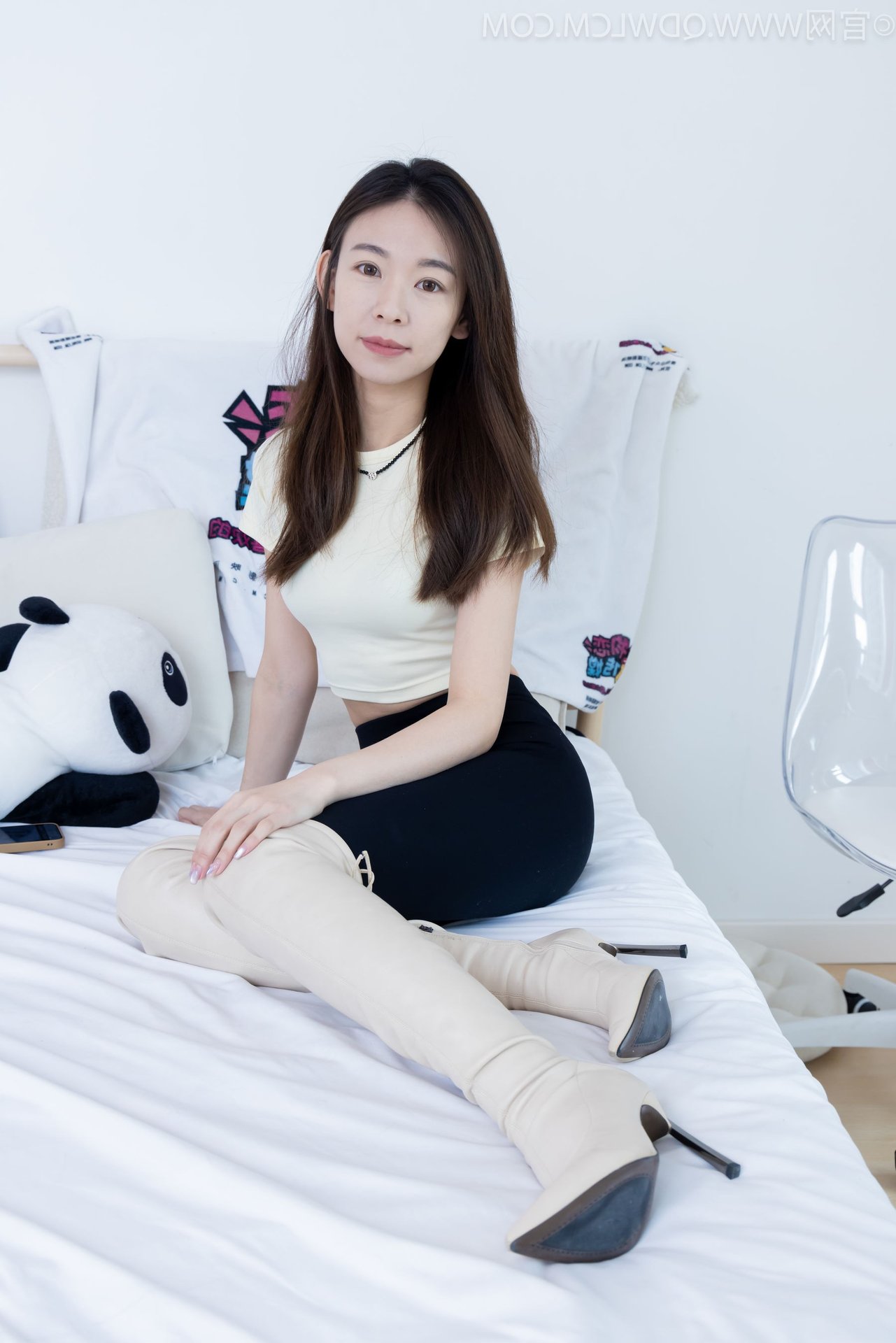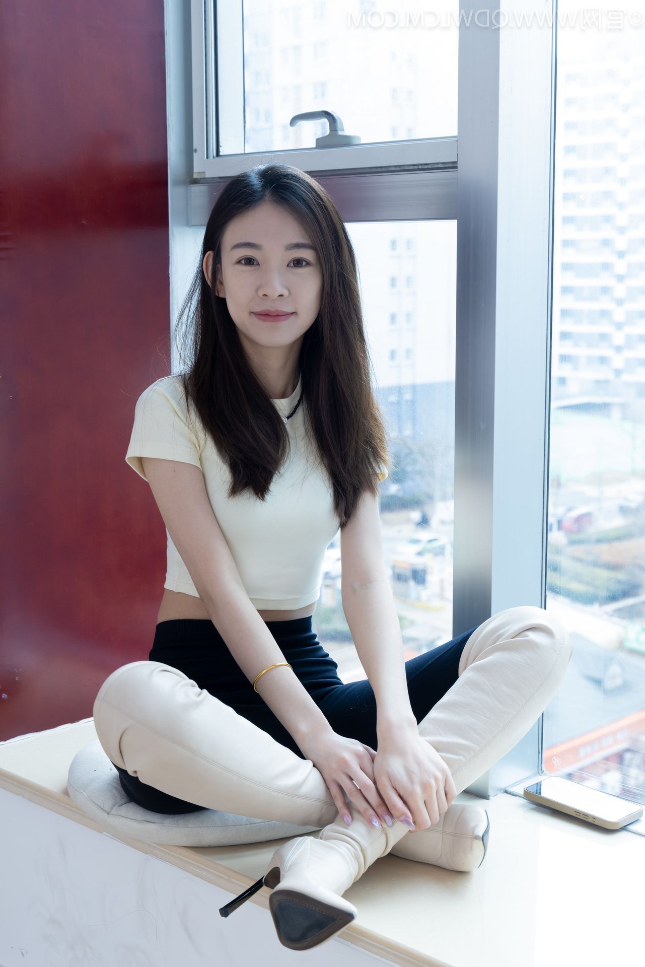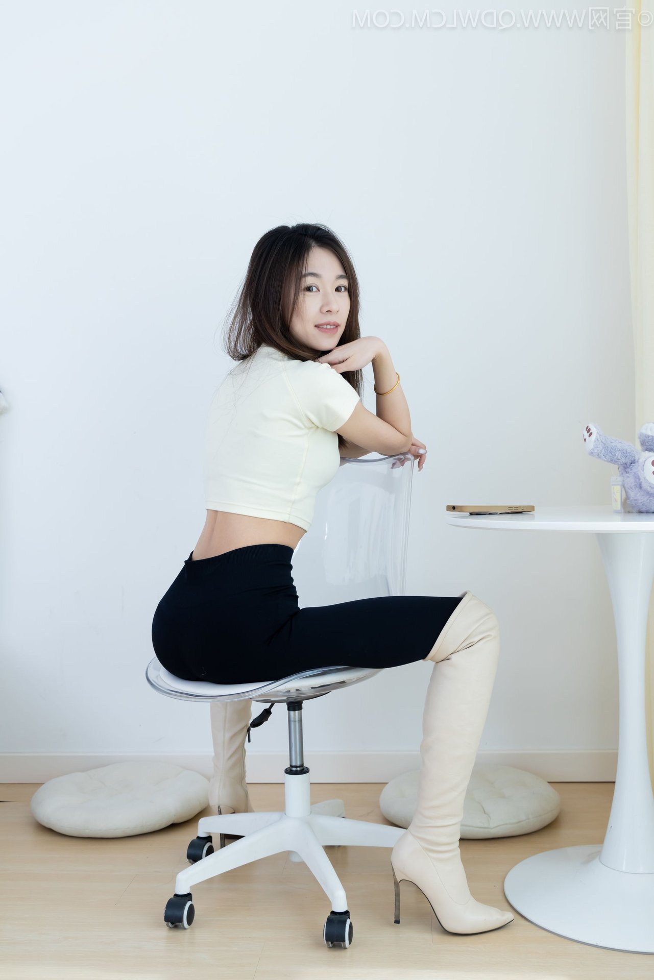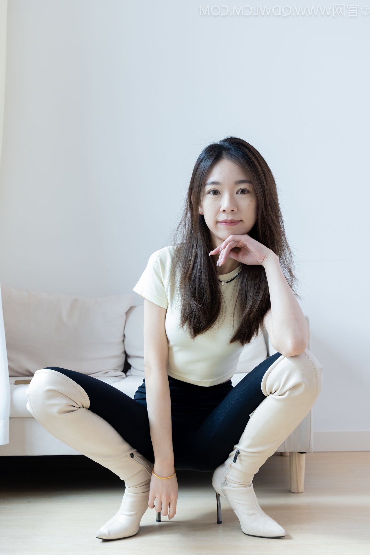 This stunning photograph captures Chinese Model Tingting No.2339 in a graceful and confident pose. She is impeccably styled in a simple crop top sleek black pants and notably a pair of fashionable cream-colored over-the-knee boots that accentuate her slender figure and modern aesthetic. With captivating eyes and a gentle smile Tingting exudes an elegant and alluring charm. The minimalist white background highlights the sophistication of her outfit and her poised demeanor creating a harmonious and striking image. This photo offers wonderful inspiration for fashion enthusiasts and those seeking unique personal style.