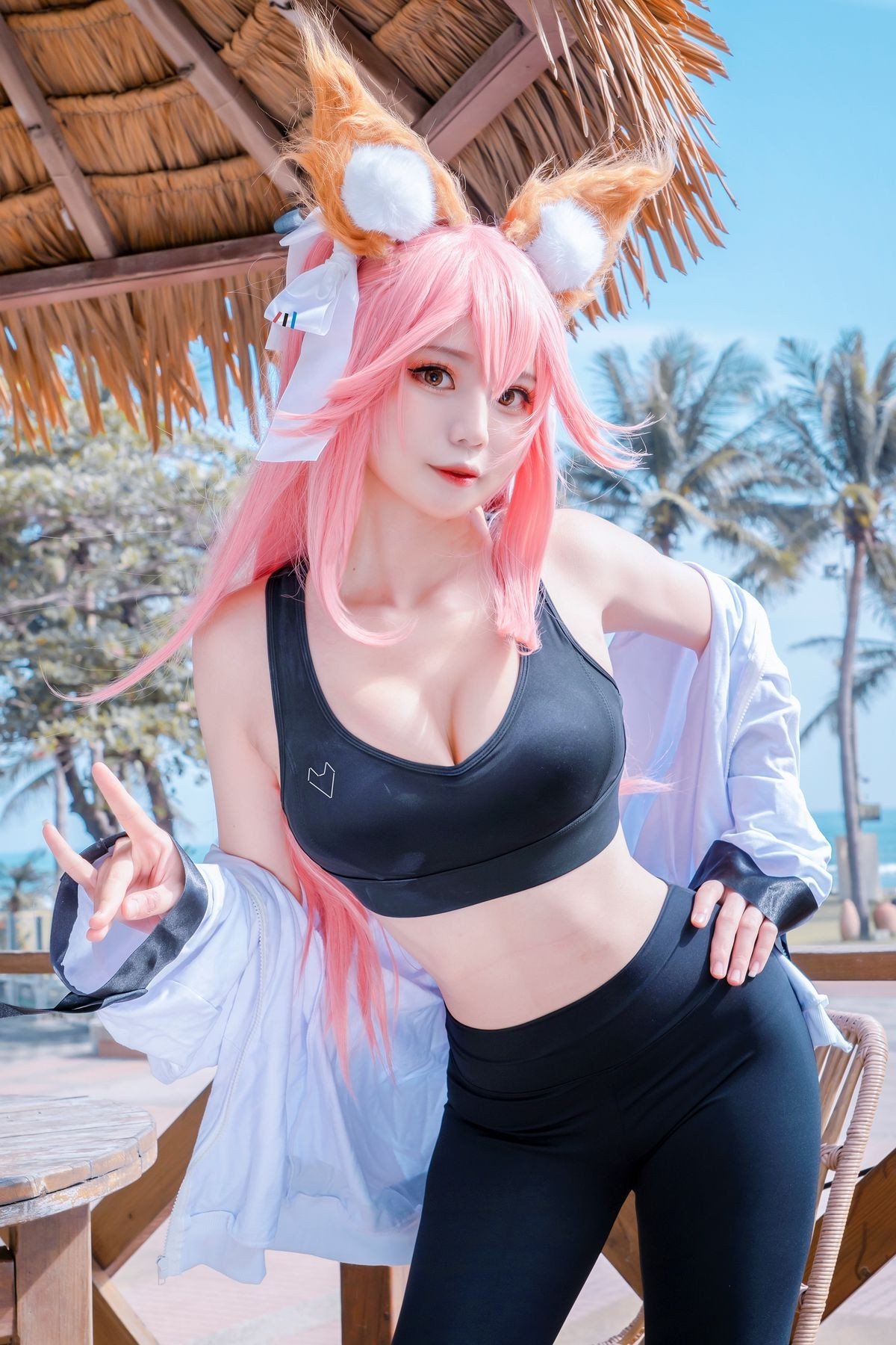 Coser@雪貓Yuki delivers a stunning and alluring portrayal of Tamamo. The character shines with voluminous pink hair and distinctive fox ears, exuding a playful yet captivating charm. Her pastel pink cosplay outfit, adorned with delicate lace and bows, gracefully highlights the cosplayer's slender figure and alluring curves. The photoshoot setting is a luxuriously appointed room featuring predominant pink furnishings, from the plush sofa to classic decorative accents, creating a romantic and sophisticated ambiance. Soft lighting further enhances Yuki's ethereal yet undeniably sensual beauty. Each image reflects meticulous attention to detail, from the costume to the confident posing, fully embodying the spirit of the Tamamo character and captivating viewers.