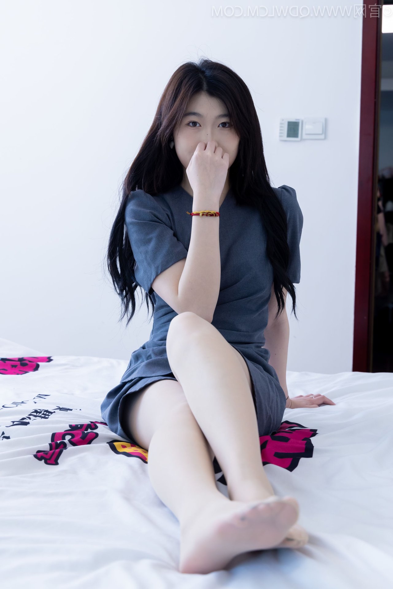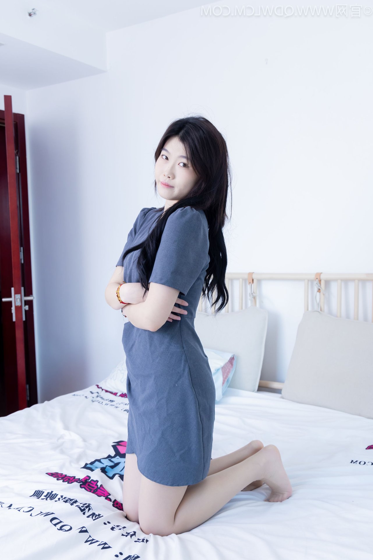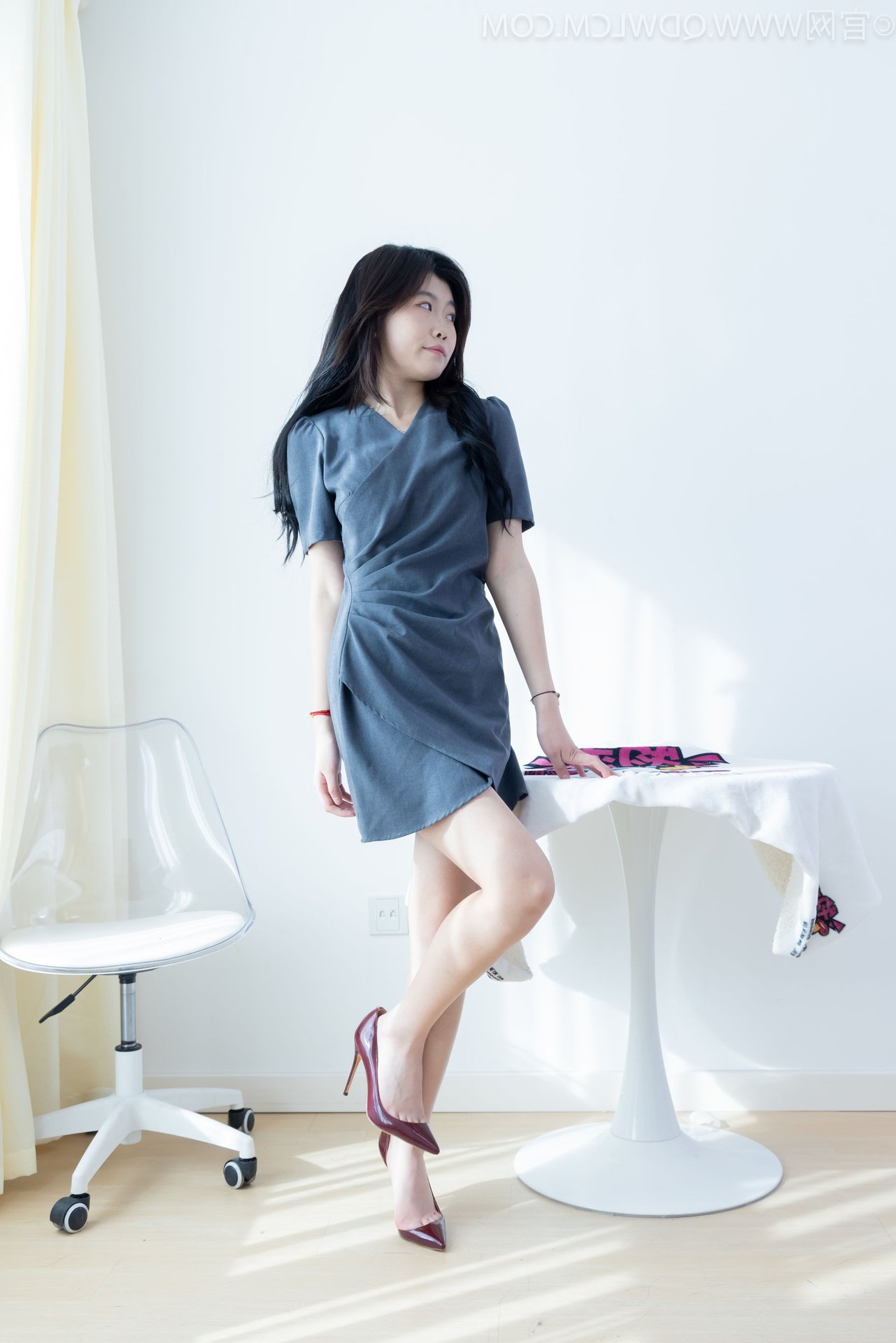 This stunning photograph features Chinese Model No2336 Cherry exuding elegance and charm She poses gracefully on a light blue sofa showcasing her slender legs enhanced by delicate sheer hosiery and sophisticated high heels Her dark gray short dress further accentuates her modern fashion sense With flowing dark hair and captivating eyes Cherry embodies a confident and alluring presence This image is perfect for those who appreciate the blend of high fashion and East Asian beauty highlighting the allure of high heels and sheer hosiery in contemporary style