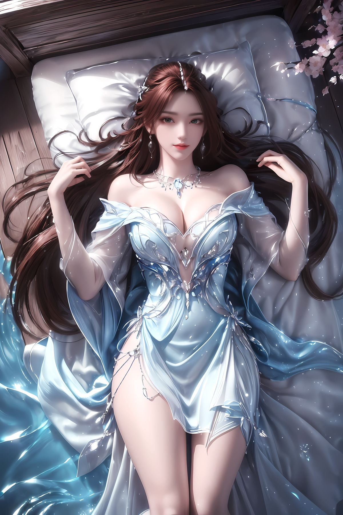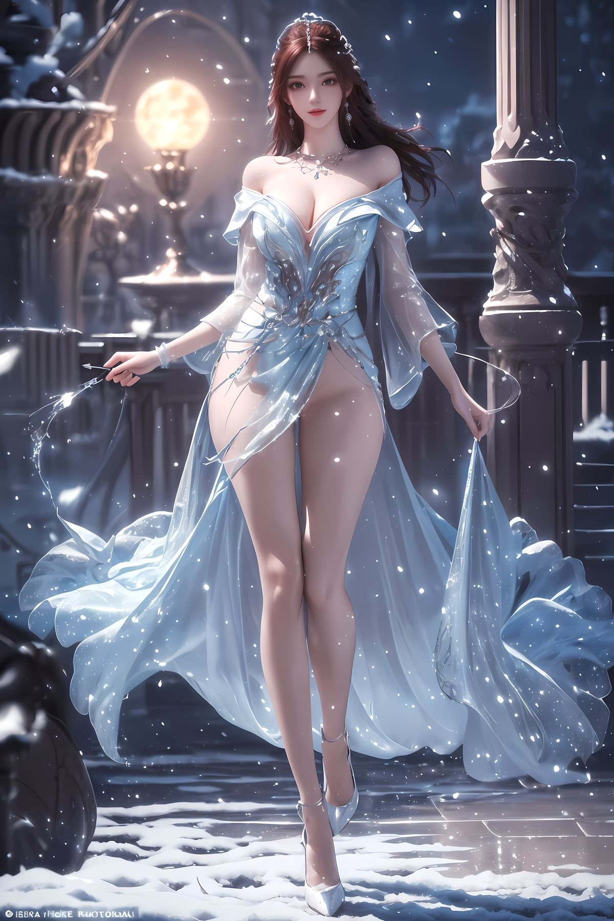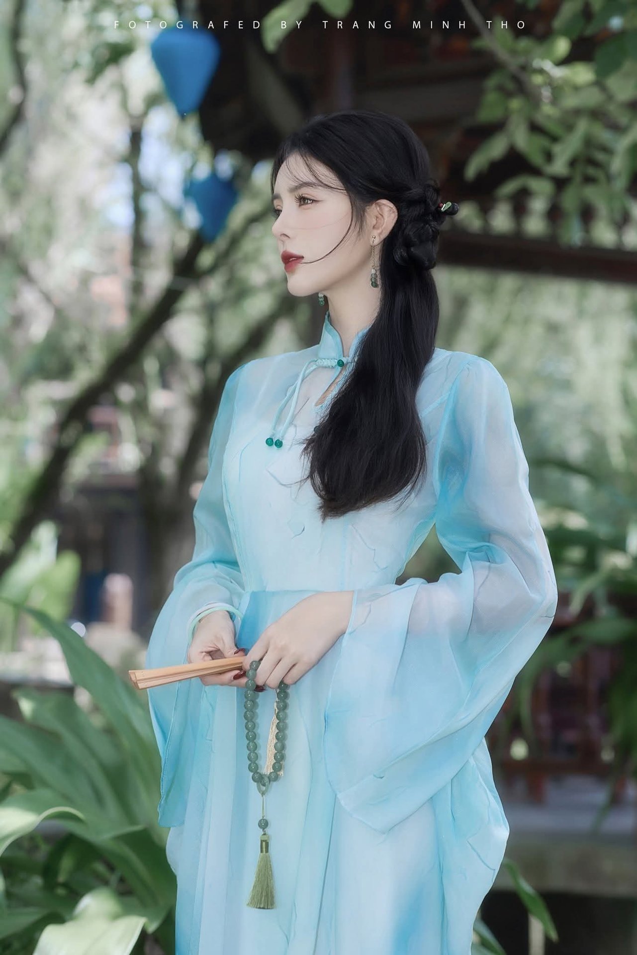 This stunning image showcases the fairy Ye Qingxian from the AI Generated Kuzan collection embodying a surreal beauty within the Perfect World With flowing reddish-brown hair and captivating eyes she is adorned in a magnificent light blue gown exquisitely embellished with sparkling frost-like details The majestic natural backdrop of snow-capped mountains and a full moon creates an ethereal atmosphere where Ye Qingxian emerges as an alluring ice goddess Every detail from her attire to the enchanting scenery is meticulously crafted evoking grace and power This is a masterful digital artwork offering a profound glimpse into the character of Ye Qingxian and her magical worldMai Ha Hoang Yen: Beautiful Secretary Transformation Captivates Online Community