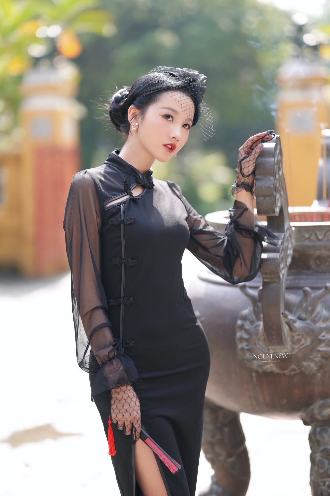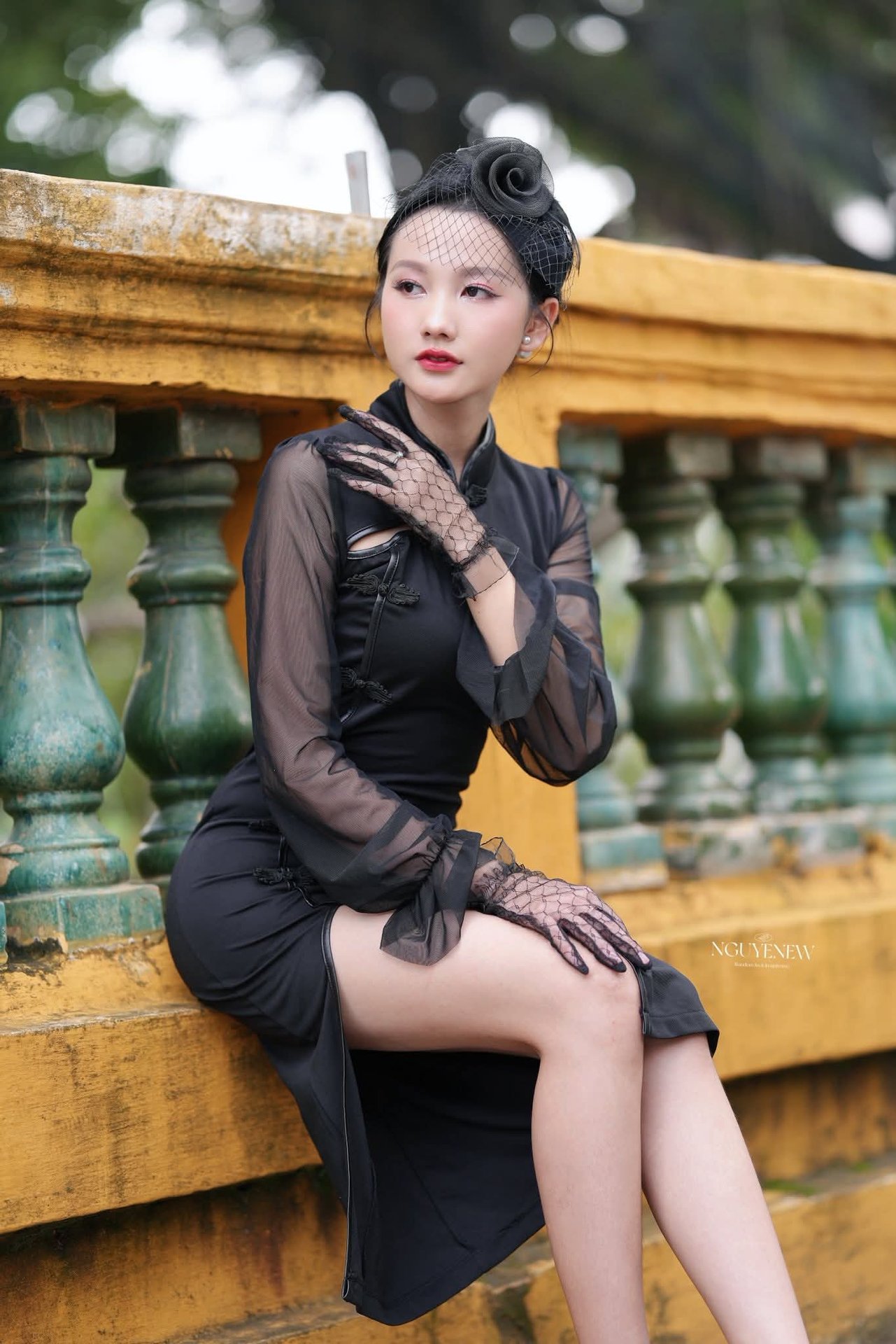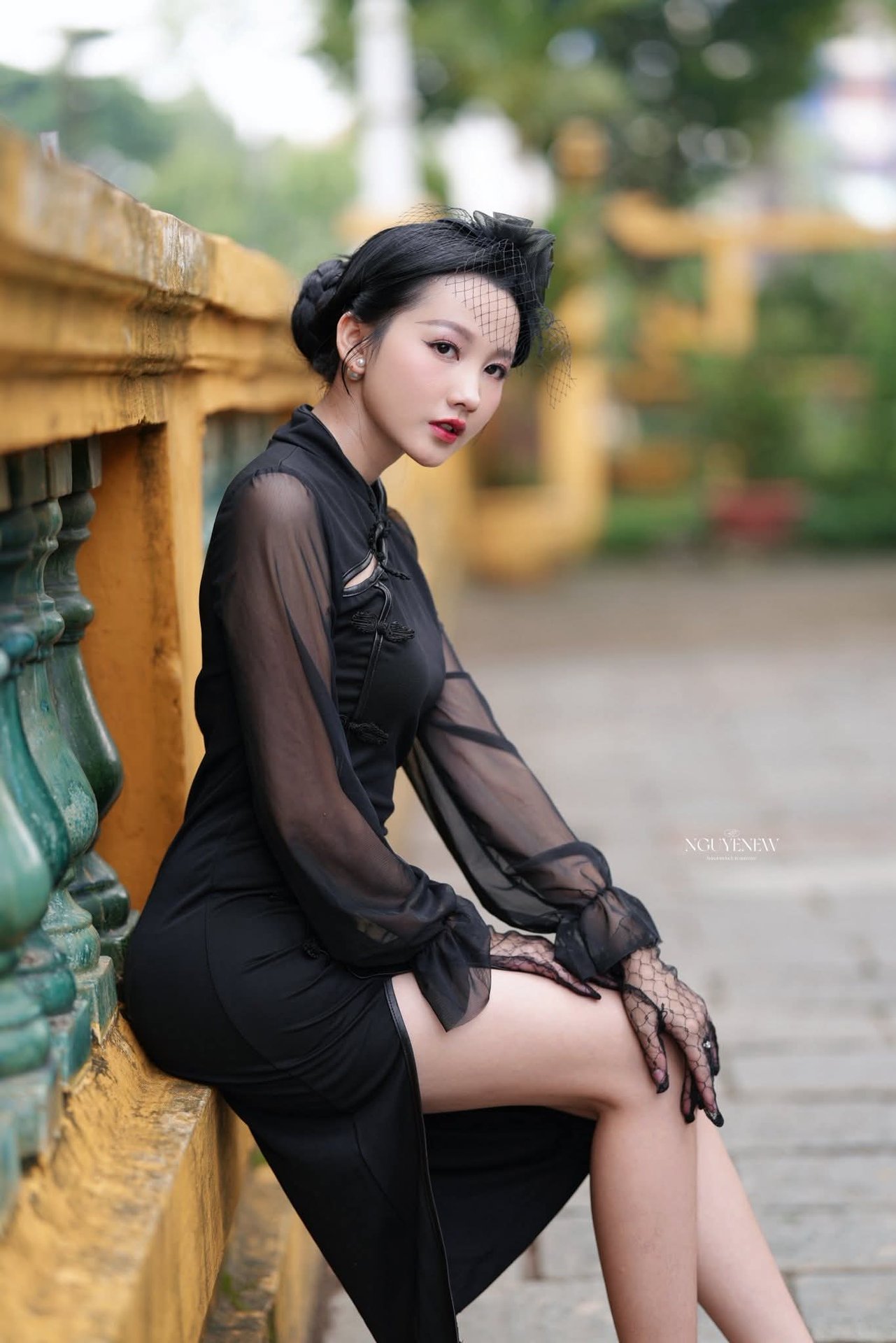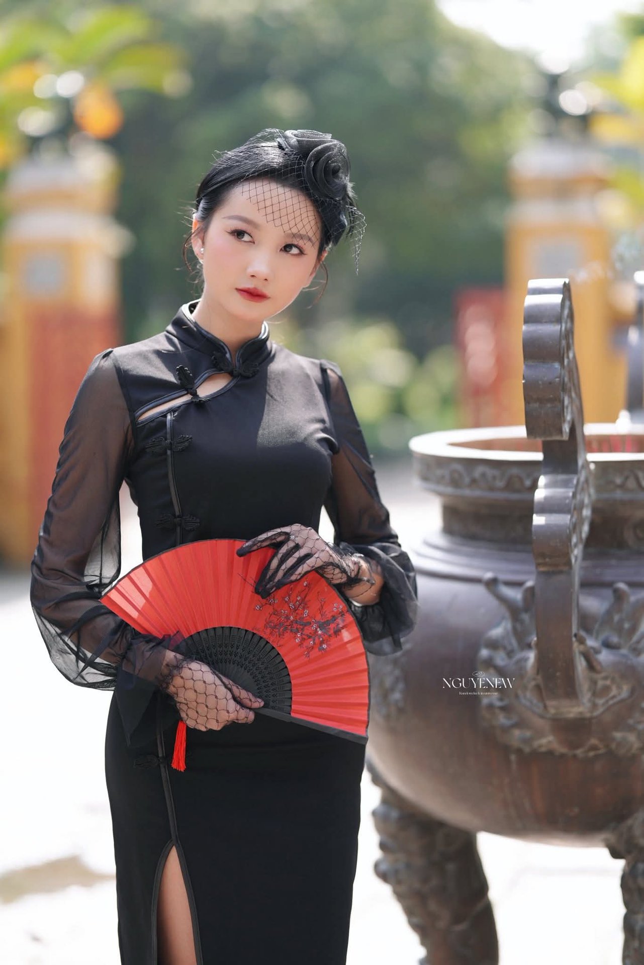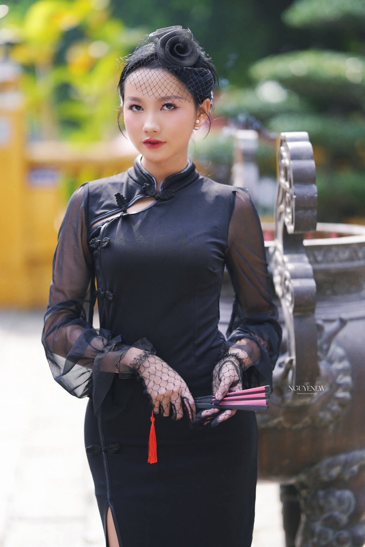 Discover the captivating elegance in this **HD wallpaper portrait**. The image features a graceful young **woman** exuding sophistication, dressed in a stunning black, modern-inspired **cheongsam style dress**. Its sheer sleeves and elegant high slit, coupled with a delicate net veil headpiece and lace gloves, create a mysteriously alluring and **classic style** ensemble. The **model** is posed gracefully on an ancient railing, her gaze distant, embodying enchanting **Asian beauty**. This **1000017611.jpg** image is a perfect choice for **HD wallpaper**, bringing a touch of timeless fashion and artistry to your screen, celebrating the enduring charm of **women**.Stories