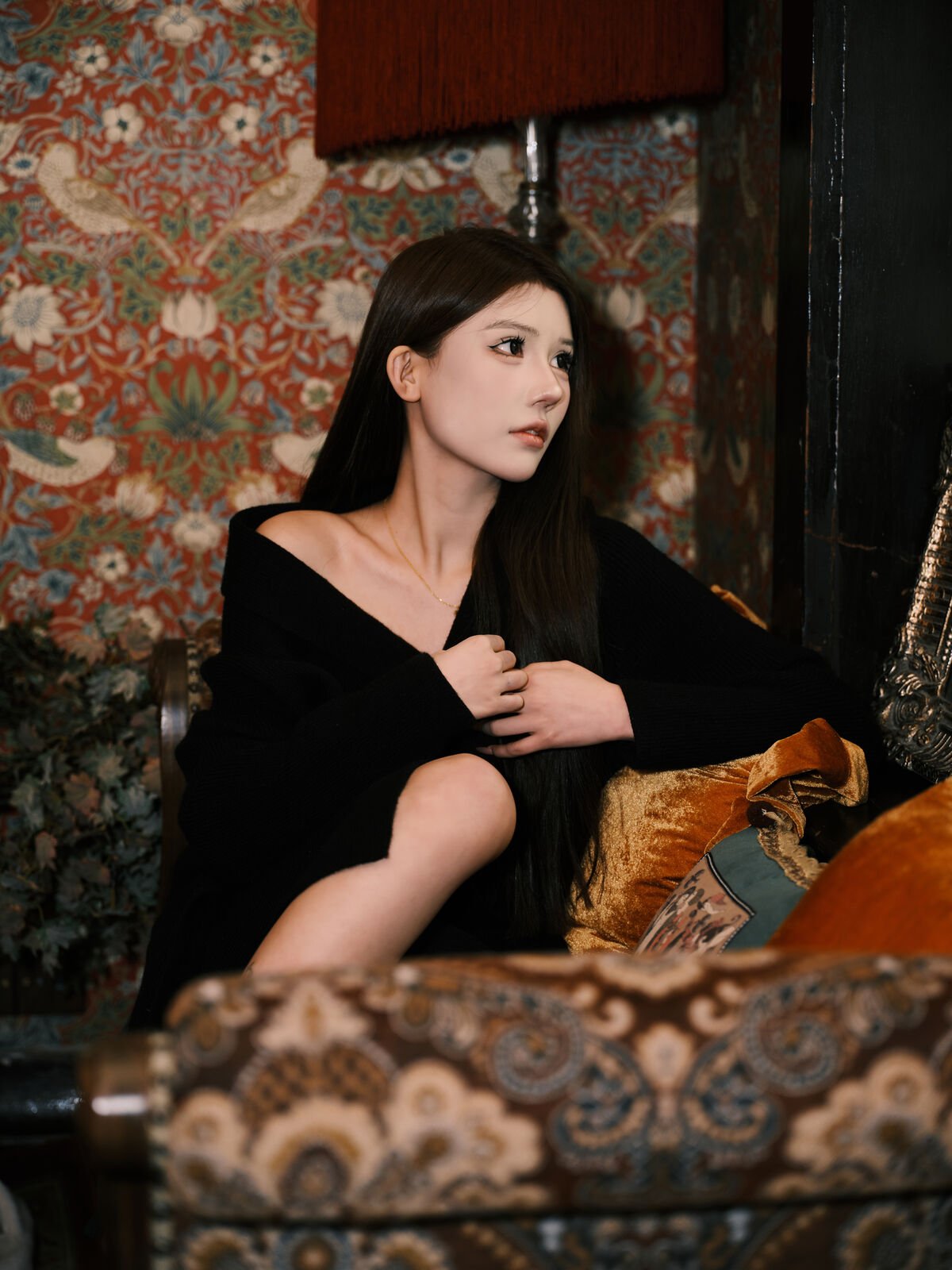 This captivating image from the YiTuYu Art Language Vol.8308 collection features model Xia Bei Fang in a stunning classic villa setting She embodies a refined elegance with her contemplative gaze and graceful posture Dressed in a simple yet sophisticated dark attire her long flowing hair adds to her alluring charm The richly patterned wallpaper and soft ambient lighting create a warm vintage atmosphere evoking the timeless beauty of an old Shanghai style villa This portrait captures a moment of serene introspection where Xia Bei Fang’s classic beauty merges seamlessly with the luxurious historical backdrop It is an artistic expression that tells a story of inner grace and captivating style