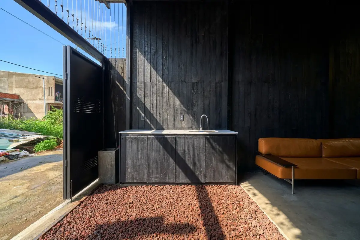 This modern single-story house illuminates the peaceful ambiance of the Mekong Delta, presenting a unique and captivating architectural beauty. The entrance is exquisitely designed with large glass doors, opening up a living space bathed in natural light thanks to its clever skylight system. Whether by day or night, the house radiates warmth with its inviting lighting, highlighting architectural lines and the lush small garden by the porch. The open-space design not only optimizes ventilation but also harmoniously connects with nature, creating an ideal, private, and inspiring home. This truly represents a sustainable architectural solution, offering a premium and tranquil living experience.