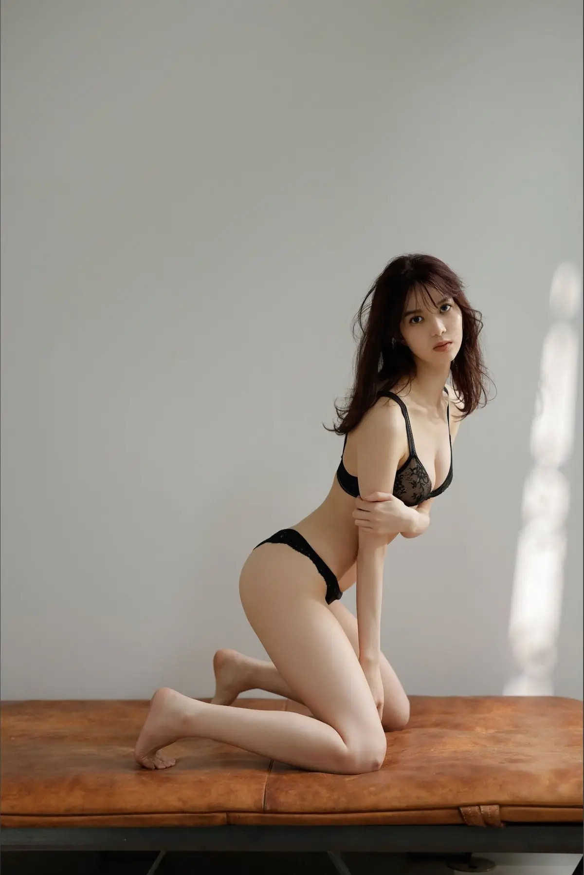 Welcome to the AG Vol.611 Part 02 photo collection where model Areumm shines with enchanting beauty. In this stunning image Areumm exudes a confident and captivating aura showcasing her graceful figure in delicate black lace lingerie. Natural light streaming from the window beautifully highlights her smooth skin and long lustrous hair. With a direct and expressive gaze Areumm not only captures every eye but also creates an intimate atmosphere sparking curiosity. The blend of alluring fashion and a simple yet elegant setting results in an emotionally rich artwork affirming the model's irresistible charm. Explore more beautiful moments of Areumm in this exclusive photoshoot.#Areumm #AG #LingerieModel #AsianBeauty #SultryPhotoshoot