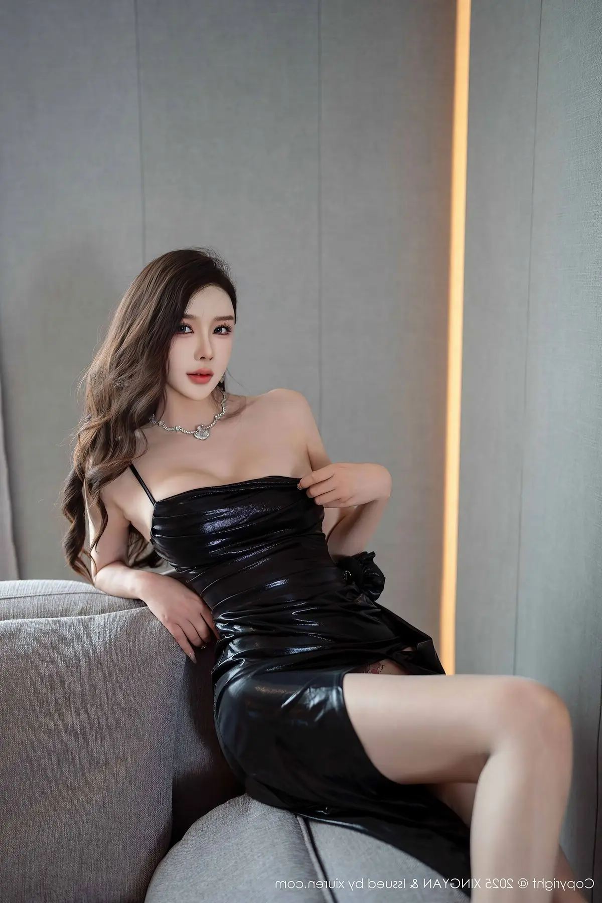 In the XingYan Vol.393 collection Li Li Sha presents a captivating and sophisticated style. She appears in a form-fitting black dress highlighting her perfect figure and confident alluring aura. Her deep gaze and flowing long hair further emphasize the elegant and luxurious beauty of the model. The professional pose combined with the minimalist background creates a harmonious and striking overall impression. This series of photos not only showcases her physical beauty but also conveys Li Li Sha's strong confidence and personality. This is part of XingYan's exclusive collection promising unique visual experiences for fans. Li Li Sha truly is an icon of modern allure.
