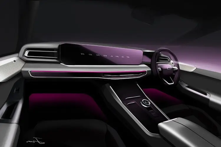 The interior sketch of the Ford Explorer 2026 reveals a completely new cabin space, redefining standards of luxury and technology. Its modern design stands out with a large, seamless display screen, creating a spacious and sophisticated feel. The impressive purple ambient lighting system not only enhances aesthetics but also provides an emotional and personalized driving experience. With minimalist lines and a streamlined center console, the Ford Explorer 2026 SUV promises superior convenience and a user-friendly interface. This represents a significant leap in car design, affirming Ford's leading position in the SUV segment, attracting all eyes with its technological beauty and class.#FordExplorer2026 #CarInterior #AutomotiveDesign #LuxurySUV #CarTech