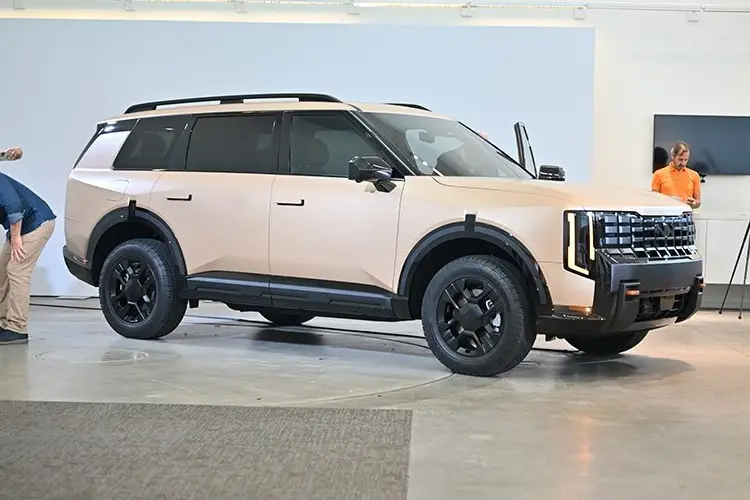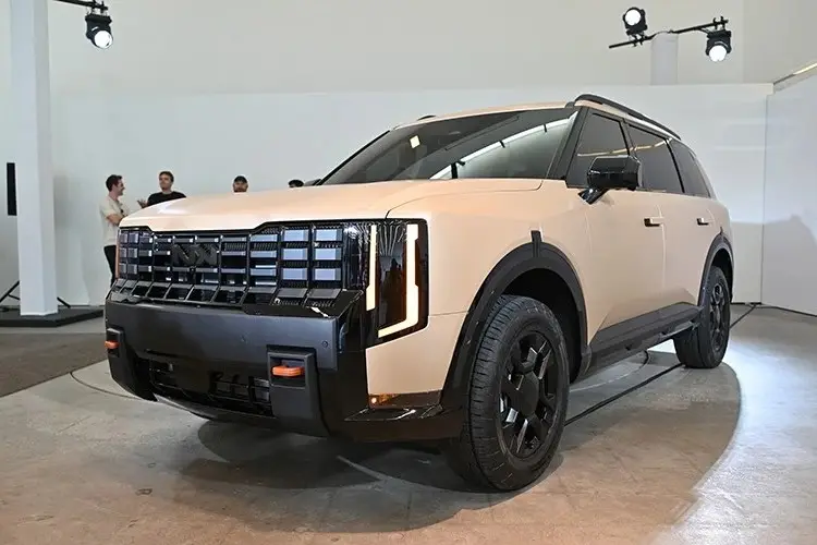 A close-up of the newly launched all-new Kia Telluride 2027 captivates with its spectacular transformation. This 3-row SUV not only inherits a successful legacy but also elevates the driving experience with a groundbreaking design. Particularly, the showcased version exudes a powerful aura, ready for challenging off-road adventures, thanks to its robust knobby tires and distinctive black wheels. The unique beige paint further accentuates its sophisticated yet adventurous spirit. The Kia Telluride 2027 promises to be the perfect choice for explorer families seeking an SUV that is not only comfortable but also incredibly durable. Its debut has generated a wave of excitement, anticipating a new era for the mid-size SUV segment.#KiaTelluride2027 #NewGenSUV #OffRoadSUV #CarLaunch #AutomotiveDesign
