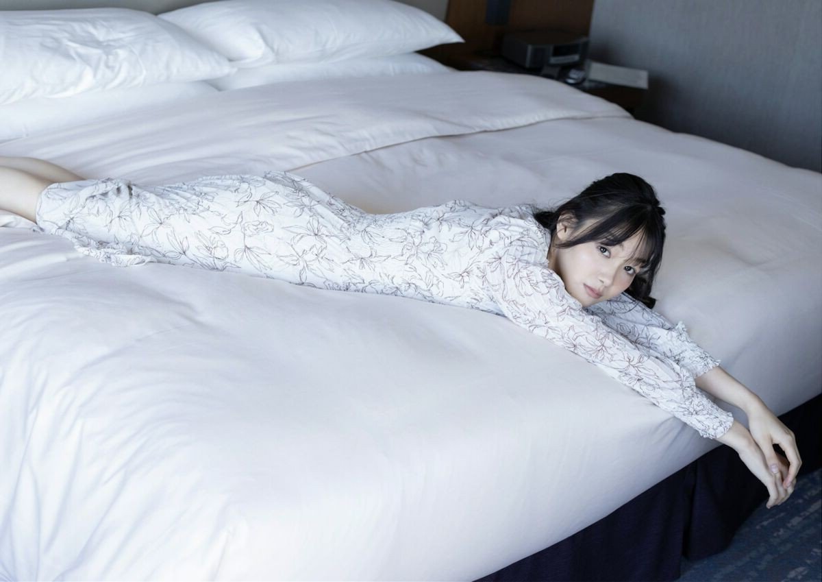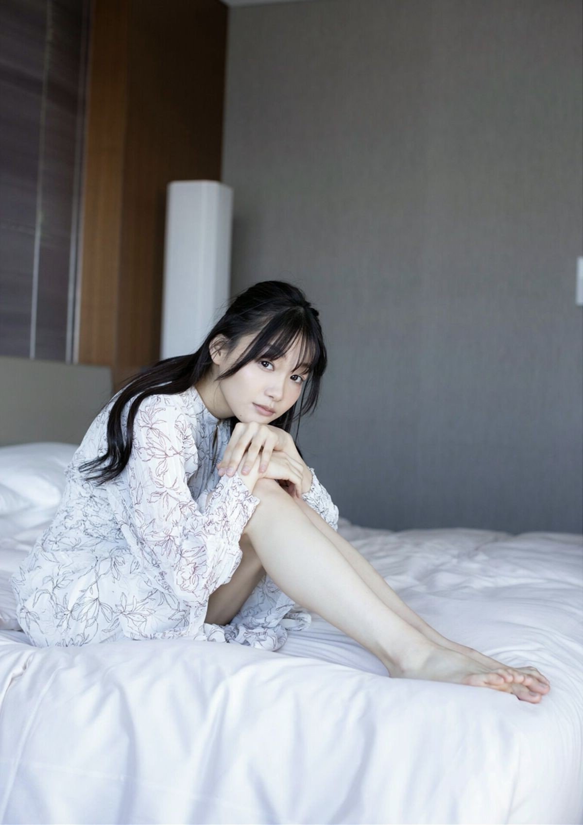 In a cozy, light-filled setting, Yokono Sumire radiates a delicate and natural beauty in her BUBKA digital photo book. This Japanese girl captures every gaze with her gentle smile and captivating eyes, creating a moment filled with emotion. Her relaxed sitting pose gracefully highlights her soft, refined curves, perfectly reflecting the photo book's promise of "illegally good curves." Each frame is a harmonious blend of Asian grace and irresistible charm, inviting viewers to delve deeper into the unique allure of Yokono Sumire and her captivating presence.
