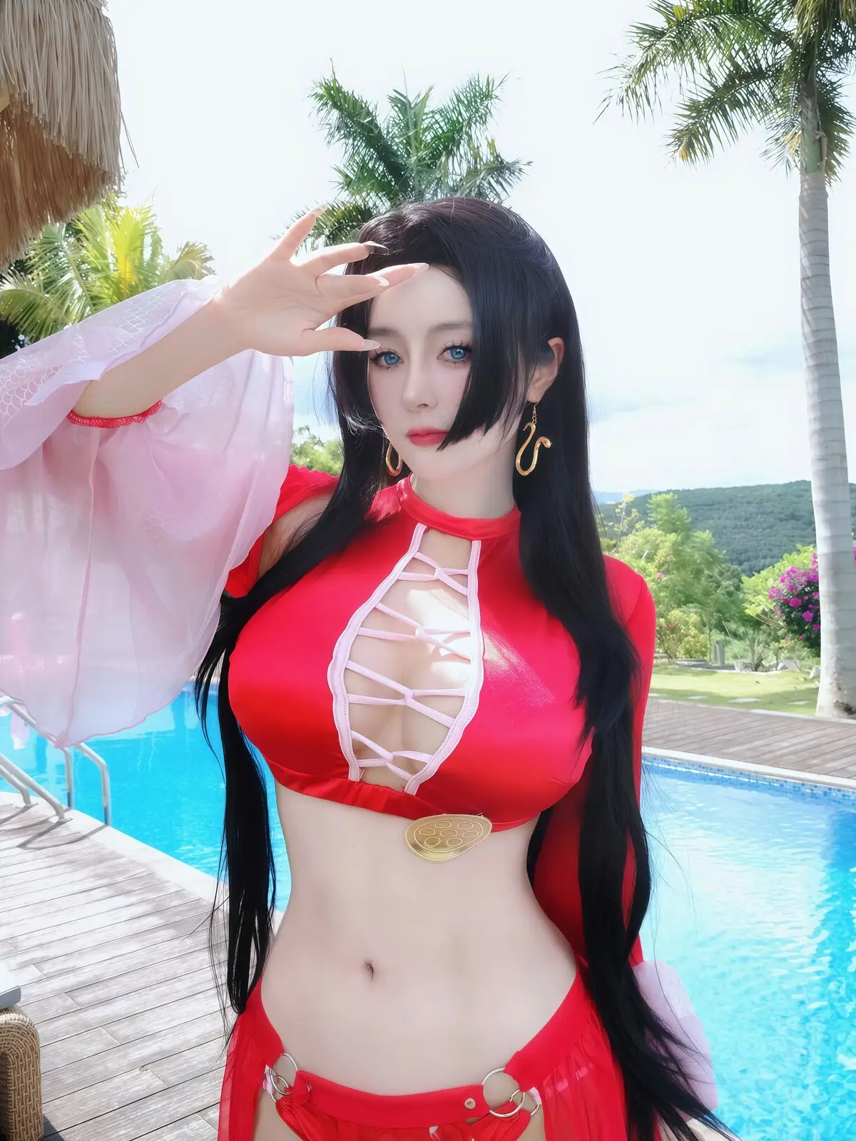 Coser Baiyin81 delivers a stunning and captivating portrayal of Boa Hancock in her Fantia 2024年12月 Part01 collection. Adorned in a vibrant red two-piece outfit with daring cuts and flowing elements, she perfectly embodies the Pirate Empress. Her confident demeanor, mesmerizing gaze, and long flowing black hair accentuate Boa Hancock's powerful and enchanting beauty. This photoshoot not only showcases the meticulous effort put into the costume but also captures the distinct charisma of the character, promising to enthrall all One Piece fans.#Coser #Baiyin81 #BoaHancockCosplay #OnePiece #Fantia #CosplayGirl