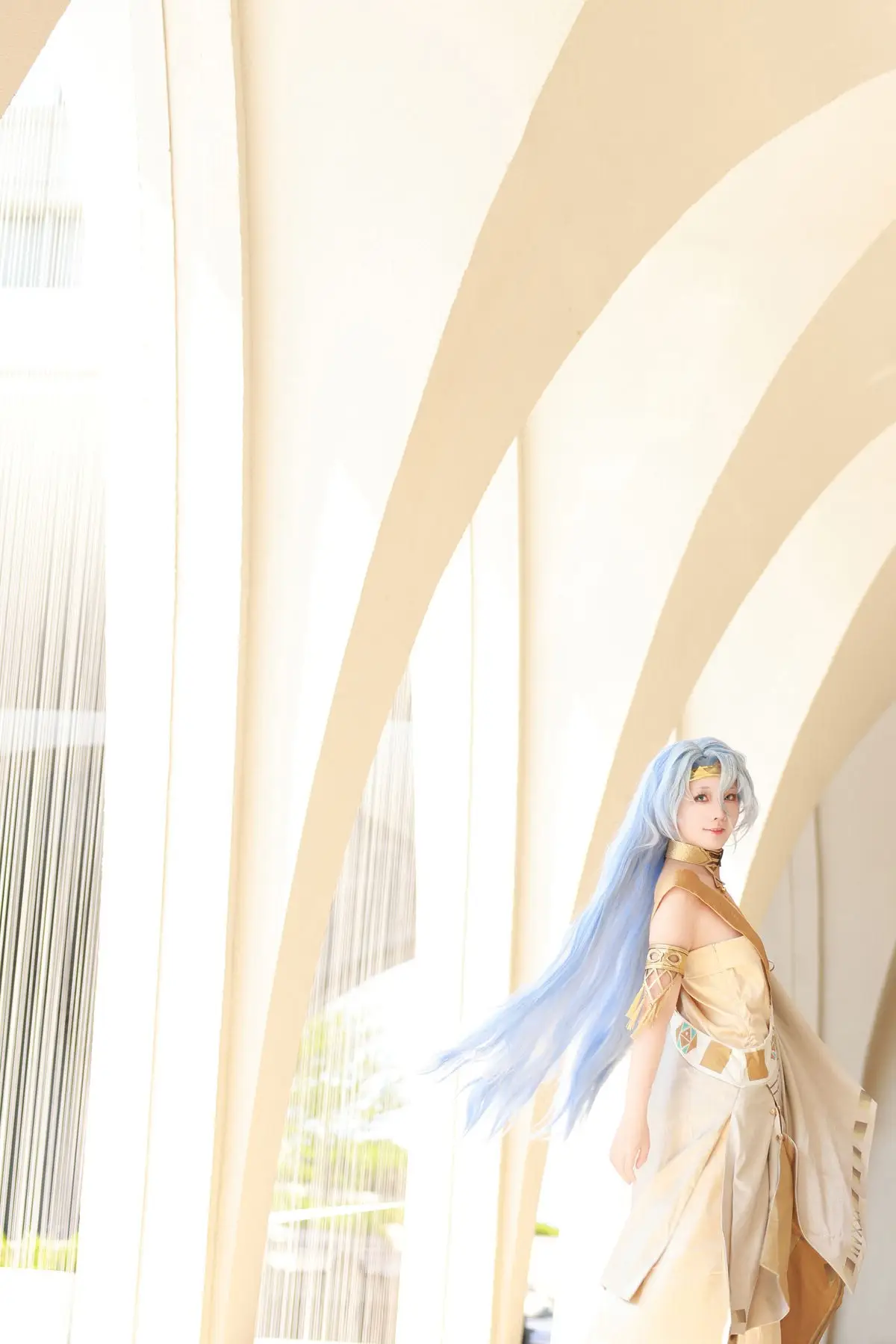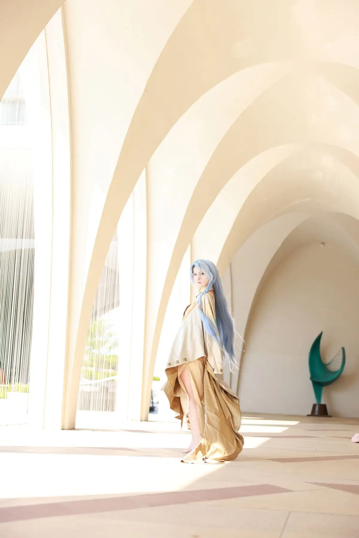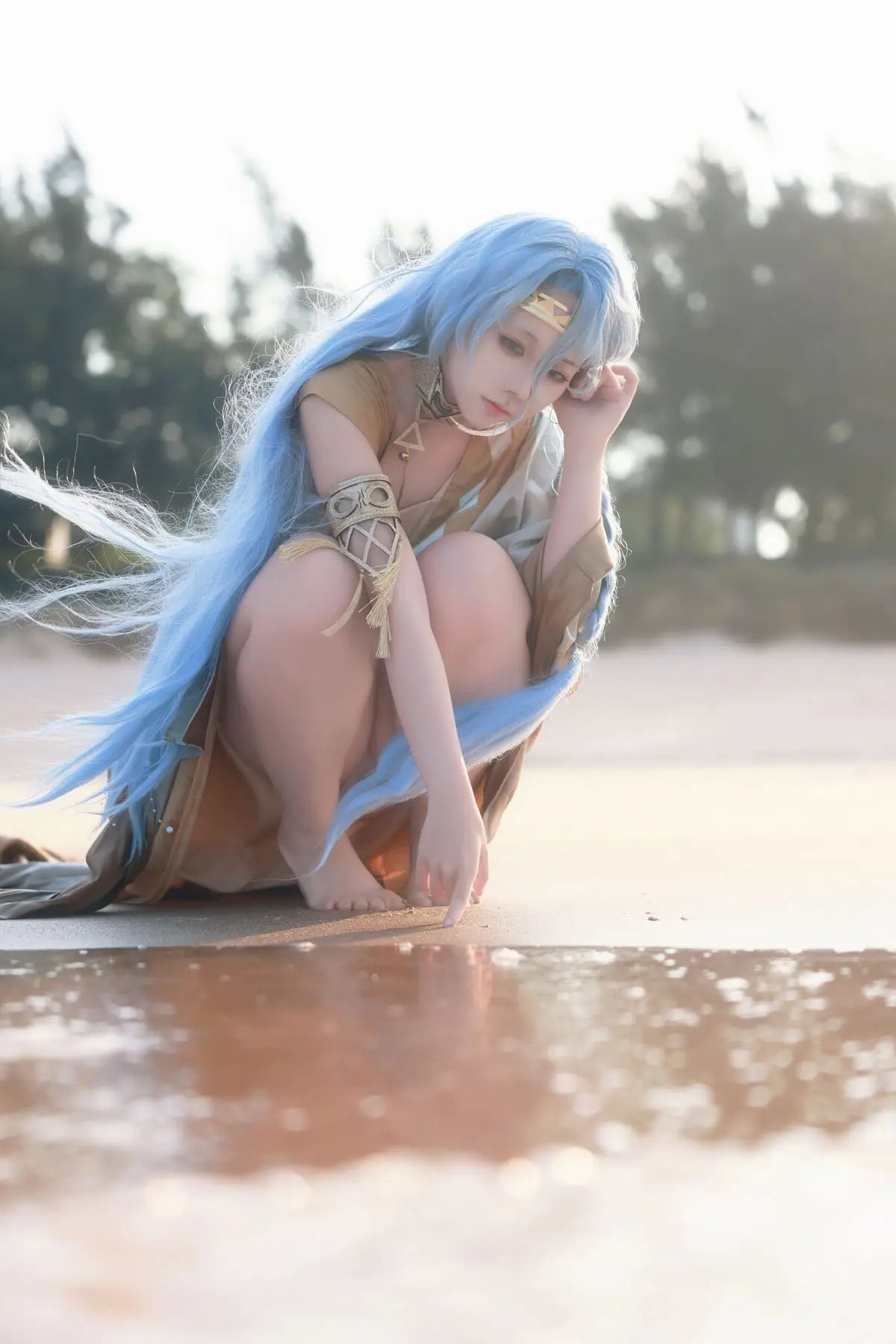 In this captivating photo cosplayer G44 Bu Hui Shou Shang masterfully embodies a character from the popular game Reverse: 1999. The stunning beach setting bathed in golden sunlight and clear blue ocean creates an incredibly picturesque and refreshing backdrop. The character's costume is meticulously recreated with intricate details and soft colors that perfectly harmonize with the vast seascape. The cosplayer's graceful gentle beauty inviting gaze and subtle smile further accentuate the character's ethereal aura. This image not only showcases the elaborate effort invested in cosplay but also evokes a sense of serene relaxation reminiscent of a memorable summer vacation. It is truly an impressive piece of cosplay artistry.#Coser #G44 #Won 'tGetHurt #Reverse1999 #CosplayBeach #AnimeCosplay #G44BuHuiShouShang