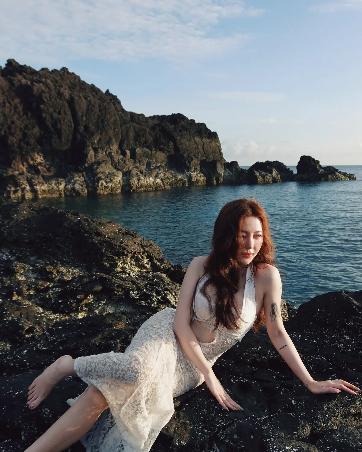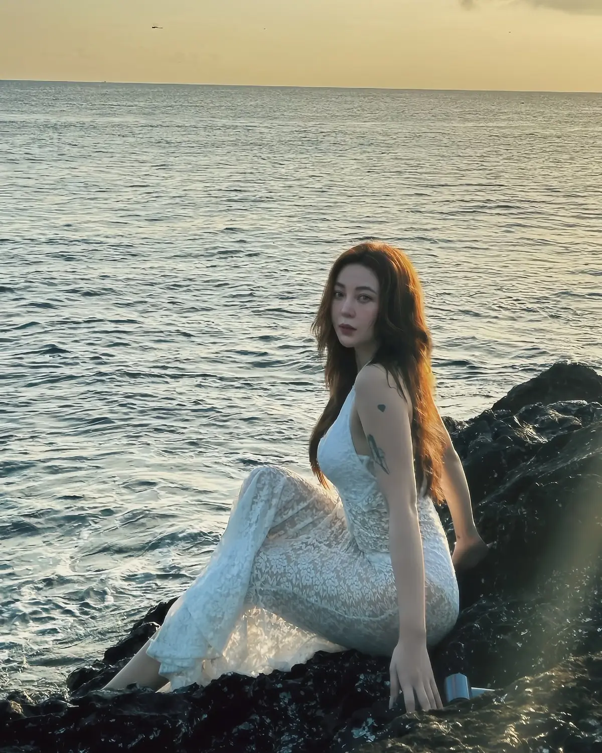 Former FAPtv comedy group member, Wendy Nguyen Thanh Tuyen, a captivating young face, is making waves across Vietnamese social media with her latest stunning image. She showcases her impeccable figure in a pristine white dress, gracefully seated on rocky coastal outcrops. Her flowing reddish hair and deep gaze create a beauty that is both wild and alluring. The photograph not only highlights her refined fashion sense but also portrays Wendy's confidence and radiant charm. This image serves as a testament to her continuous appeal, consistently remaining a focal point in various social media trends.#WendyNguyenThanhTuyen #FAPtv #VietnameseCelebrity #BeachStyle #AsianBeauty