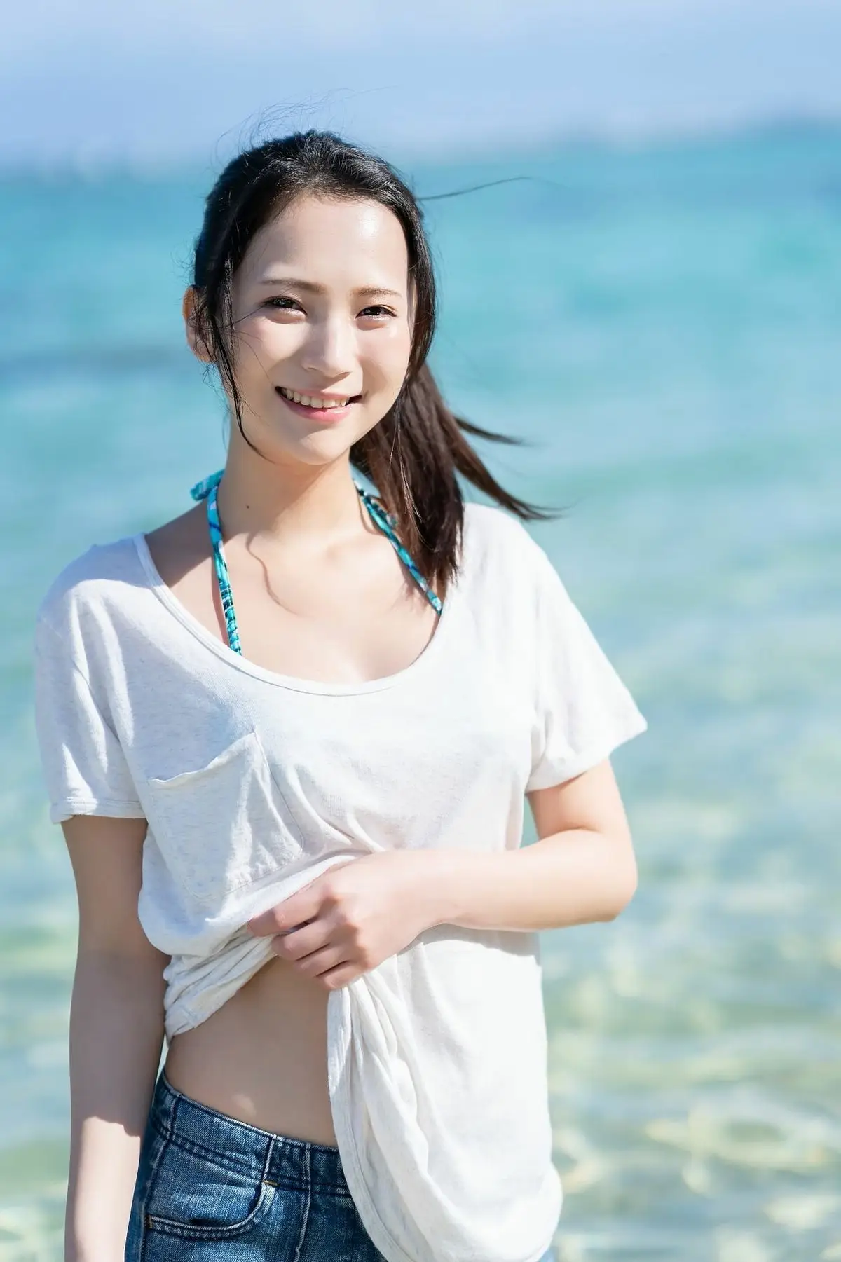 Risa Yukihira, the renowned Japanese model, radiates in her FRIDAY Monthly Girl 016 photoshoot. Captured on a sun-drenched beach, she dons a delicate light blue bikini, showcasing her effortless natural beauty and serene elegance. Risa Yukihira's expression is both gentle and captivating, her gaze directly engaging the camera as if sharing a silent narrative. Her hair, gently tousled by the sea breeze, further enhances her enchanting allure. This image is a highlight from an exclusive photo collection, delivering fresh and vibrant summer moments. Fans will undoubtedly be charmed by Risa Yukihira's magnetic presence and flawless aesthetic.Stories