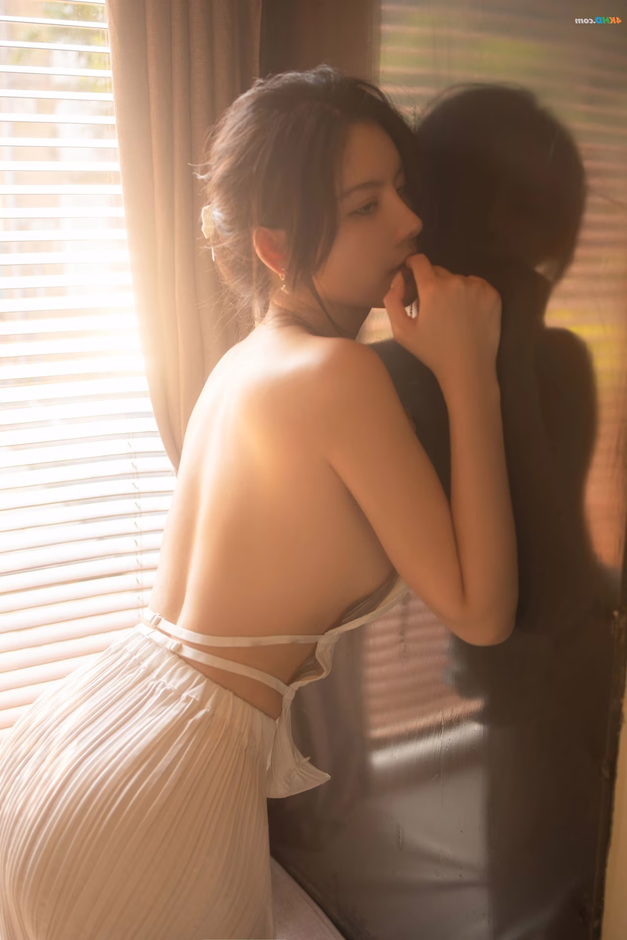In this captivating image the beautiful Jiu Shi A Zhu appears utterly enchanting as she basks in the warm afternoon sun filtering through the window blinds. The soft golden light gently caresses her every curve creating a scene that is both poetic and alluring. Dressed in a pristine yet daring white outfit subtly showcasing her long elegant legs she sits like a muse lost in thought. This moment not only celebrates Jiu Shi A Zhu's physical beauty but also conveys a sense of tranquility relaxation and vibrant life under the sunlight. It is truly an artistic and emotionally compelling photograph.#JiuShiAZhu #Warm #AfternoonSun #BeautifulGirl #Fashion #AsianBeauty