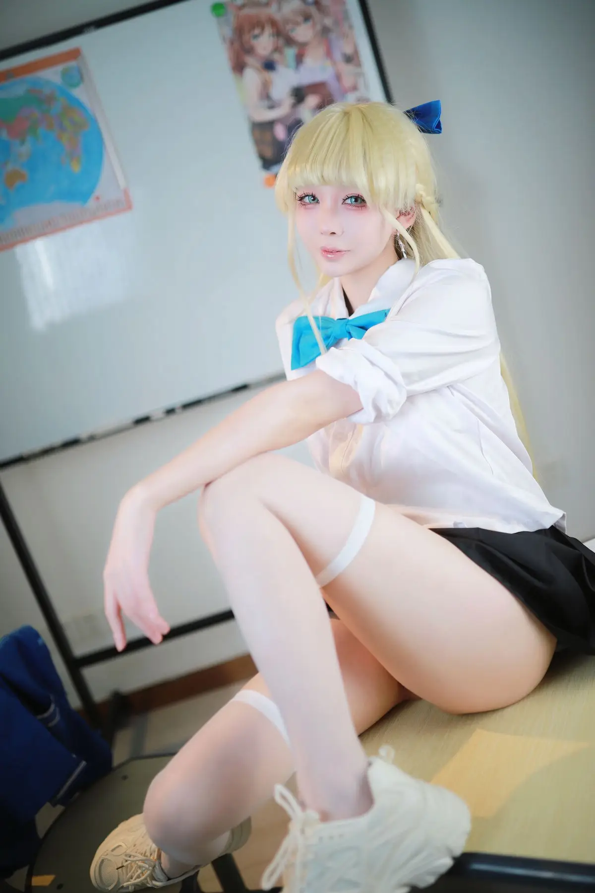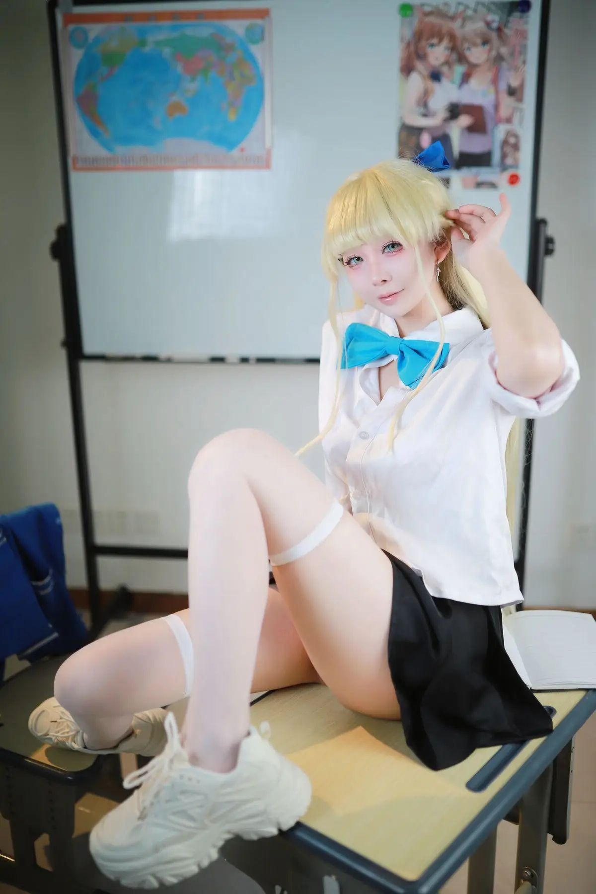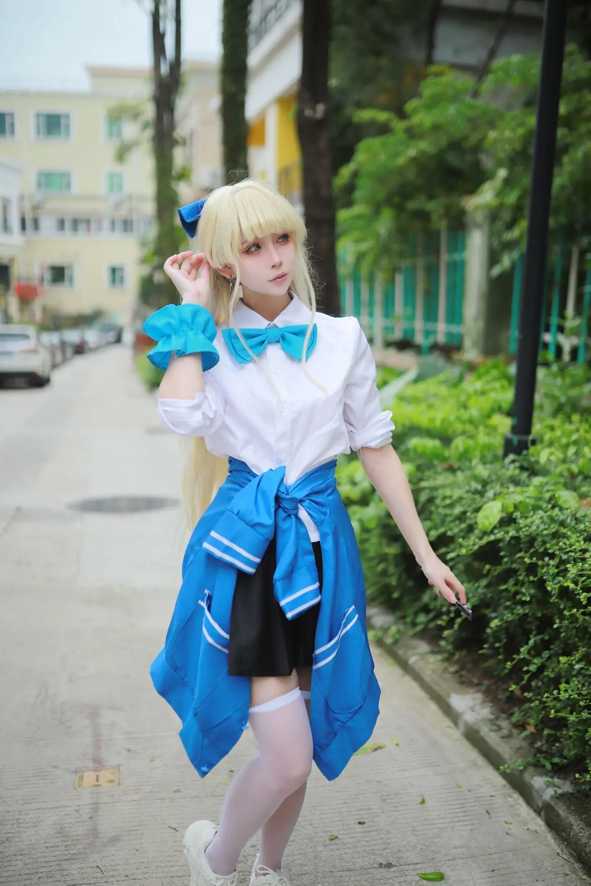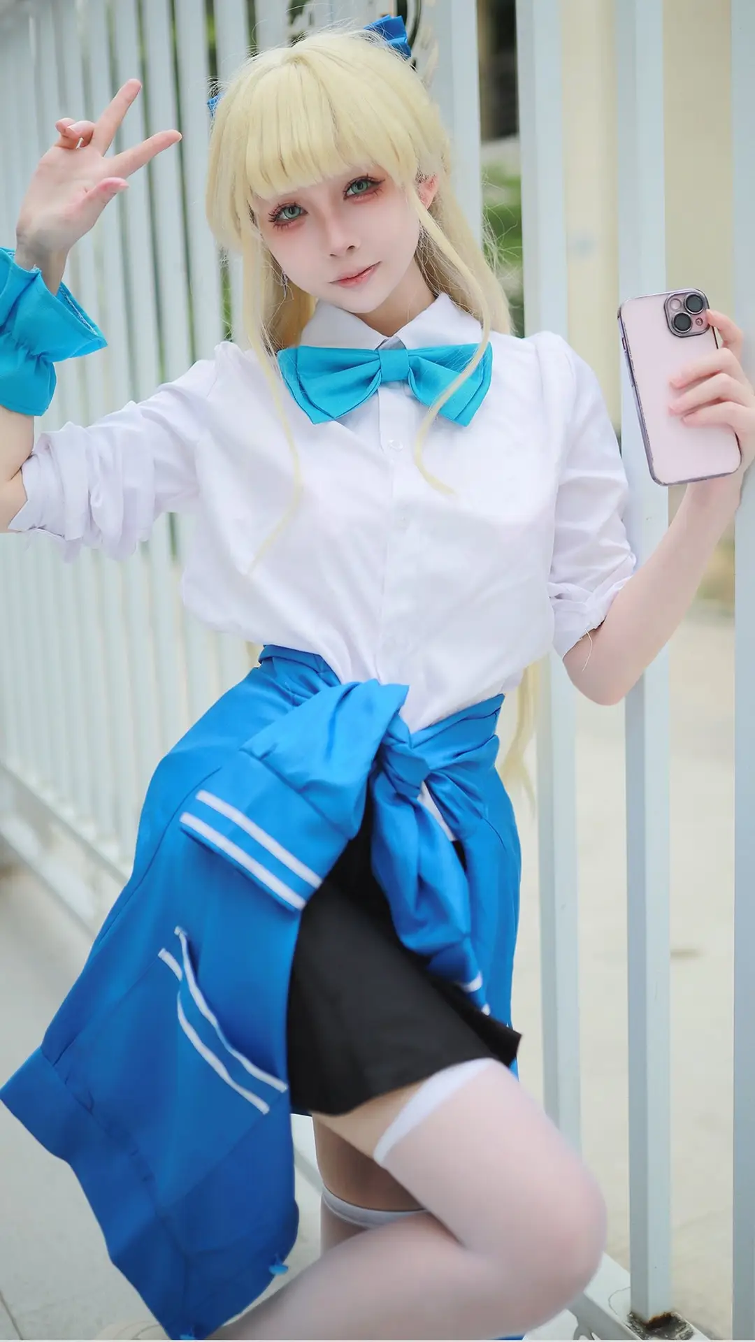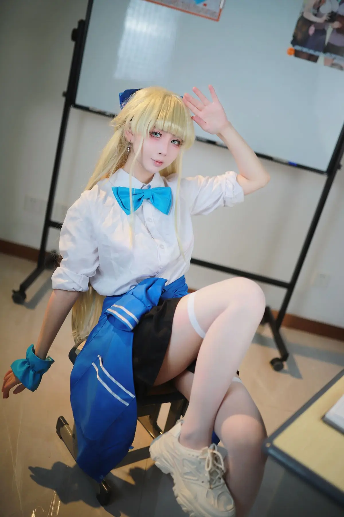 In this stunning cosplay photoshoot coser Uesugi Erika brings the beloved character Asuma Toki from the popular game Blue Archive to life with vibrant energy Her radiant blonde hair and meticulously crafted school uniform capture Toki's innocent yet dynamic charm Posing gracefully on a chair Uesugi Erikas bright smile and friendly wave perfectly embody Asuma Tokis cheerful and adorable personality The familiar school attire subtly stylized and accented with a striking blue bow creates a harmonious and eye-catching ensemble Natural lighting highlights every detail from the costumes lines to her expressive facial features This collection not only showcases dedicated craftsmanship but also fully conveys the spirit of Blue Archive leaving viewers enchanted and eager to explore more of Asuma Tokis world#Cosplay #BlueArchive #AsumaToki #Uesugi #Erika #School #Uniform