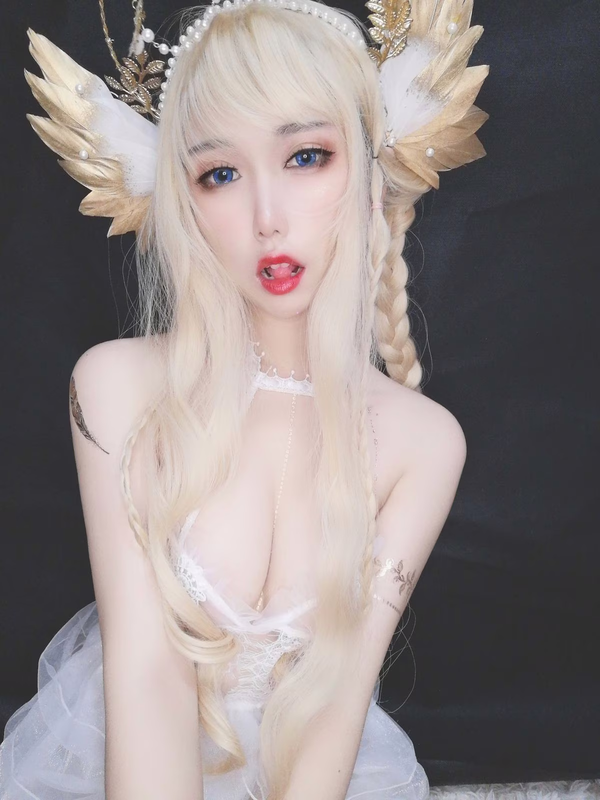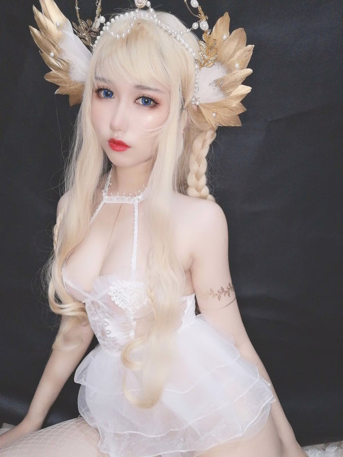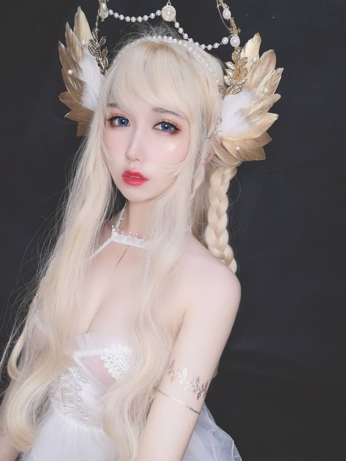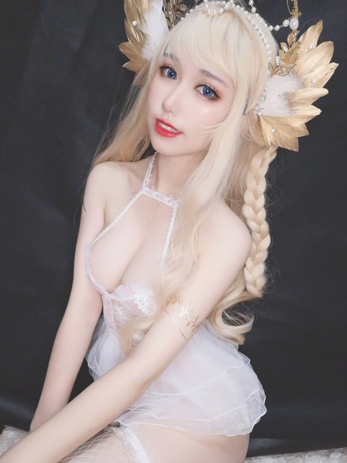 Female Cosplayer Shuzi: Sweet & Elegant in Alluring Bridal Cosplay Dress