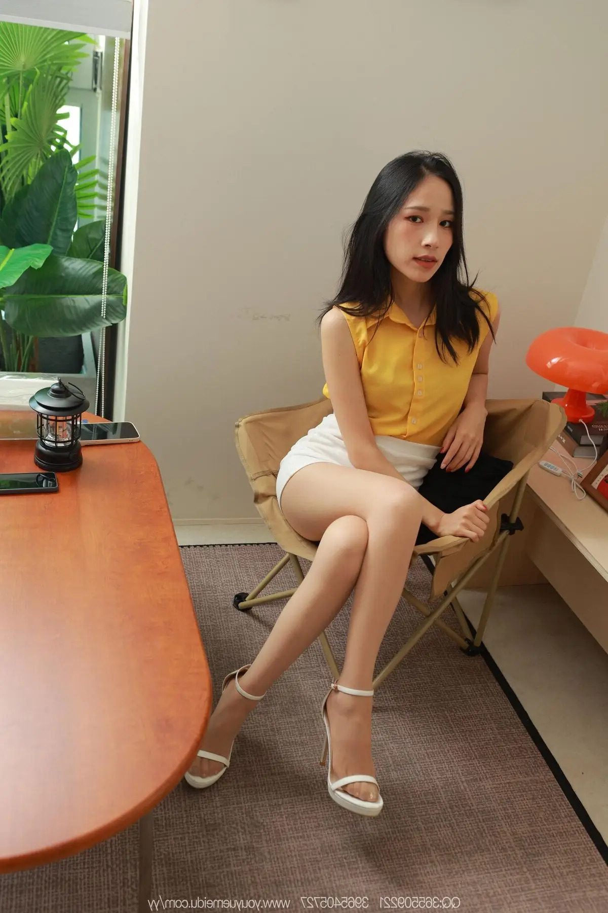 The IESS异思趣向 SXJ No.2096 Part02 collection showcases the elegant beauty of Chinese model Mei Zi (美子). In a minimalist indoor setting, Mei Zi exudes confidence and graceful poise. She is comfortably seated, donning a vibrant yellow top paired with chic white shorts and stylish high-heeled sandals. Every gesture and her direct gaze convey professionalism and undeniable charm. This image not only celebrates her physical beauty but also portrays a modern lifestyle that is both relaxed and sophisticated. It inspires a sense of freedom and elegance captured in every moment, highlighting her captivating presence.#MeiZi #ChineseModel #IESS #Fashion #CasualChic #ElegantStyle #OfficeLady #OL