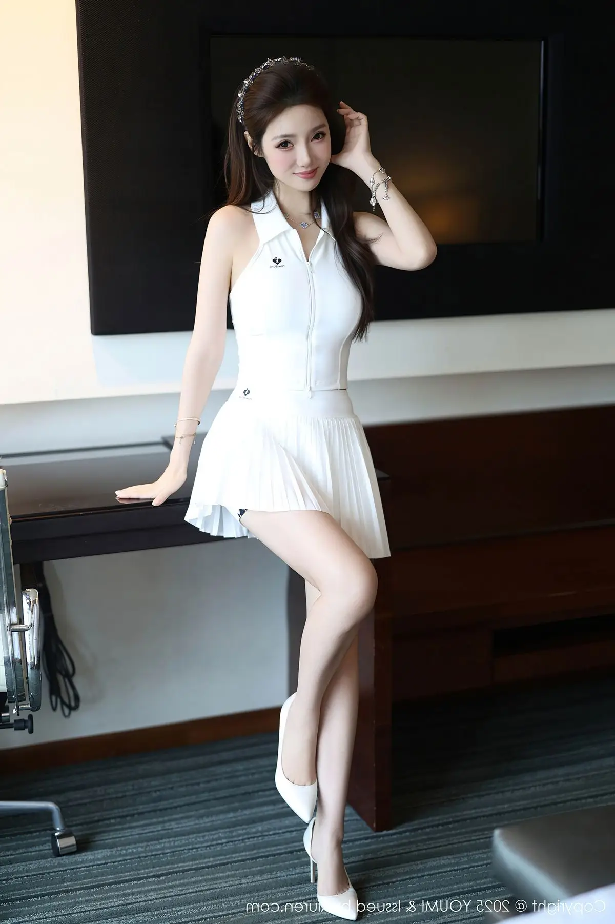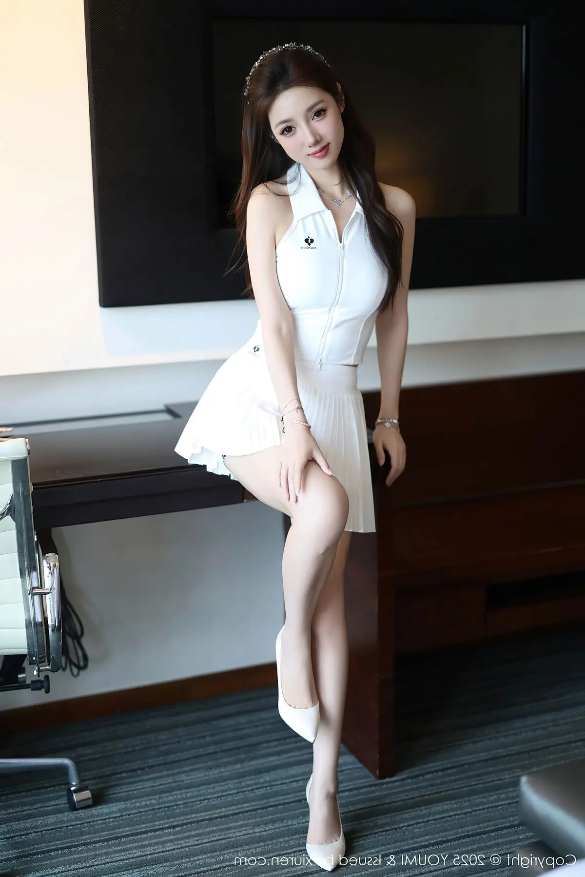 In the YouMi Vol1165 Tao Tao Yao Yao Twins collection this Chinese model shines with elegant and captivating beauty. Her pristine white outfit consisting of a sleeveless crop top and a delicate pleated skirt highlights her slender figure and confident demeanor. With flowing brown hair a gentle smile and alluring eyes she exudes irresistible charm. The luxurious modern interior setting further enhances her refined beauty and sophisticated style creating a perfect image of the blend between East Asian aesthetics and contemporary fashion. The pen and small paper in her hands hint at a professional and poised presence.#YouMi #ChineseModel #TaoTao #YaoYao £Twins #FashionModel #AsianBeauty