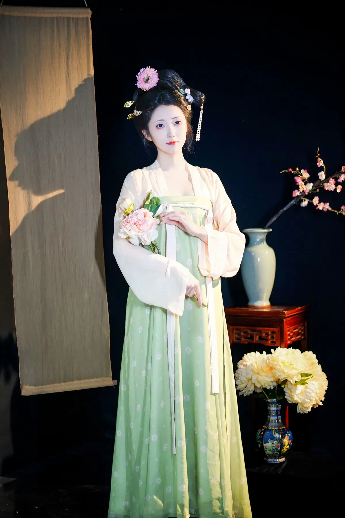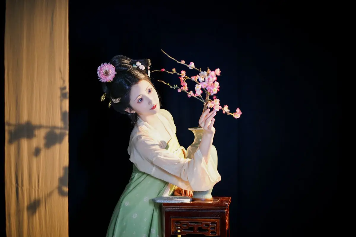 Immerse yourself in the graceful beauty of Tu Ya W from the YiTuYu Vol.8680 collection. This image captures the muse in exquisite emerald green classical attire, adorned with vibrant pink peonies. Her elegantly coiffed hair, embellished with matching blossoms, exudes a noble demeanor and traditional East Asian charm. With a gentle expression and dreamy gaze, Tu Ya W embodies a living work of "Art Language," evoking profound emotion and celebrating youthful allure alongside the timeless splendor of the Peony.#TuYaW #YiTuYu #PeonyBeauty #ClassicalFashion #AsianBeauty