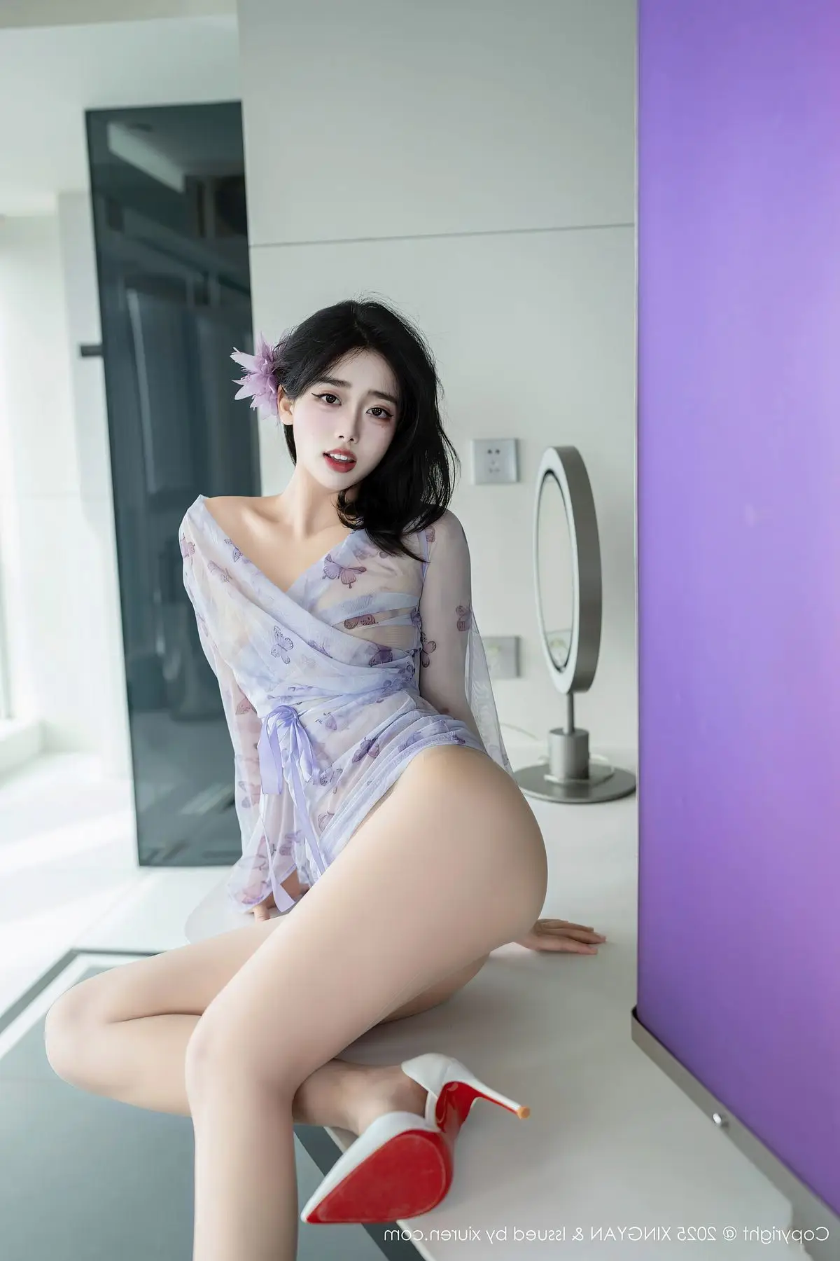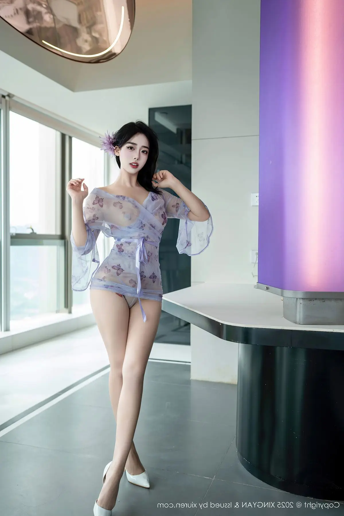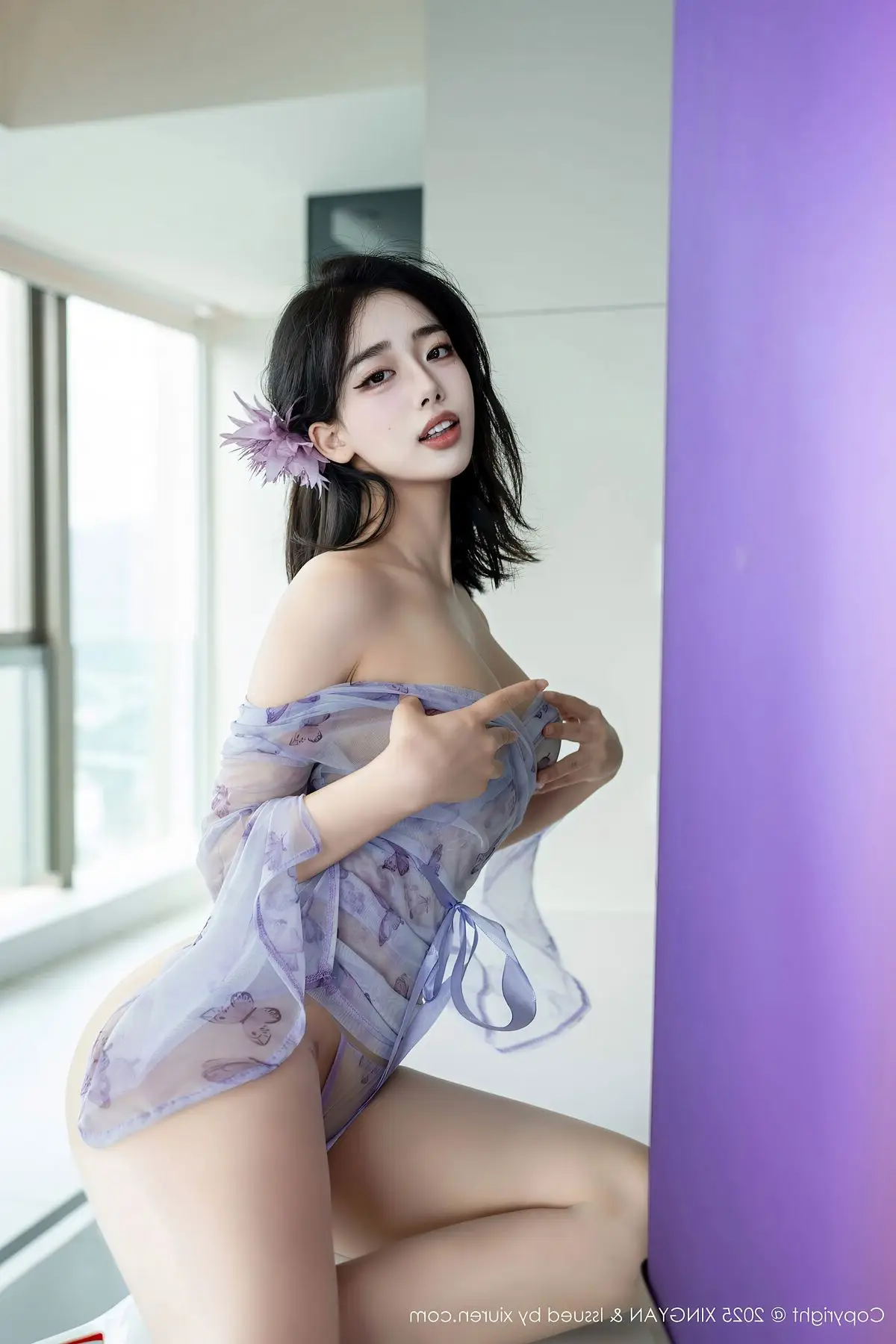 Explore model Ruan Fu Fus captivating Vol409 photo collection from XingYan Star Face where she radiates with mesmerizing beauty and exquisite fashion style Dressed in a seductive sheer purple lace outfit Ruan Fu Fu elegantly showcases her long slender legs and irresistible charm Each meticulously crafted shot highlights her graceful physique and captivating gaze This collection promises impressive artistic moments affirming Ruan Fu Fus standing in the modeling world and the creative excellence of XingYan Star Face#RuanFuFu #XingYan #AsianModel #SeductiveFashion #LongLegs