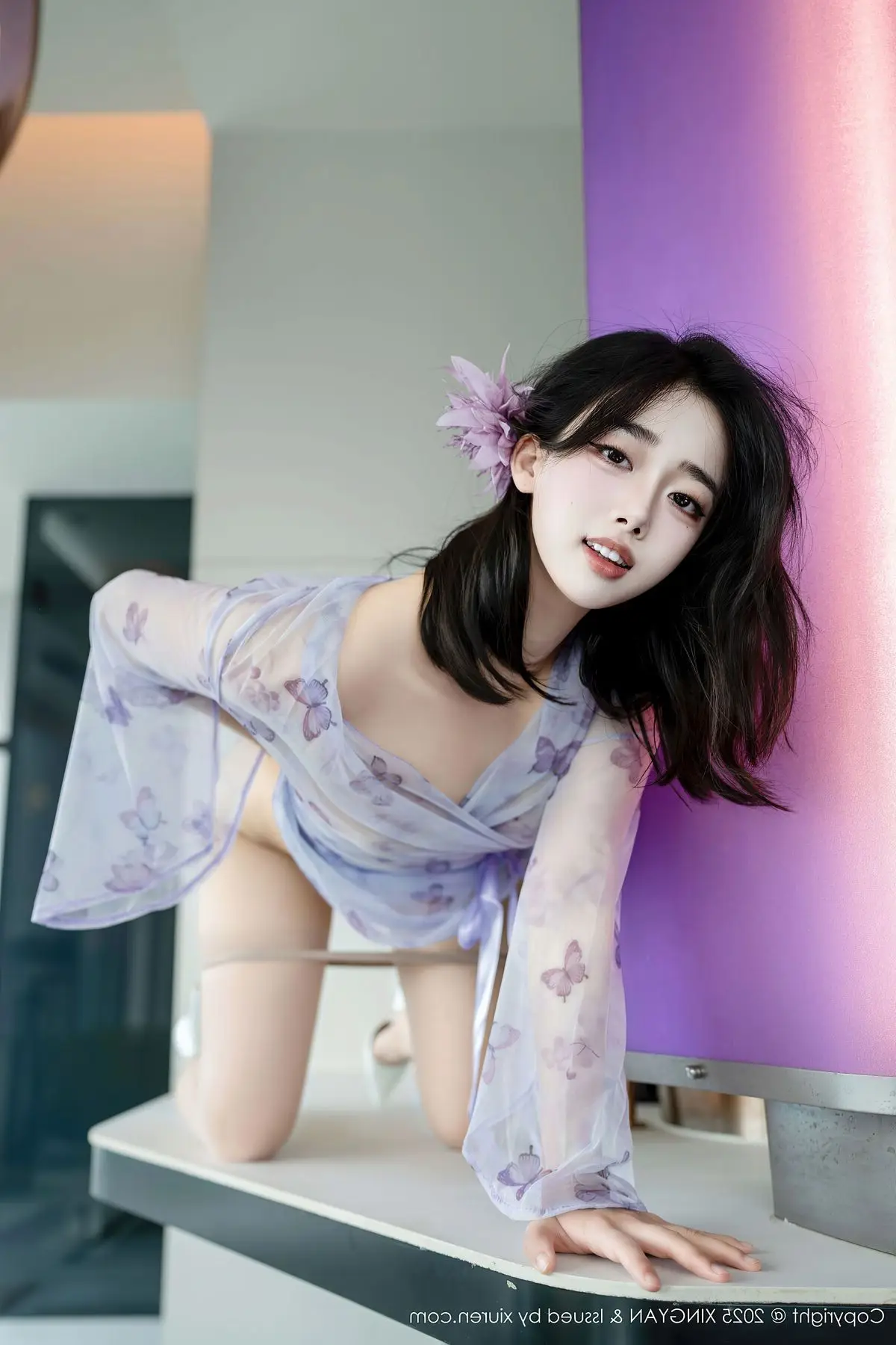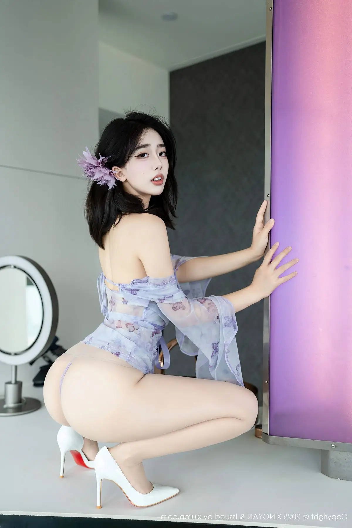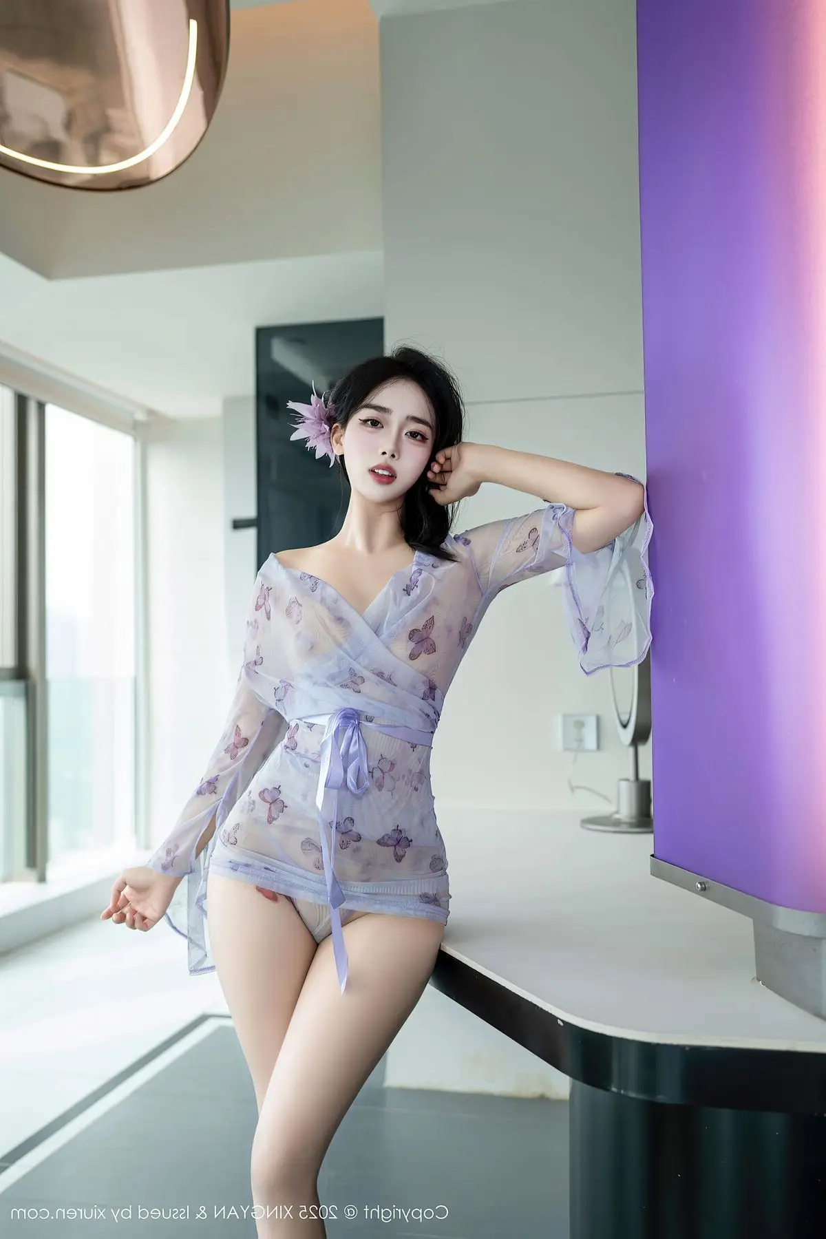 Explore model Ruan Fu Fus captivating Vol409 photo collection from XingYan Star Face where she radiates with mesmerizing beauty and exquisite fashion style Dressed in a seductive sheer purple lace outfit Ruan Fu Fu elegantly showcases her long slender legs and irresistible charm Each meticulously crafted shot highlights her graceful physique and captivating gaze This collection promises impressive artistic moments affirming Ruan Fu Fus standing in the modeling world and the creative excellence of XingYan Star Face#RuanFuFu #XingYan #AsianModel #SeductiveFashion #LongLegs