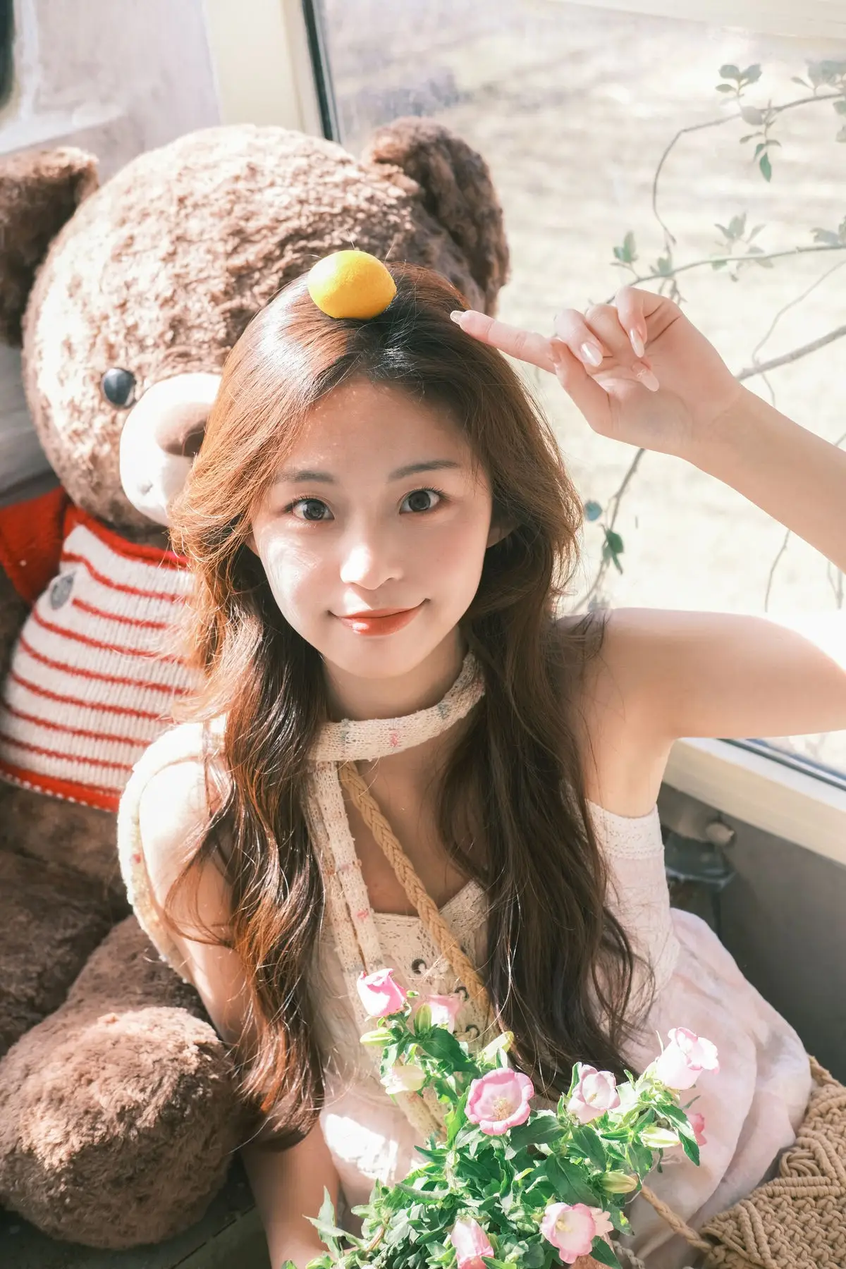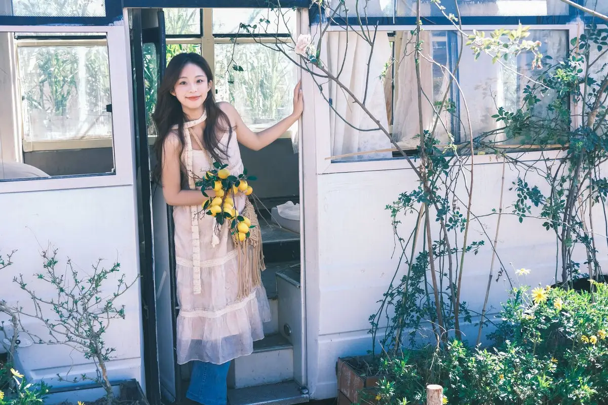 In this enchanting YiTuYu艺图语 Vol.8678 collection, model Chickkii captivates with her natural beauty and radiant smile. She sits gracefully by a window, bathed in warm sunlight, creating a scene of peaceful serenity and poetic charm. A woven basket overflowing with vibrant yellow lemons and delicate pink flowers adds a fresh, earthy touch, connecting her to nature's simple elegance. Through this seemingly ordinary moment, Chickkii effortlessly conveys a sense of positive energy, tranquility, and pure joy for life. Her understated yet elegant outfit, featuring a lace top and jeans, further accentuates her authentic appeal, transforming each photograph into an emotionally rich piece of art.#YiTuYu #Chickkii #Muse #Sunlight #NatureInspired