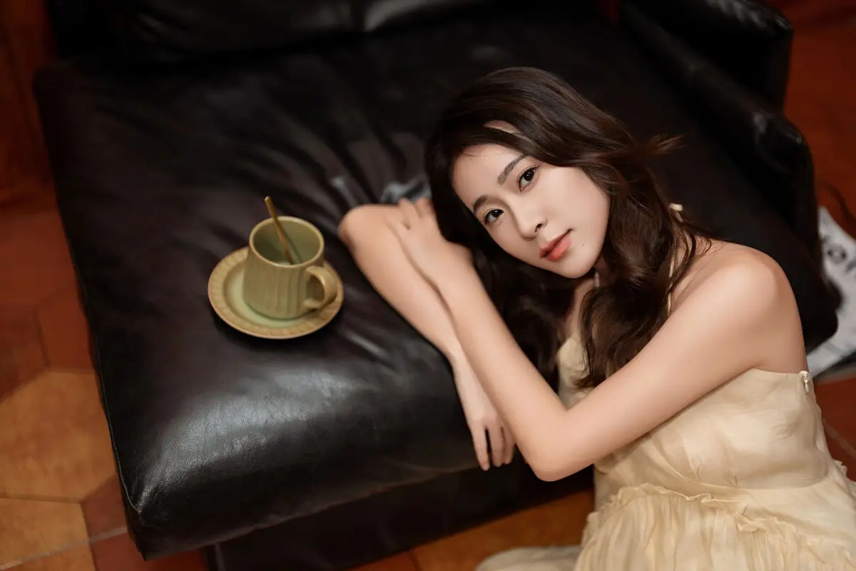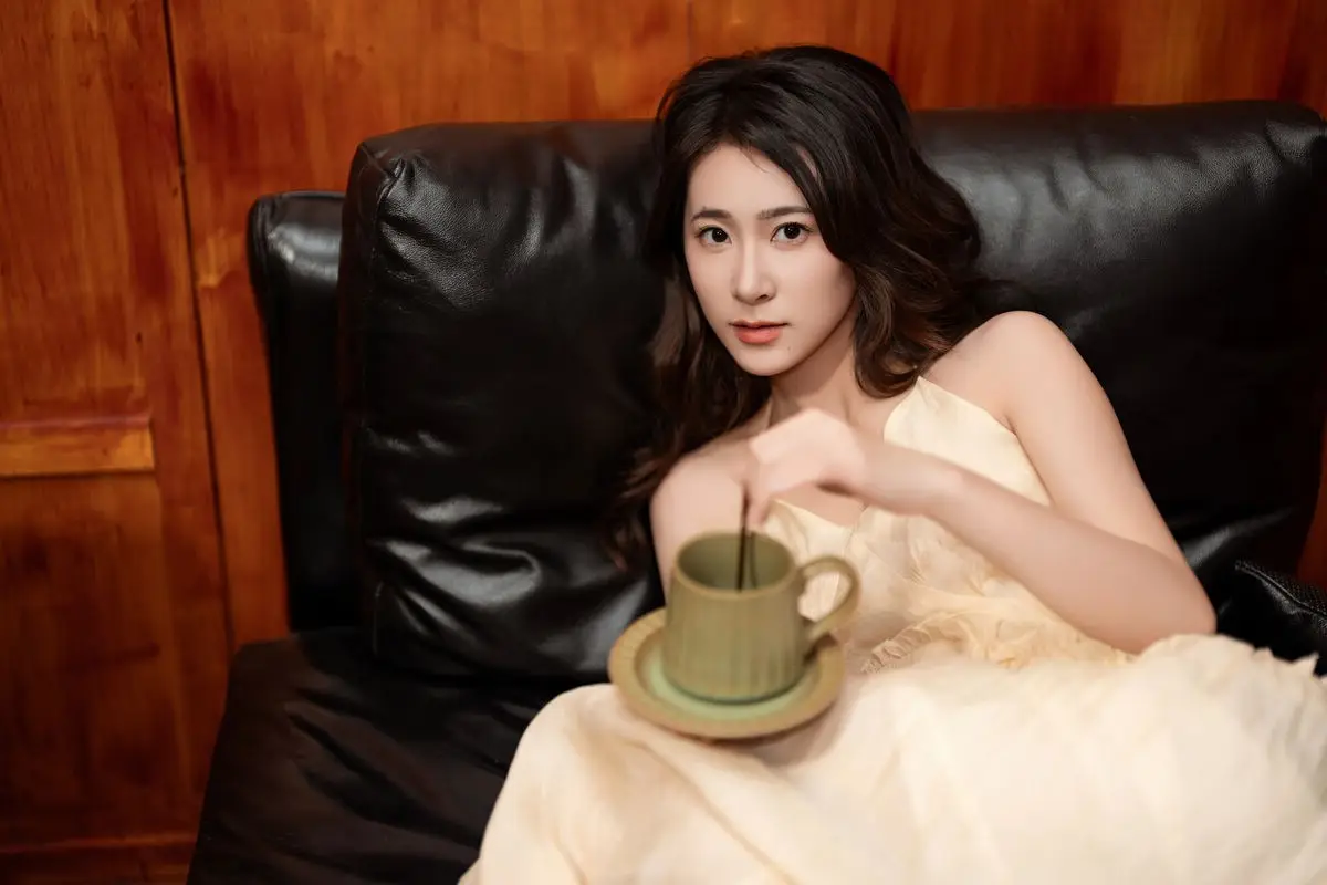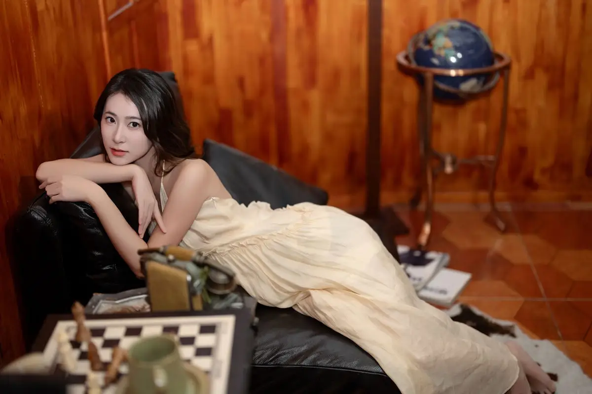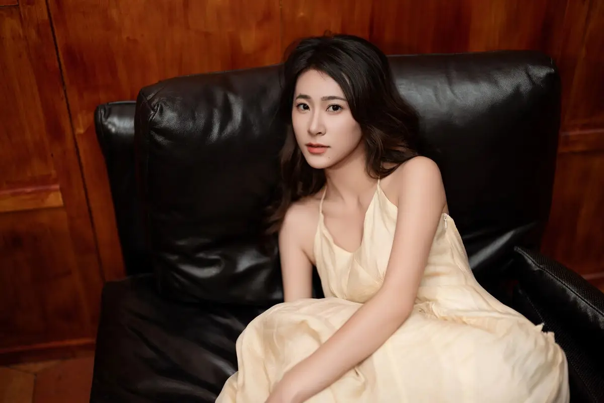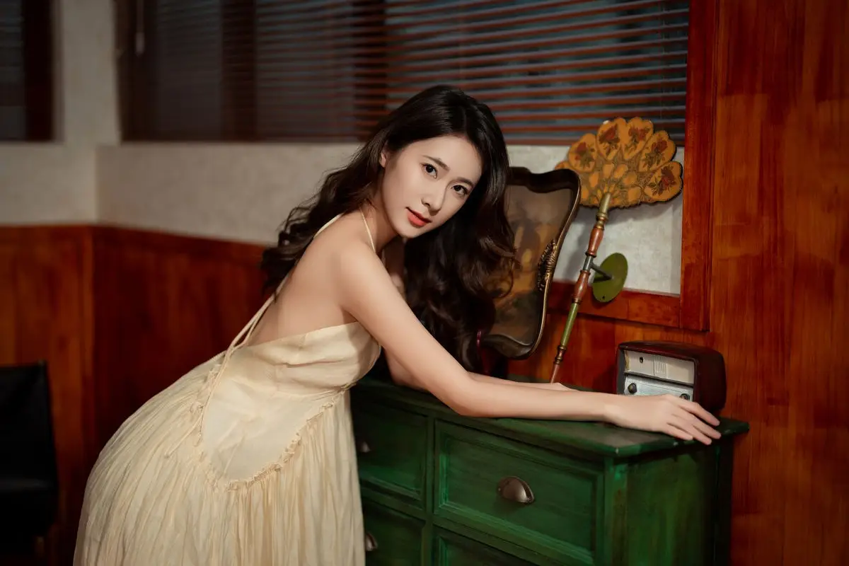 This captivating image from the YiTuYu Vol.8676 collection showcases model Fu Po in a moment of artistic grace and allure. She exudes an elegant beauty, draped in a soft, light yellow strapless dress that subtly highlights her shoulders. Fu Po's profound gaze directly engages the viewer, creating a powerful yet enigmatic connection. Her posture, leaning gently against a classic wooden chair, adds a touch of vintage charm and sophistication to the composition. The interplay of soft lighting, warm tones, and her delicate expression culminates in an emotionally rich photograph, inviting admirers to delve into Fu Po's pure beauty and undeniable charisma. This piece truly stands out within the Art Language series.#FuPo #YiTuYu #ArtisticPortrait #ElegantBeauty #AsianModel
