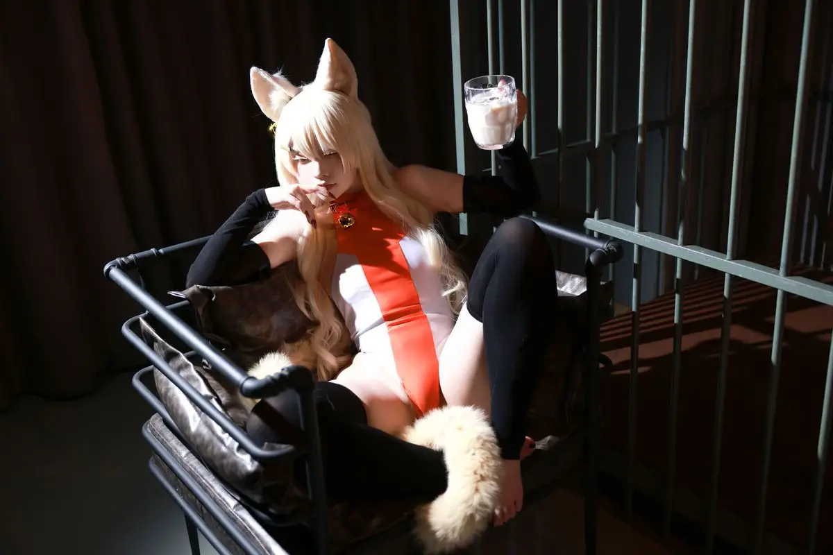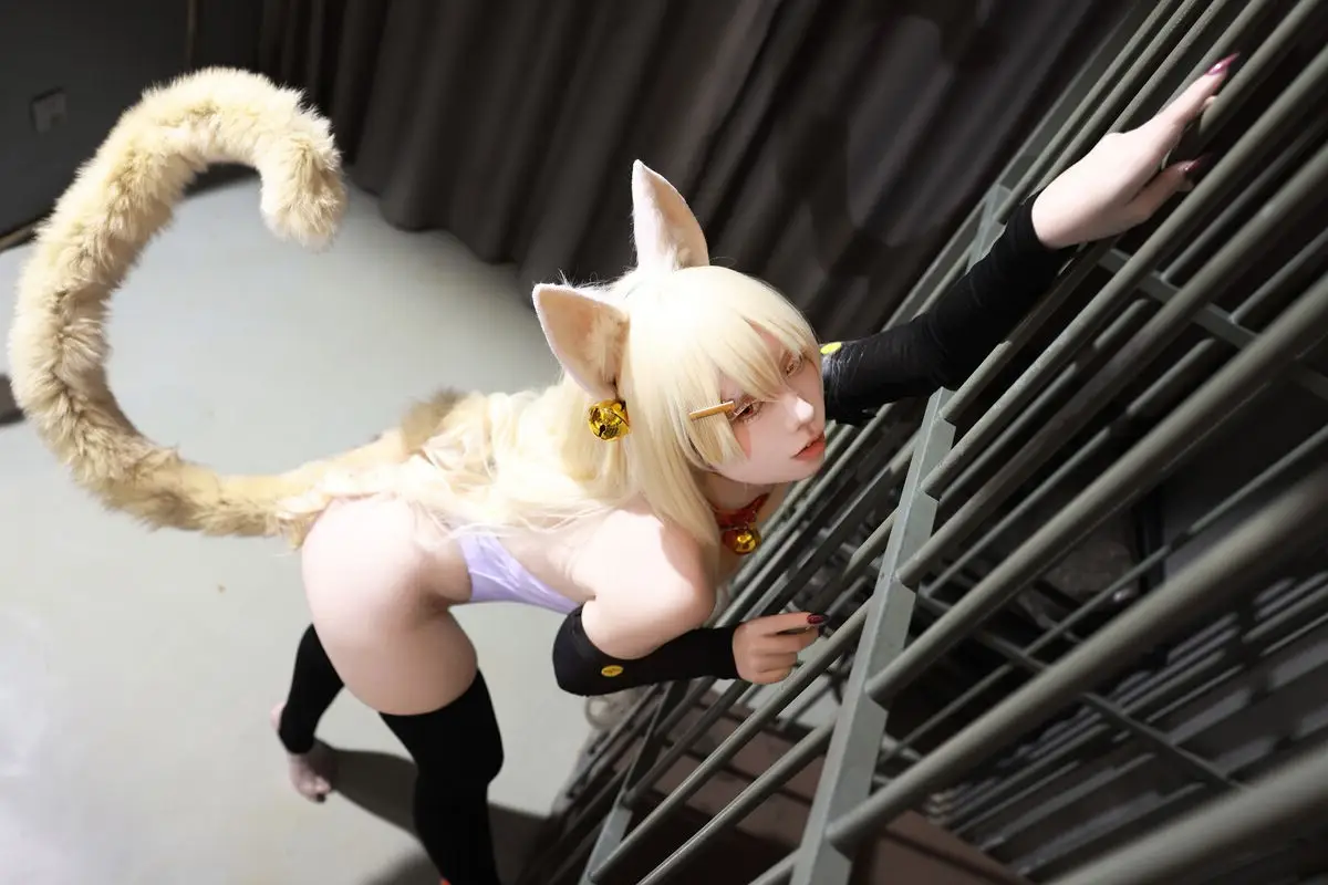 In this captivating image Coser G44 embodies Esper Girl Alice exuding an enchanting and mysterious aura. With her lustrous blonde hair and distinctive animal ears she projects a beauty that is both sweet and powerful. Alice's sharp gaze and alluring expression seem to tell a story of hidden strength and irresistible charm. The meticulously crafted costume with its intricate details highlights the character's unique style. This is truly an impressive cosplay successfully capturing the spirit of Esper Girl Alice leaving viewers curious and eager to explore more of her world.#Coser #G44 #EsperGirlAlice #CosplayPhotography #AnimeCosplay #FantasyCharacter