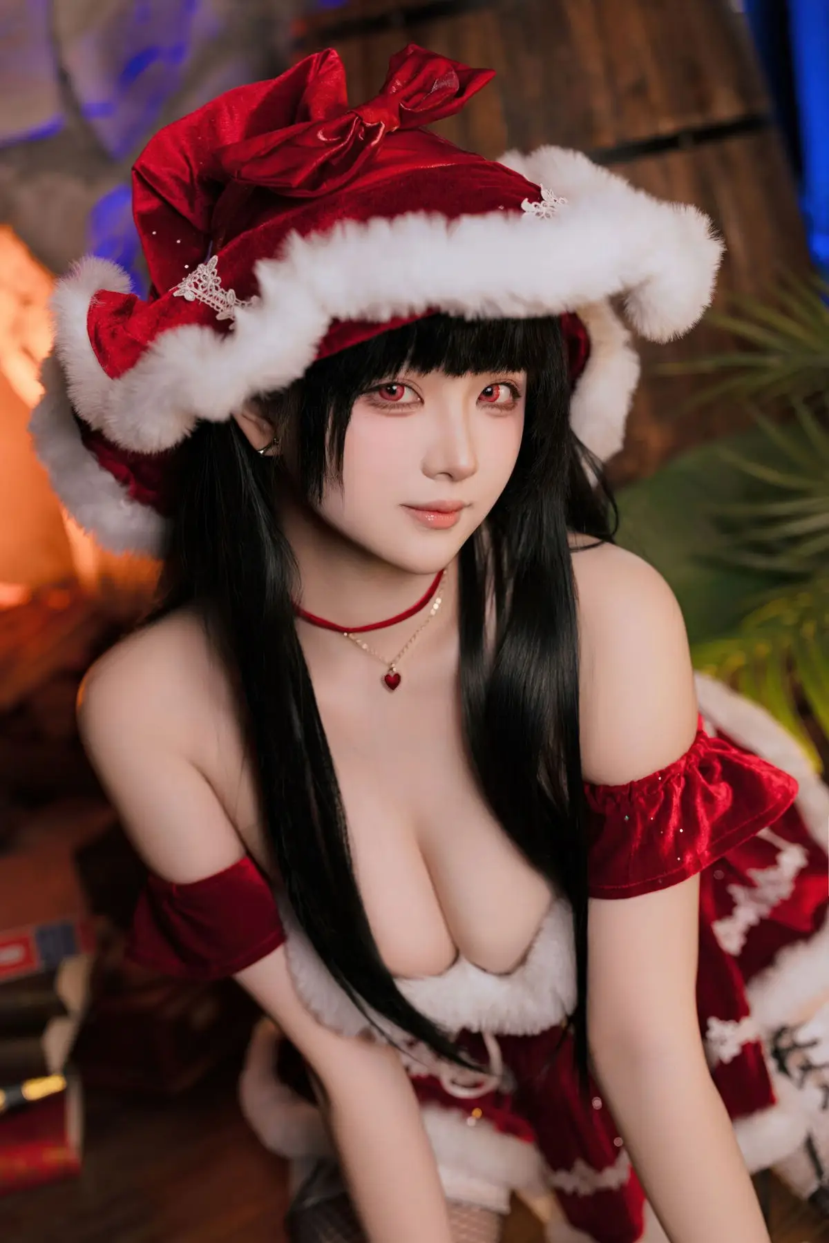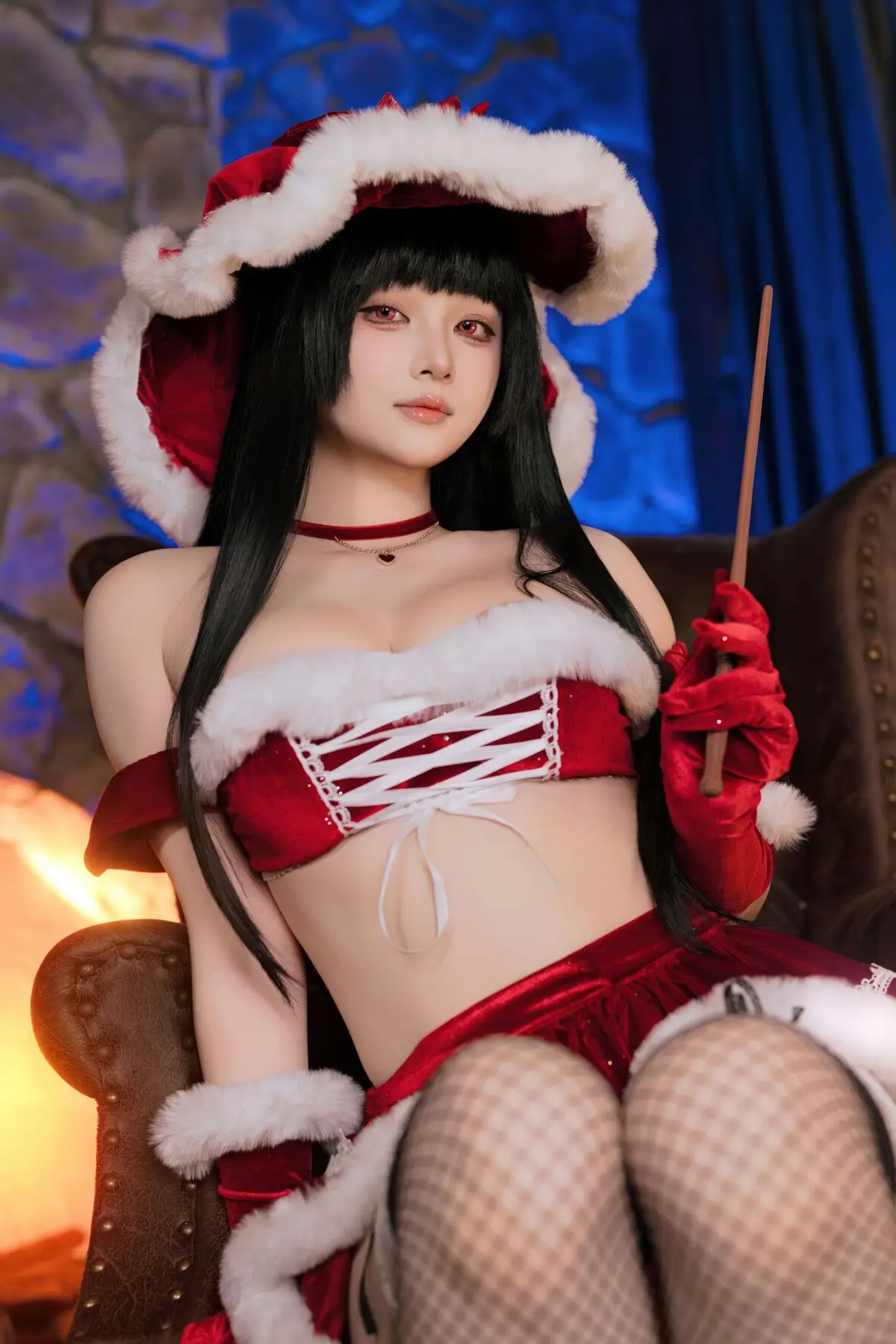 Coser Yu Yu brings an enchanting Christmas Eve Magic to life in this special photo collection. Transformed into a captivating holiday sorceress she poses gracefully by a warm rustic fireplace. Her stylish red and white costume adorned with a fluffy hat and a delicate magic wand creates a look that is both alluring and mysterious. The soft ambient lighting of the cozy stone room perfectly highlights Yu Yu's beauty and the festive atmosphere. Each moment is filled with warmth and romance promising an unforgettable visual experience of a magical Christmas night. Dive into this spellbinding collection.#Coser #YuYu #ChristmasEveMagic #HolidayCosplay #EnchantingChristmas #FantasySanta