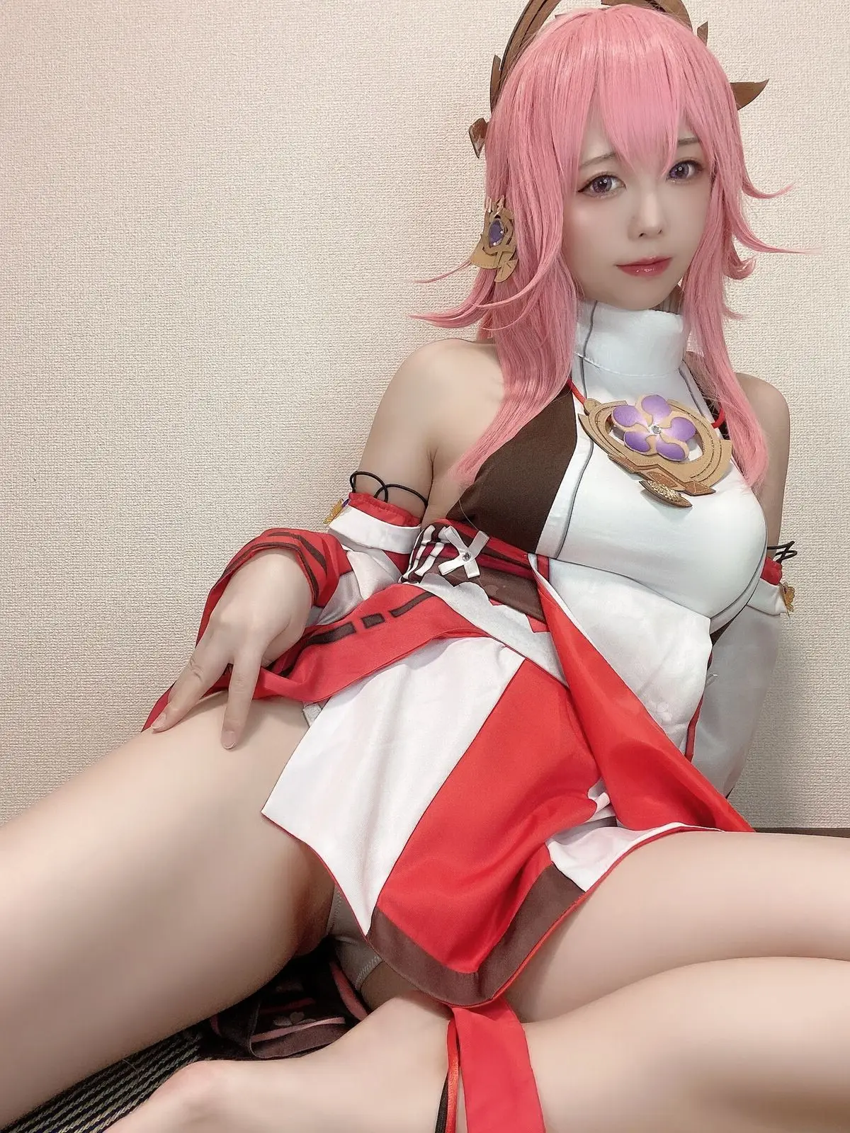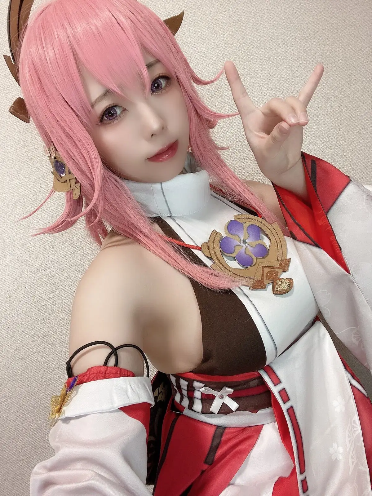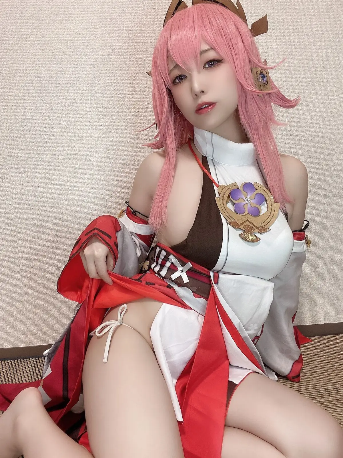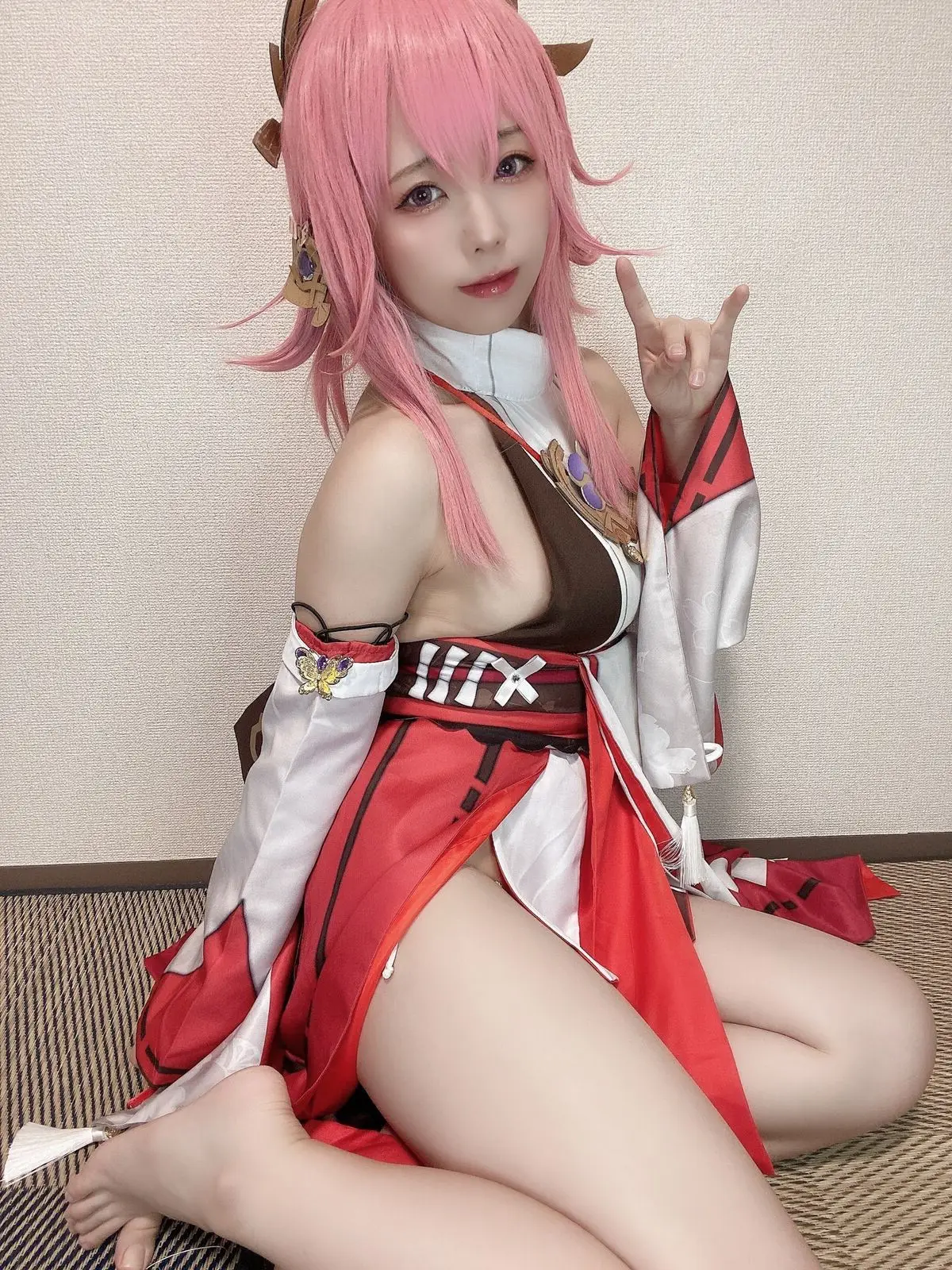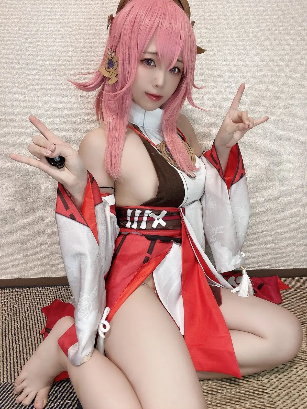 Coser Rizuna's Yae Miko Cosplay (91P) - Captivating Beauty from Genshin Impact