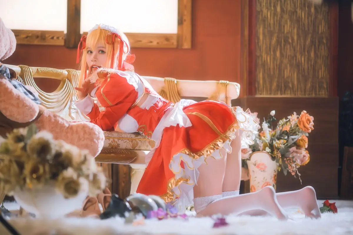Dive into the captivating photo collection featuring Coser Xing Dai Lu Lu embodying the enchanting Nero Maid. With her radiant blonde hair and an intricately designed red and white maid uniform, Xing Dai Lu Lu masterfully brings Nero Claudius to life with charm and elegance. Every detail, from the delicate red ribbons to the meticulously crafted costume lines, radiates the majestic and alluring beauty of the emperor. The cosplayer's playful gaze and graceful smile are sure to captivate every admirer. Don't miss this stunning collection of 35 pictures showcasing the brilliant portrayal of Nero Maid.#Coser #NeroMaid #XingDaiLuLu #FateGrandOrder #Cosplay