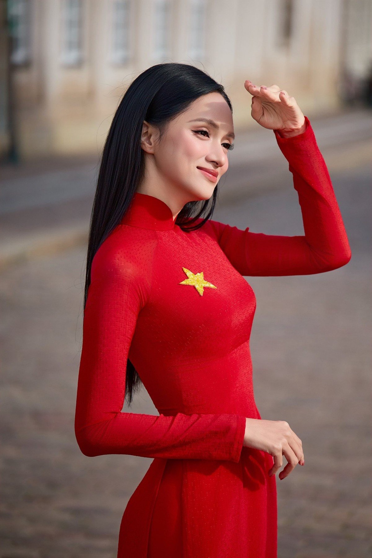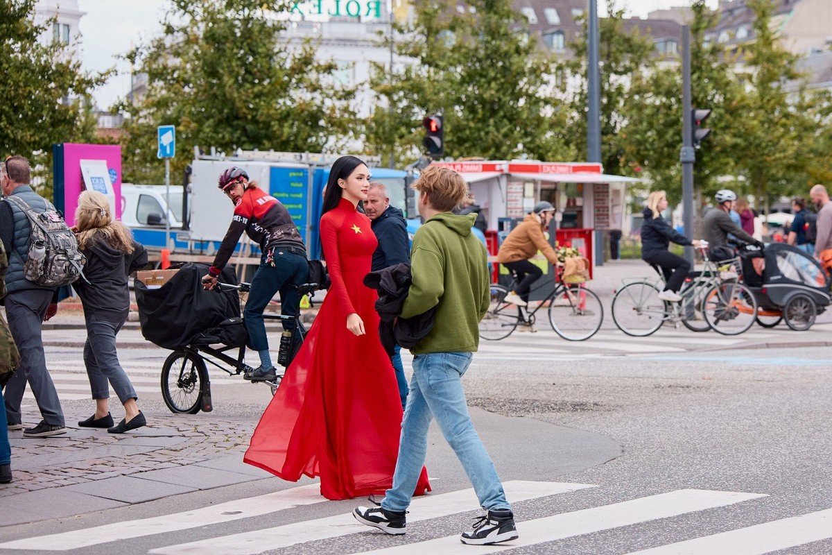 Miss Huong Giang captivates with her elegant traditional red Ao Dai, proudly worn amidst a European cityscape. The striking red garment, adorned with a prominent yellow star, beautifully accentuates her graceful figure while symbolizing national pride and rich cultural heritage. Her radiant smile and confident demeanor embody the exquisite charm and beauty of Vietnamese women. This moment transcends a mere fashion photoshoot; it is a powerful statement of identity, showcasing her readiness for the prestigious Miss Universe international beauty pageant. Huong Giang truly elevates Vietnamese beauty to a global stage, inspiring admiration and celebrating national spiritHoa Minzy goes viral flaunting her stunning body in a chic short dress