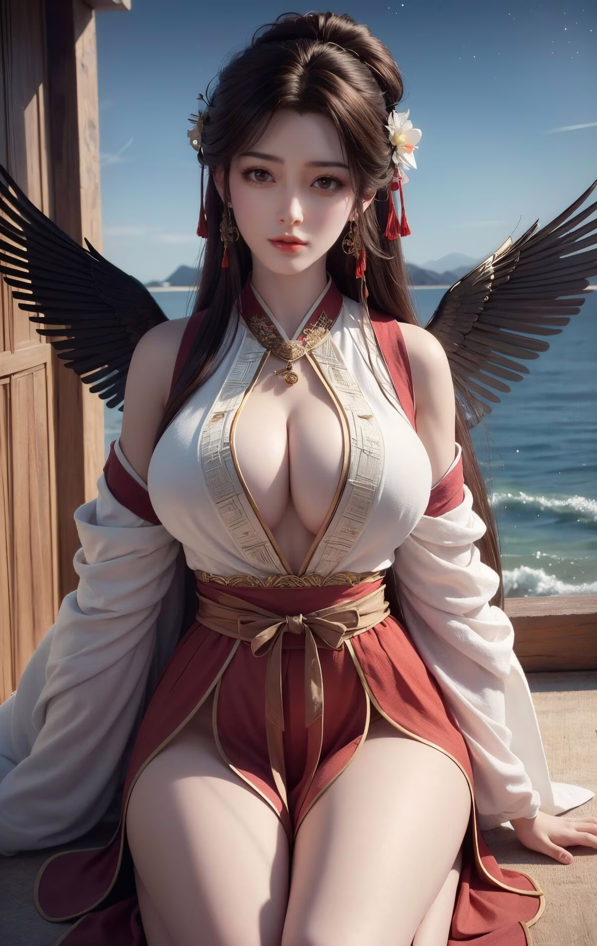 Experience the captivating charm of 火桑女1 an AI Generated beauty from the ethereal realm of 完美世界. This stunning artwork portrays the character in an exquisite traditional ensemble gracefully accentuating her elegant figure. Her deep gaze and gentle smile invite viewers into a world of fantasy and allure. The serene backdrop of misty mountains under a soft moonlight evokes the artistry of traditional ink wash paintings creating an atmosphere of poetic mystery. This impressive AI Generated piece seamlessly blends advanced technology with classical Eastern aesthetics offering a unique and emotionally resonant visual journey for all admirers of fantasy art.