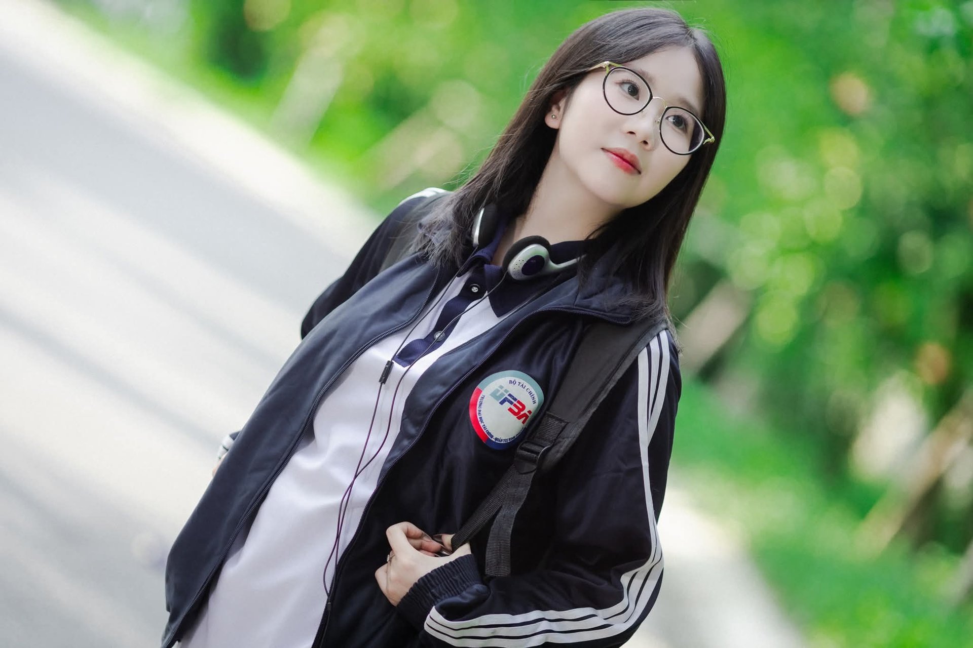 This image beautifully captures a pure and delightful moment of a young woman dressed in a simple yet charming school uniform The girl with her smooth dark hair and elegant glasses emanates a bright and genuine smile as she playfully blows sparkling soap bubbles letting them gracefully float and dance in the air In the background the lush green scenery of towering trees forms a serene and picturesque atmosphere enhancing the sense of tranquility and natural beauty This heartwarming picture vividly evokes the innocent charm and carefree spirit of student life portraying a truly vibrant and beautiful moment of youth The ethereal soap bubbles symbolize simple dreams and unadulterated joys soaring freely embodying the essence of youthful freedom and happinessMuse in the Green: Captivating Artistic Portrait of Natural Beauty 1000019760