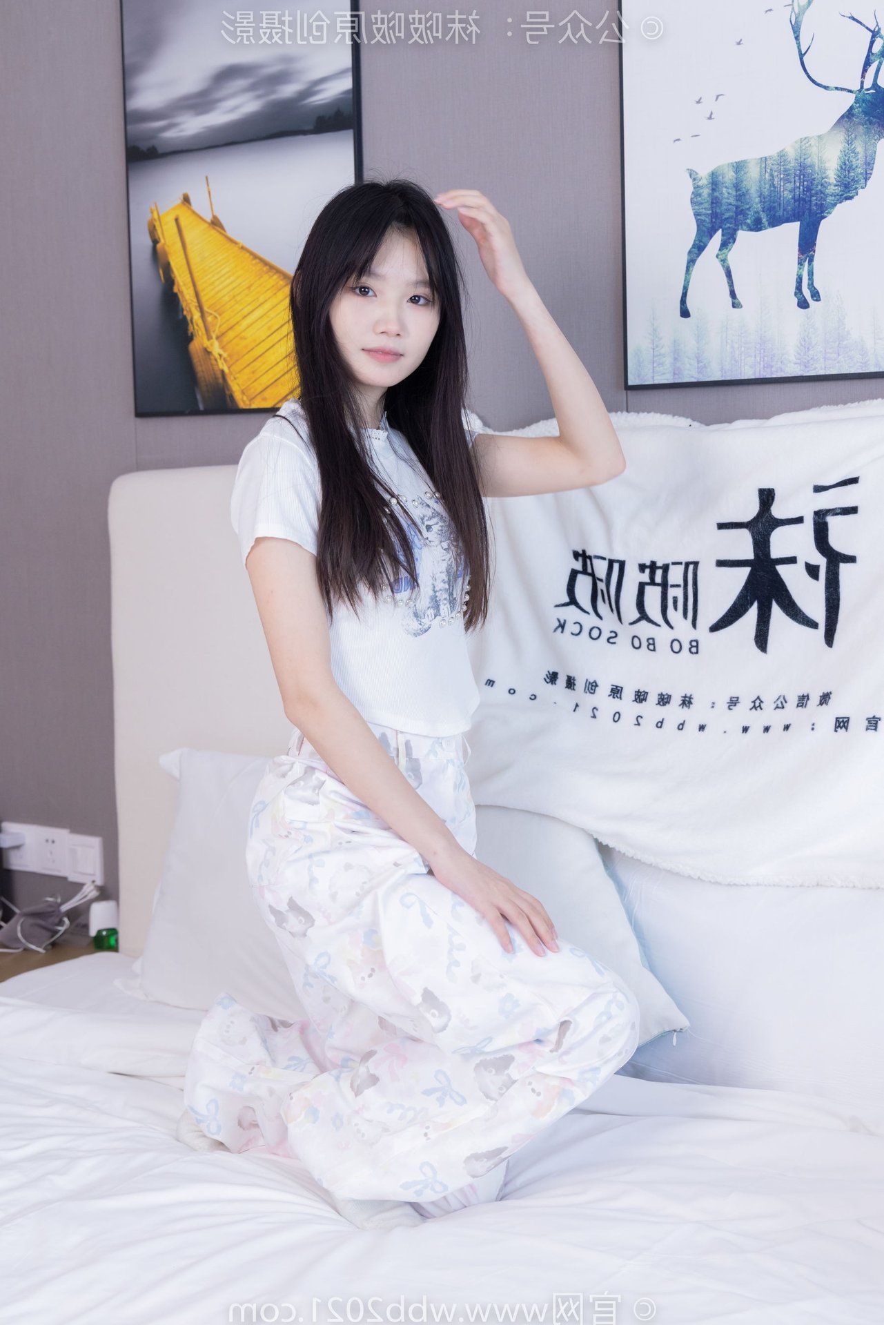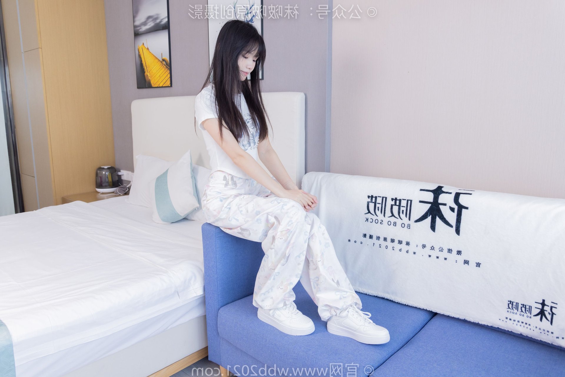 In this captivating image, the charming Chinese model for BoBoSocks, identified as No.550, radiates a naturally elegant beauty. She is gracefully seated on a comfortable blue sofa, dressed in a pristine white outfit featuring a t-shirt and wide-leg pants, perfectly complemented by stylish white sneakers. Although not clearly visible, the white cotton socks worn with the sneakers likely add a subtle yet essential touch of comfort and fashion. Her gentle smile and warm gaze create an inviting and friendly atmosphere. The modern room setting, with its simple decorative paintings, further highlights her pure aesthetic and the relaxed comfort that BoBoSocks products aim to convey. This portrayal encapsulates a dynamic and contemporary lifestyle, emphasizing both style and ease.Stories